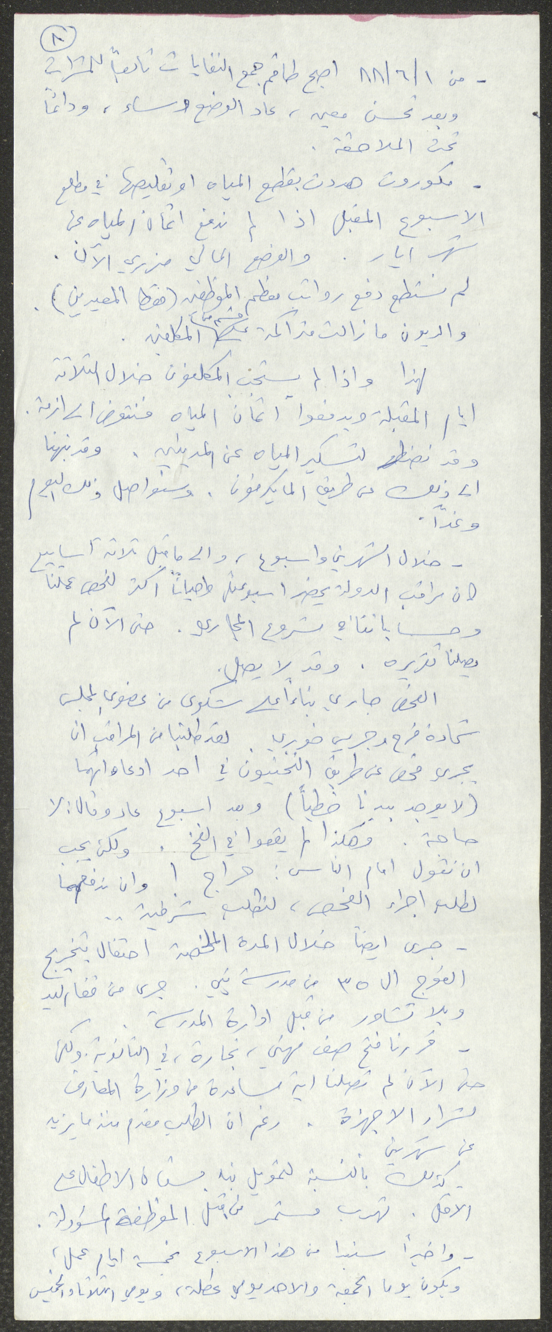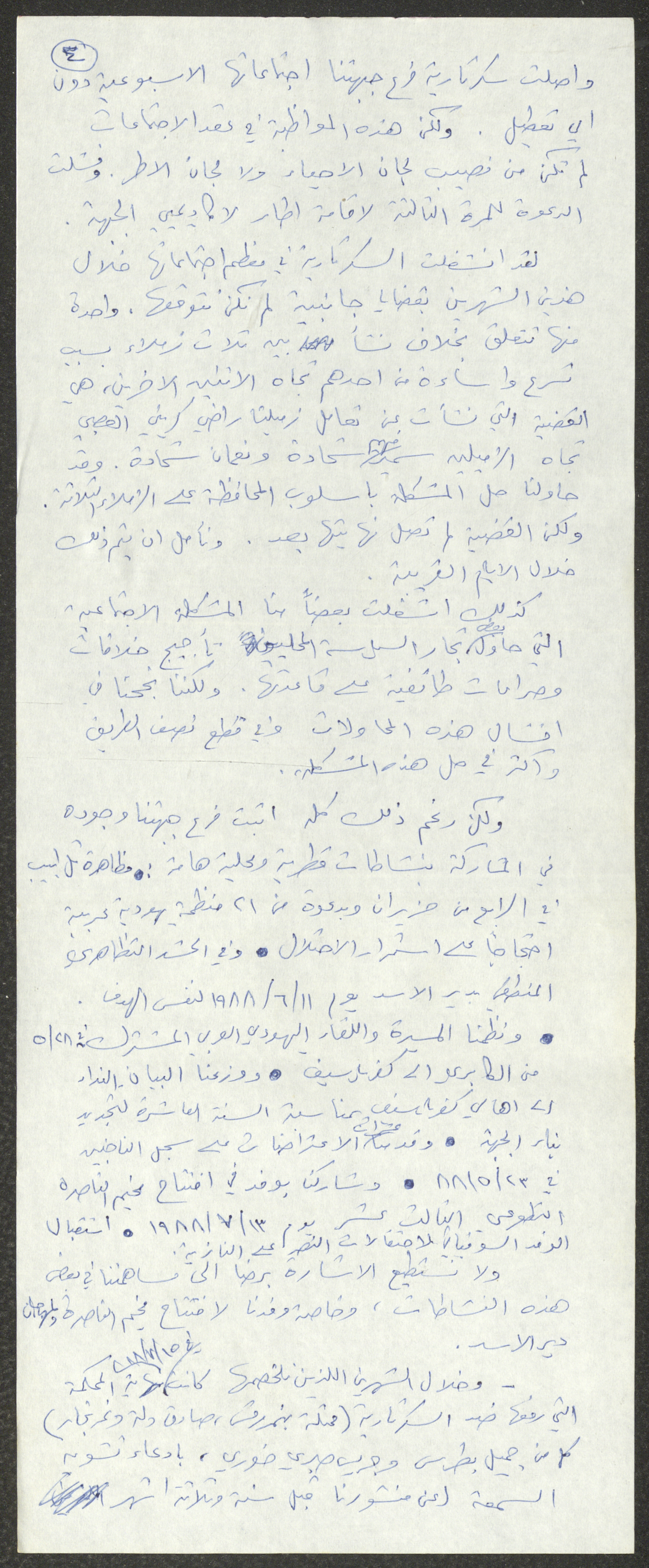 Found in the Nimr Murqus Collection, this document shows a statement submitted to the Popular Front in Kafr Yasif on 20 July 1988.