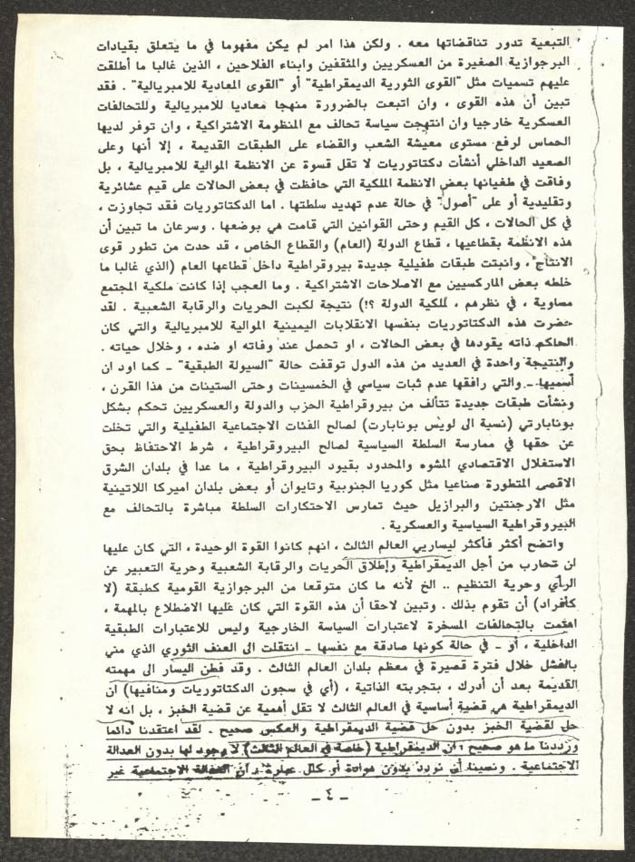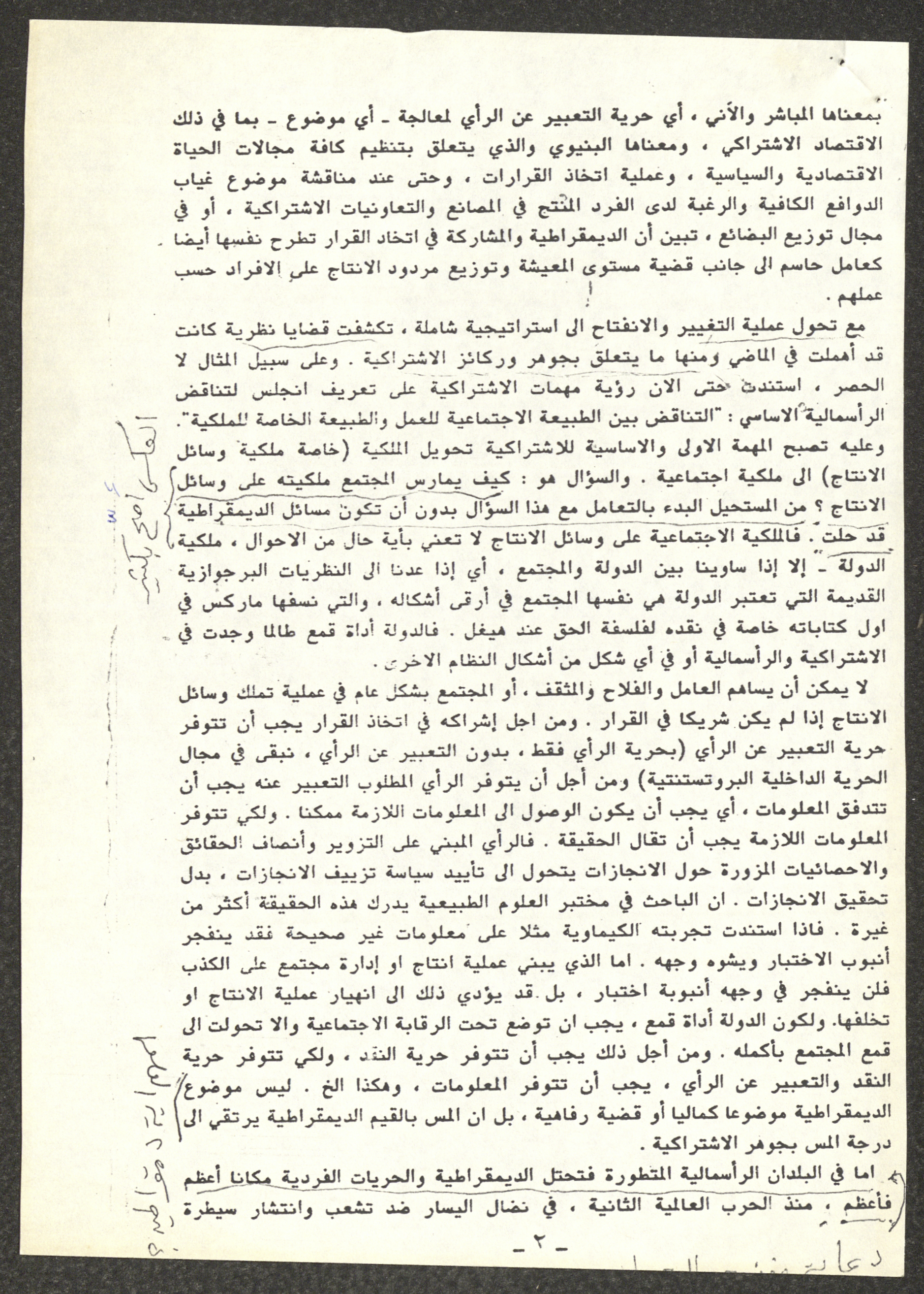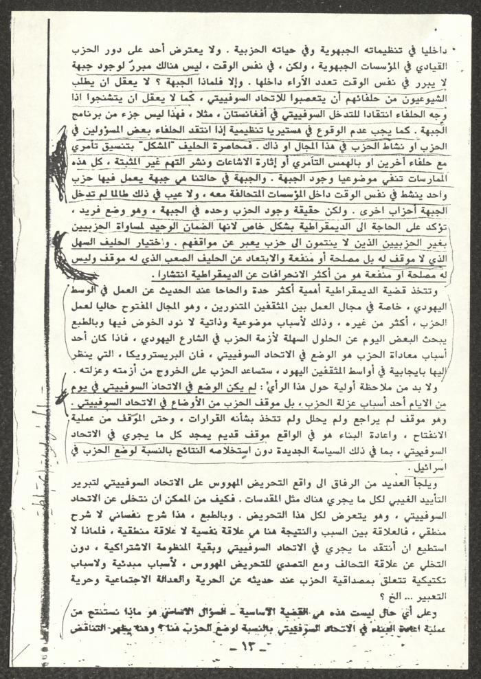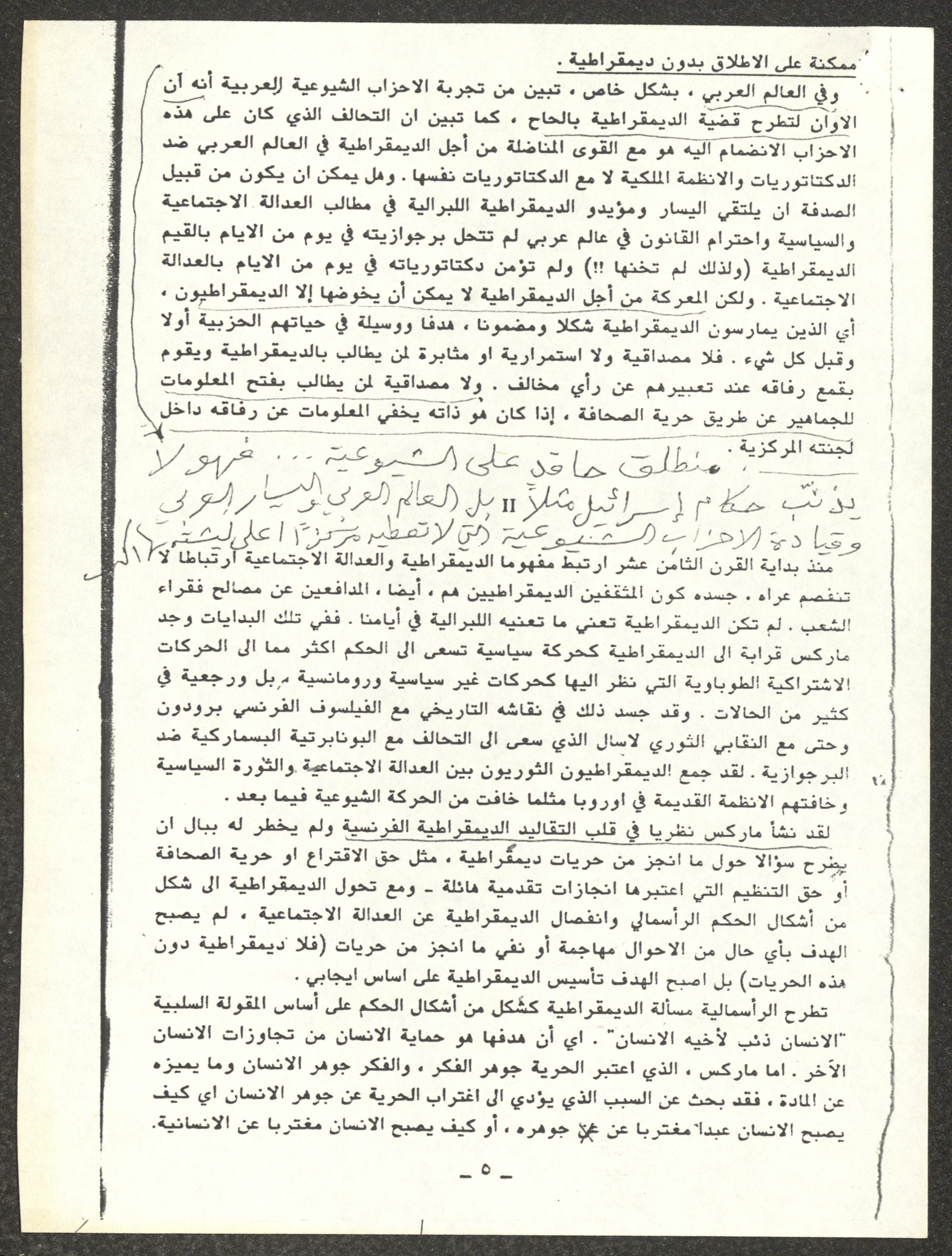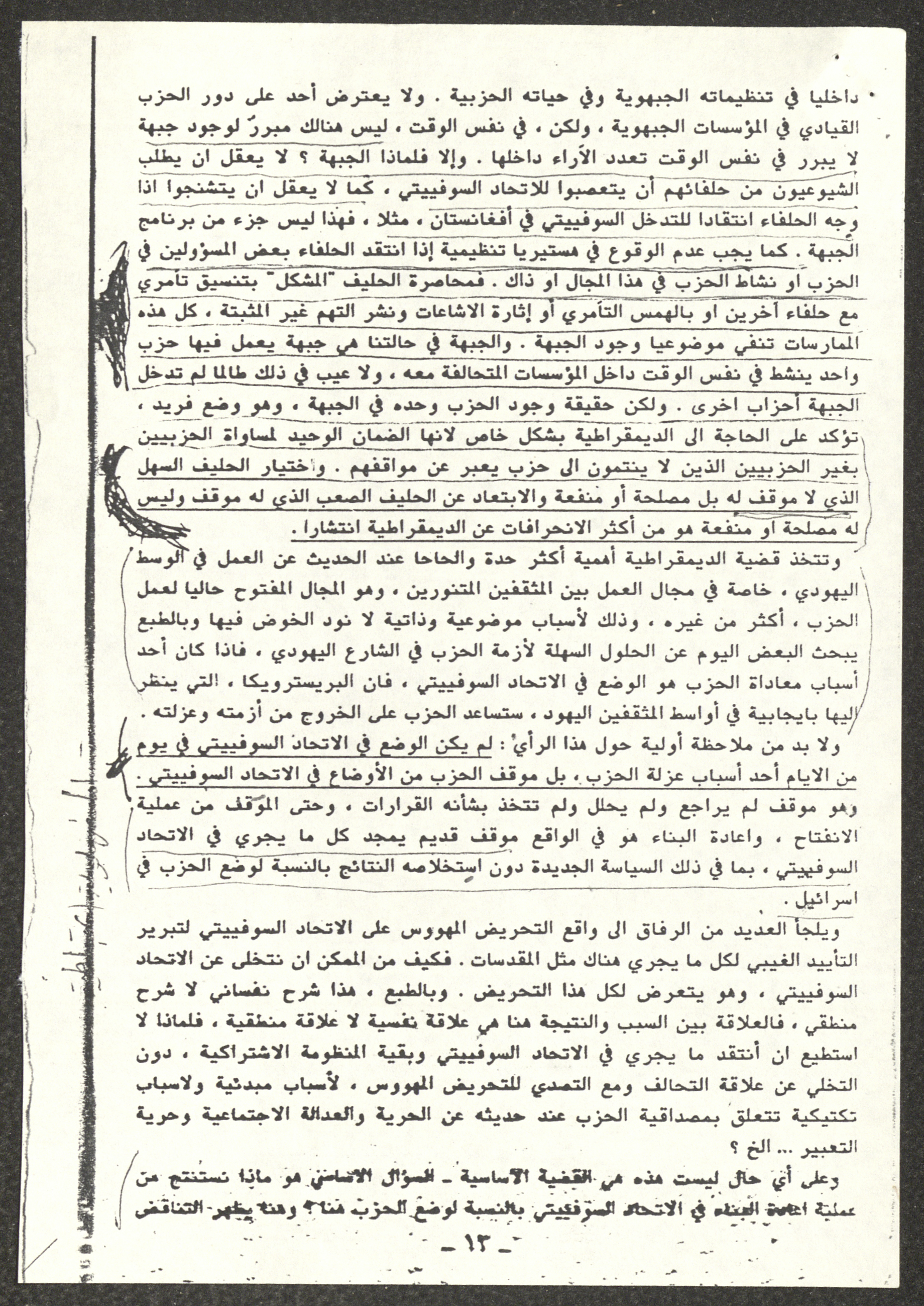 Found in the Nimr Murqus Collection, this document shows an introduction to Azmi Bishara's self-criticism titled "A Viewpoint on Democracy", published in Jerusalem in June 1989.