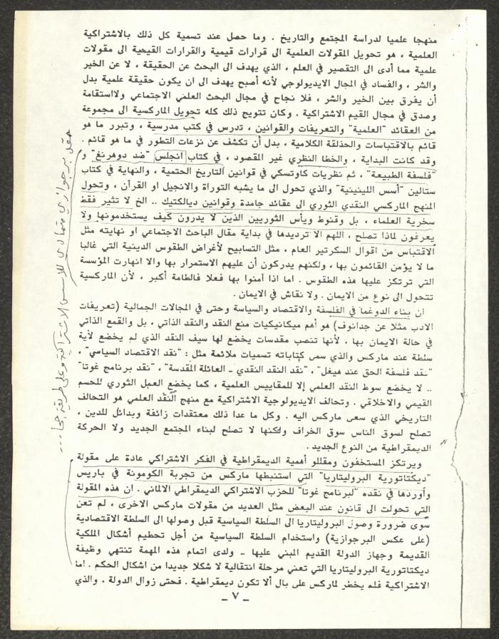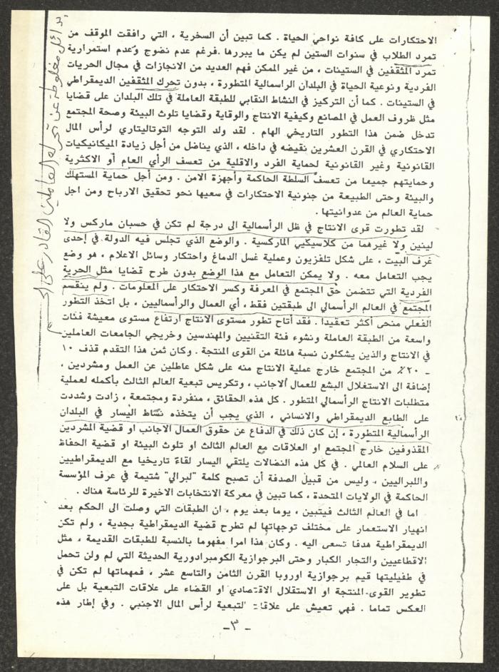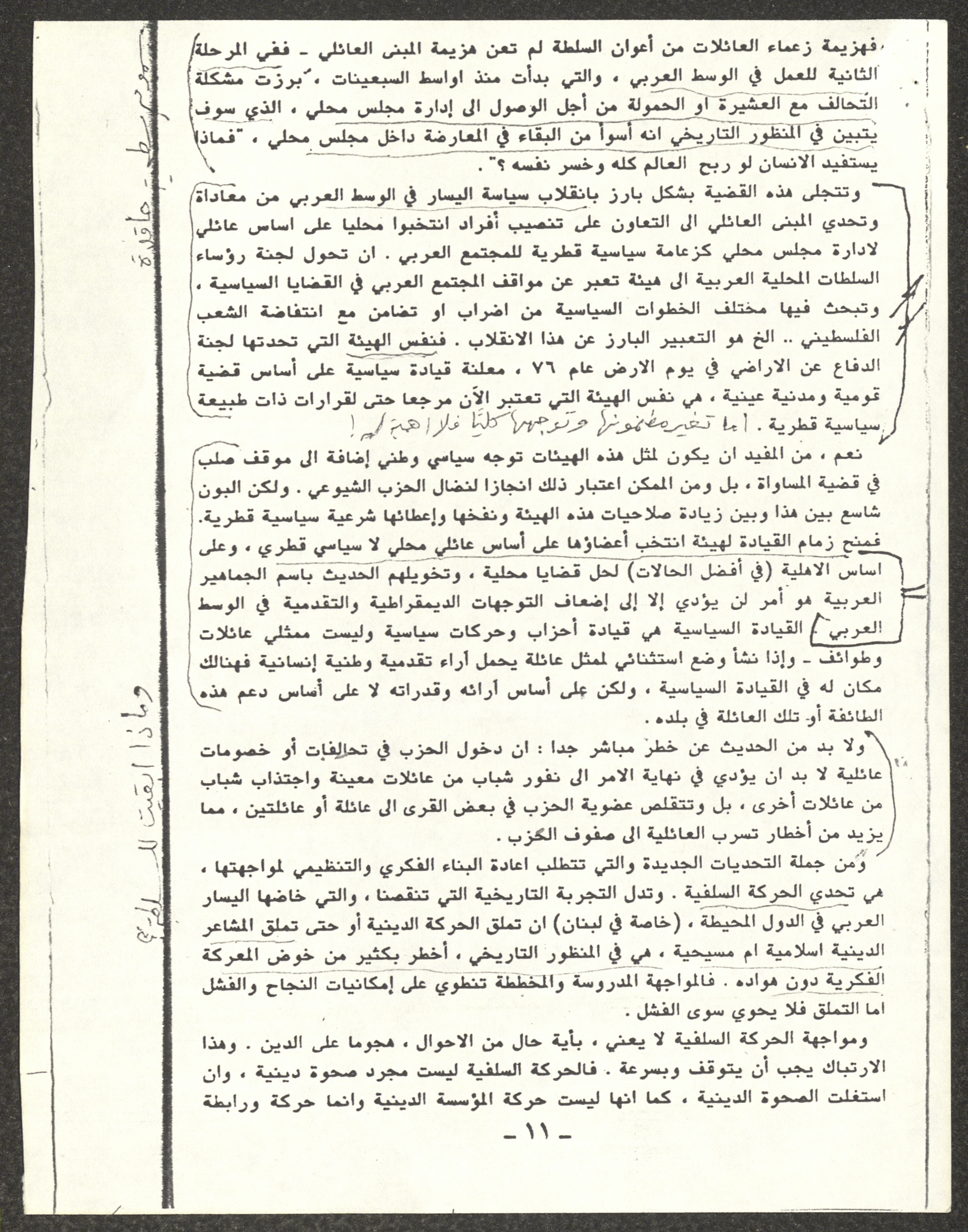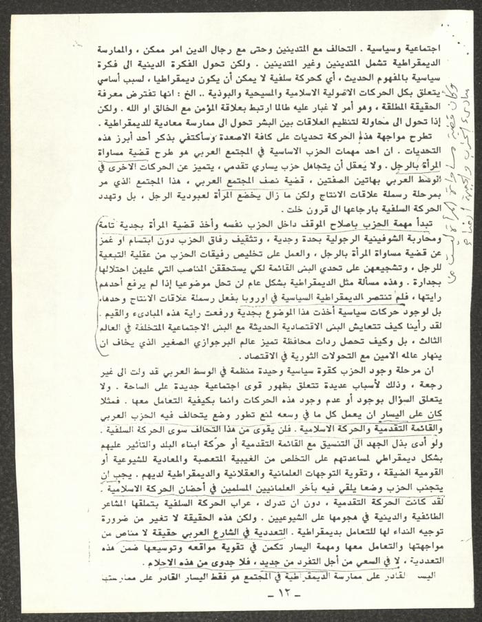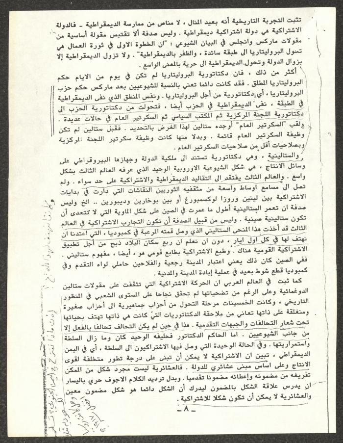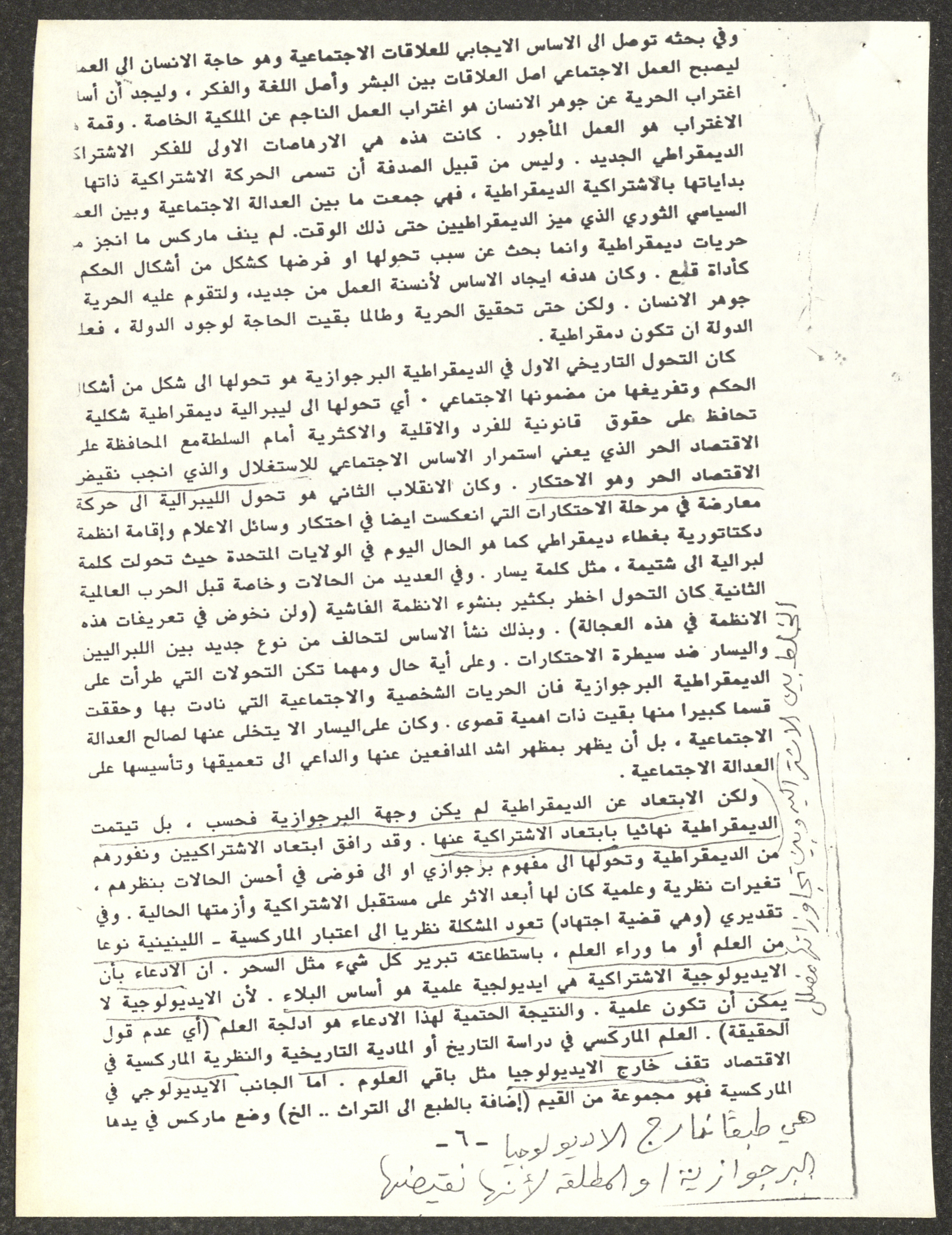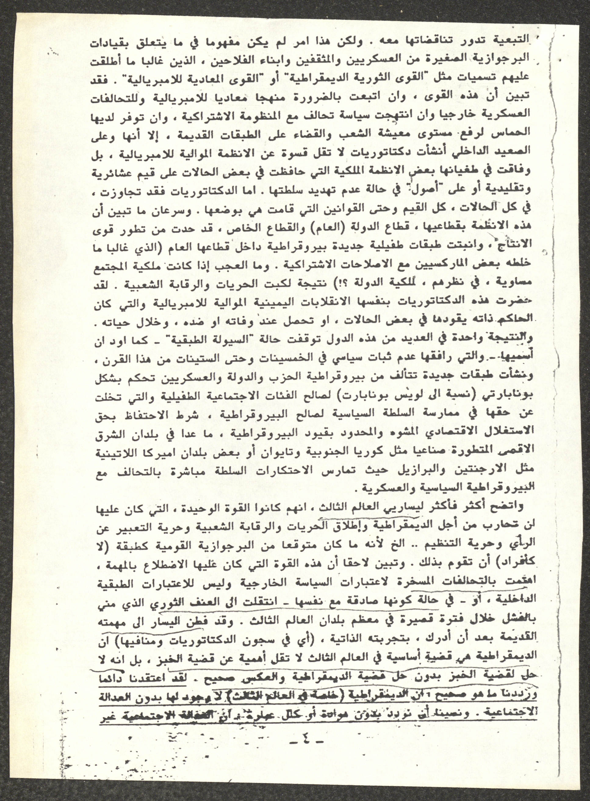 Found in the Nimr Murqus Collection, this document shows an introduction to Azmi Bishara's self-criticism titled "A Viewpoint on Democracy", published in Jerusalem in June 1989.