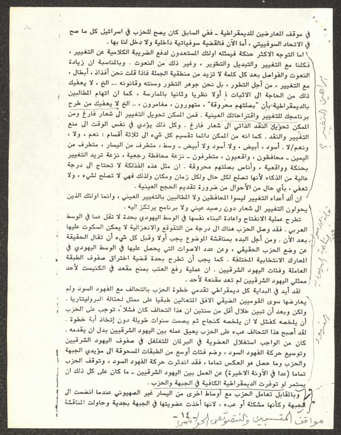 "A Viewpoint on Democracy", an Introduction to Azmi Bishara's Self-Criticism, June 1989