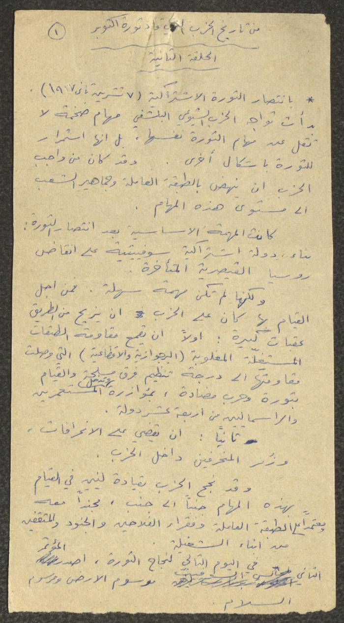 "From the History of the Party That Led the October Revolution", Nimr Murqus' Panel Discussions