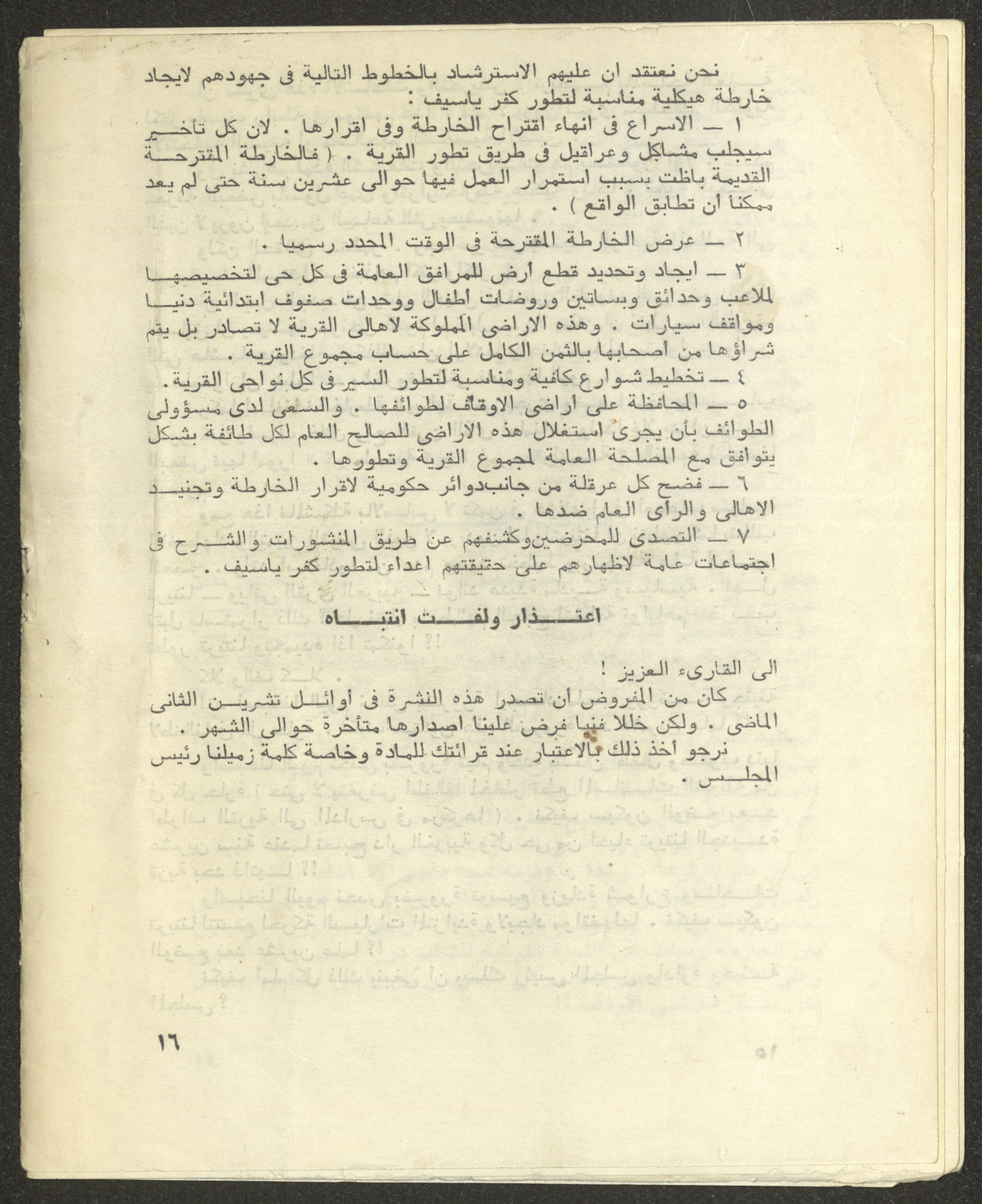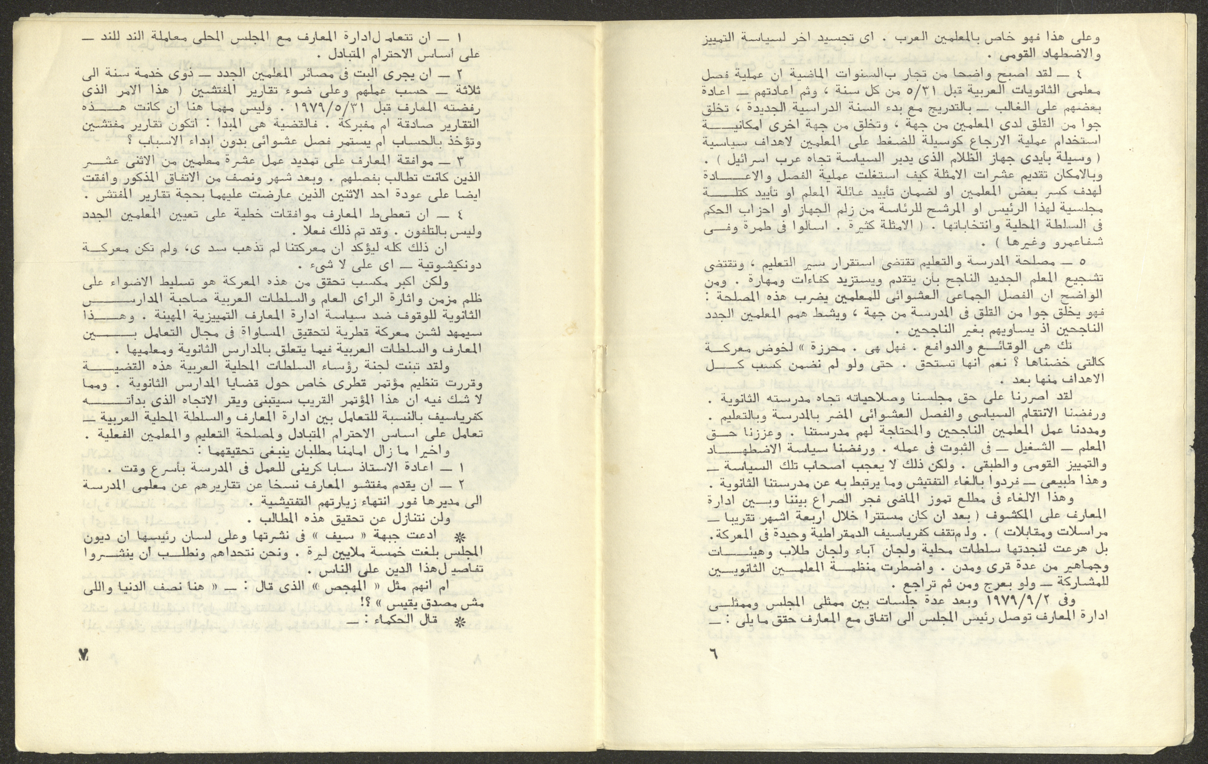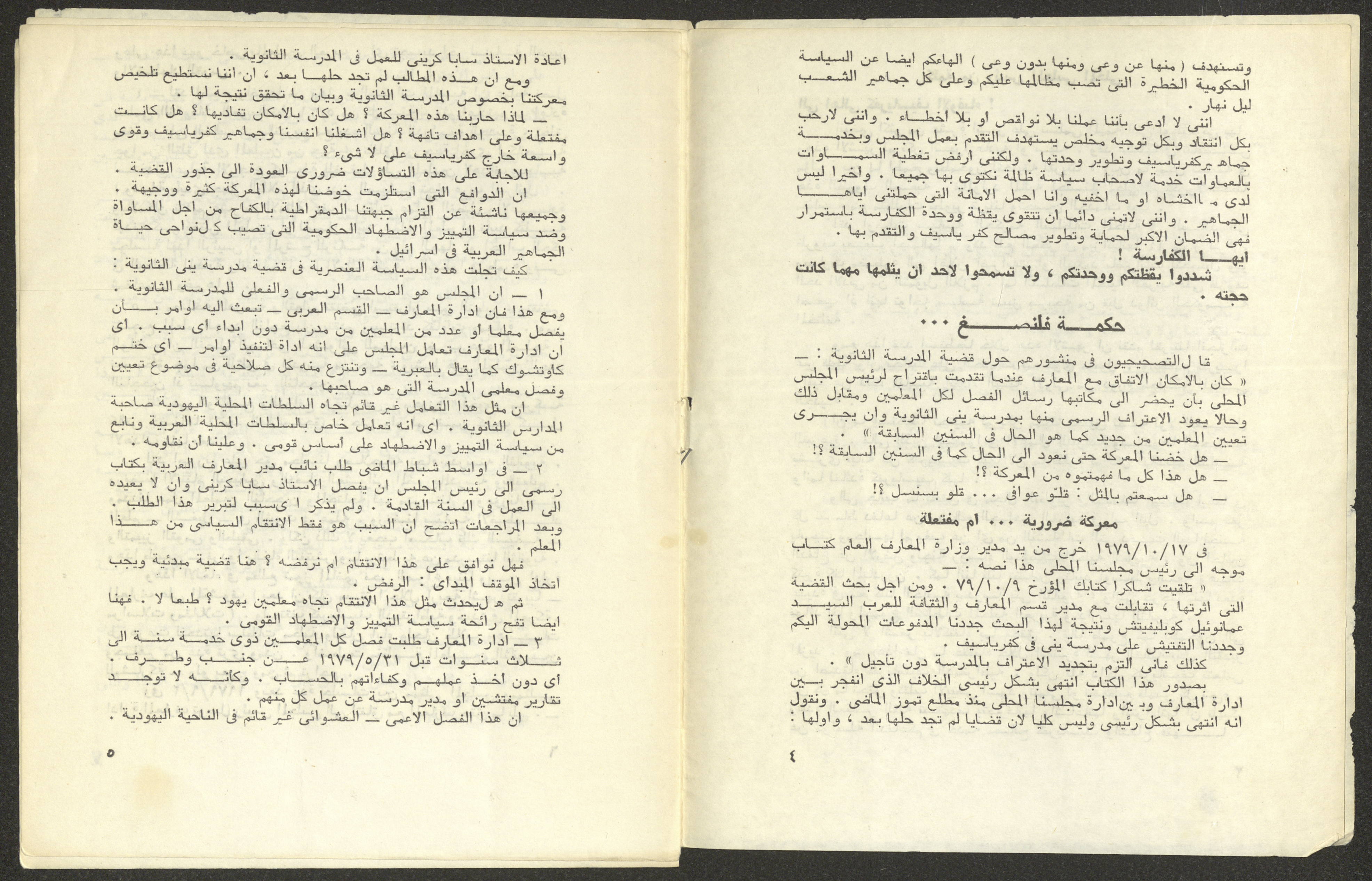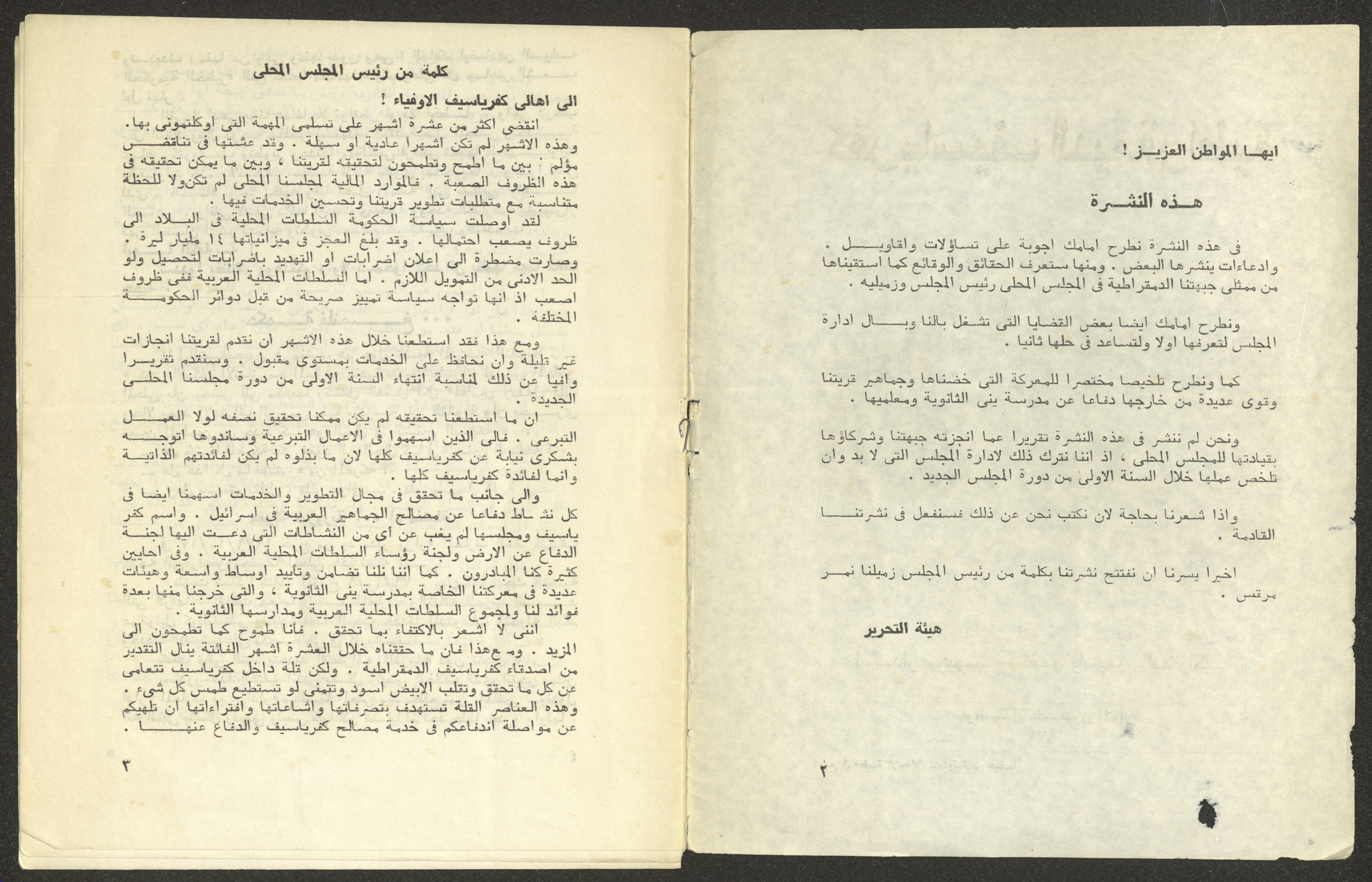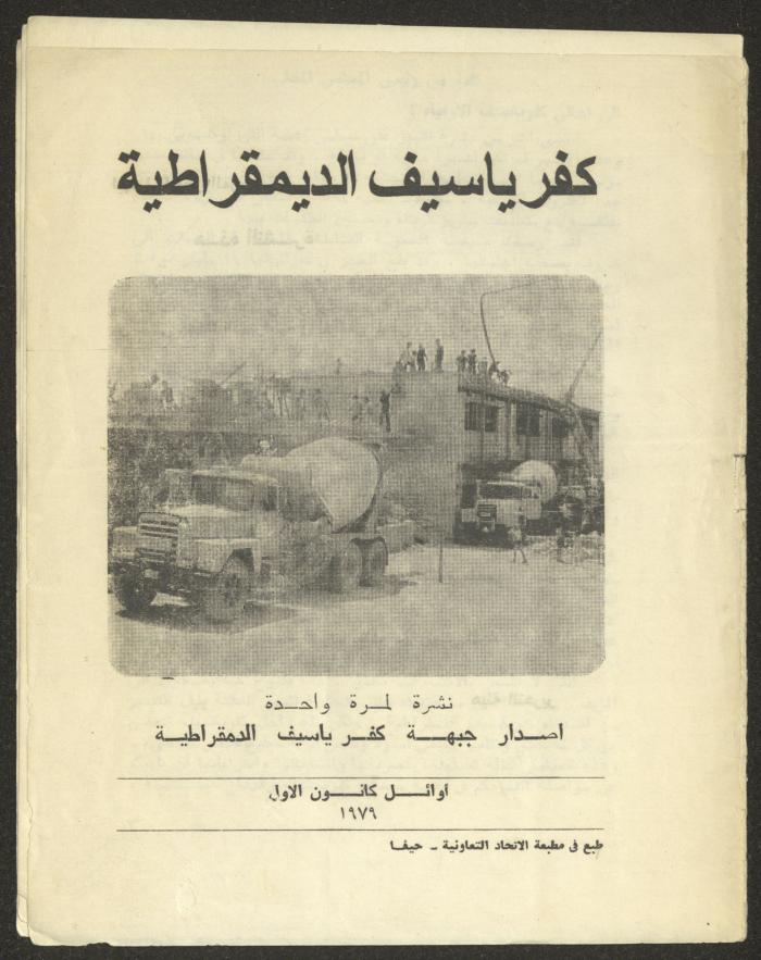 "كفر ياسيف الديمقراطية"، نشرة صادرة عن جبهة كفر ياسيف الديمقراطية، كانون الأول 1979