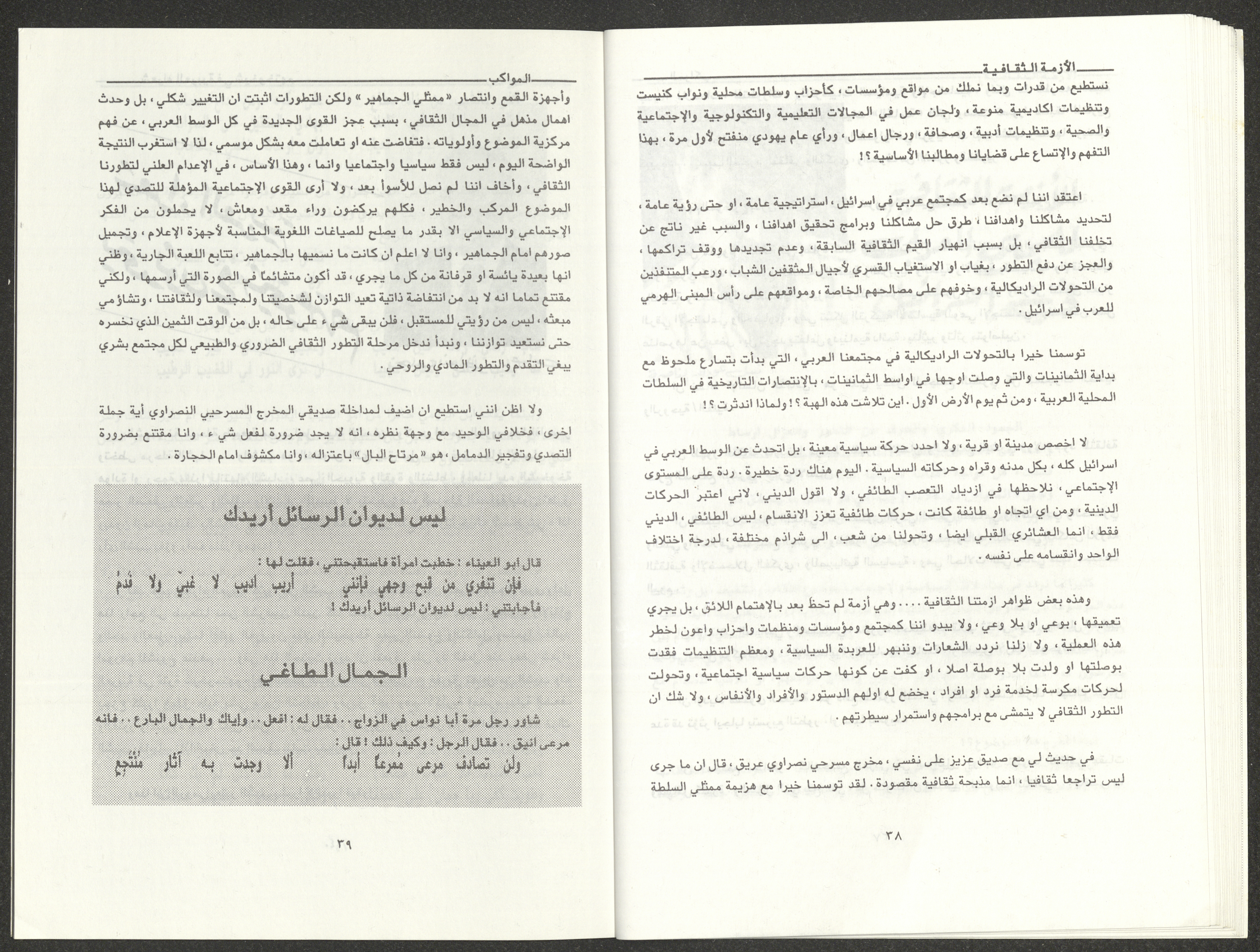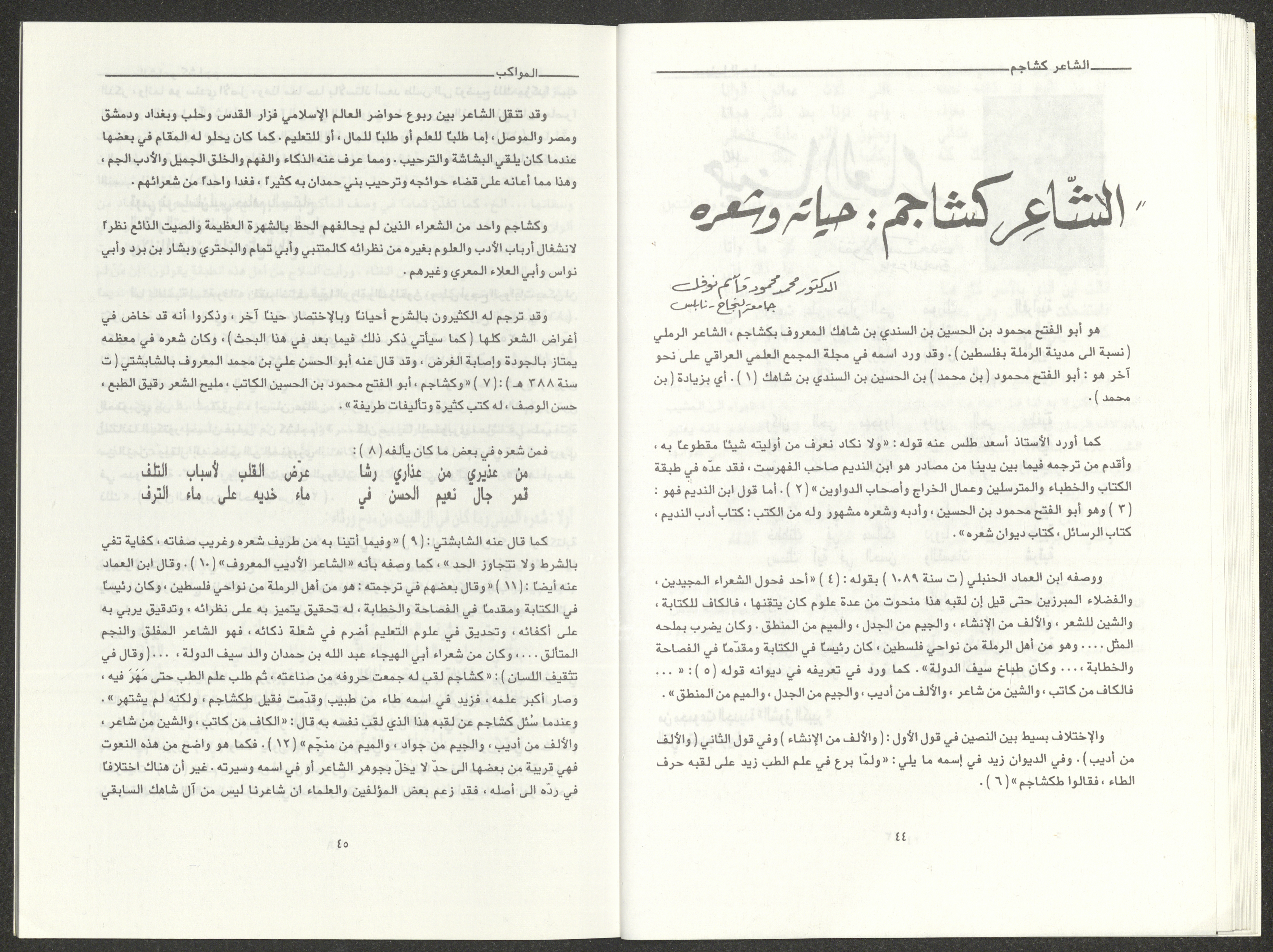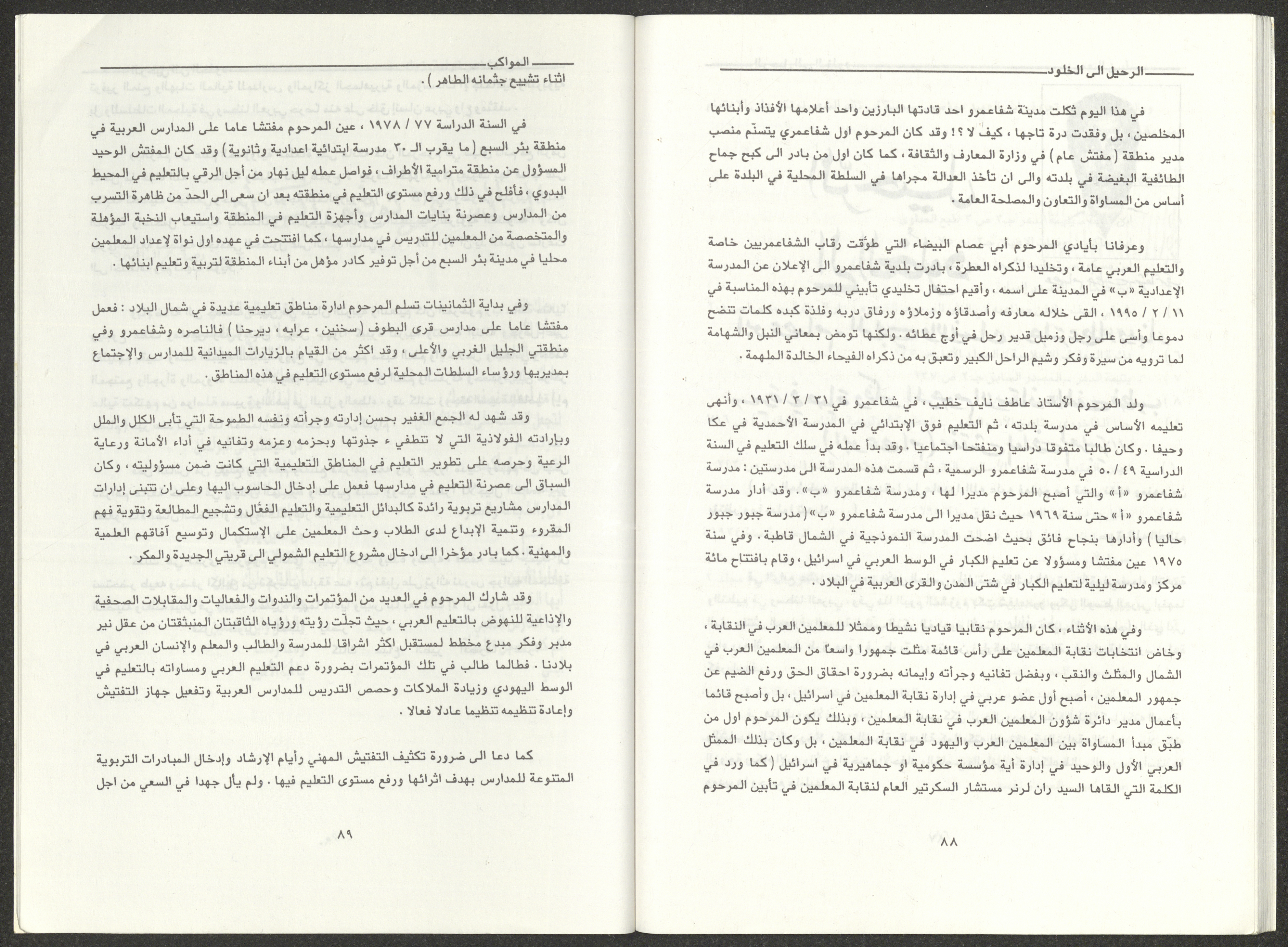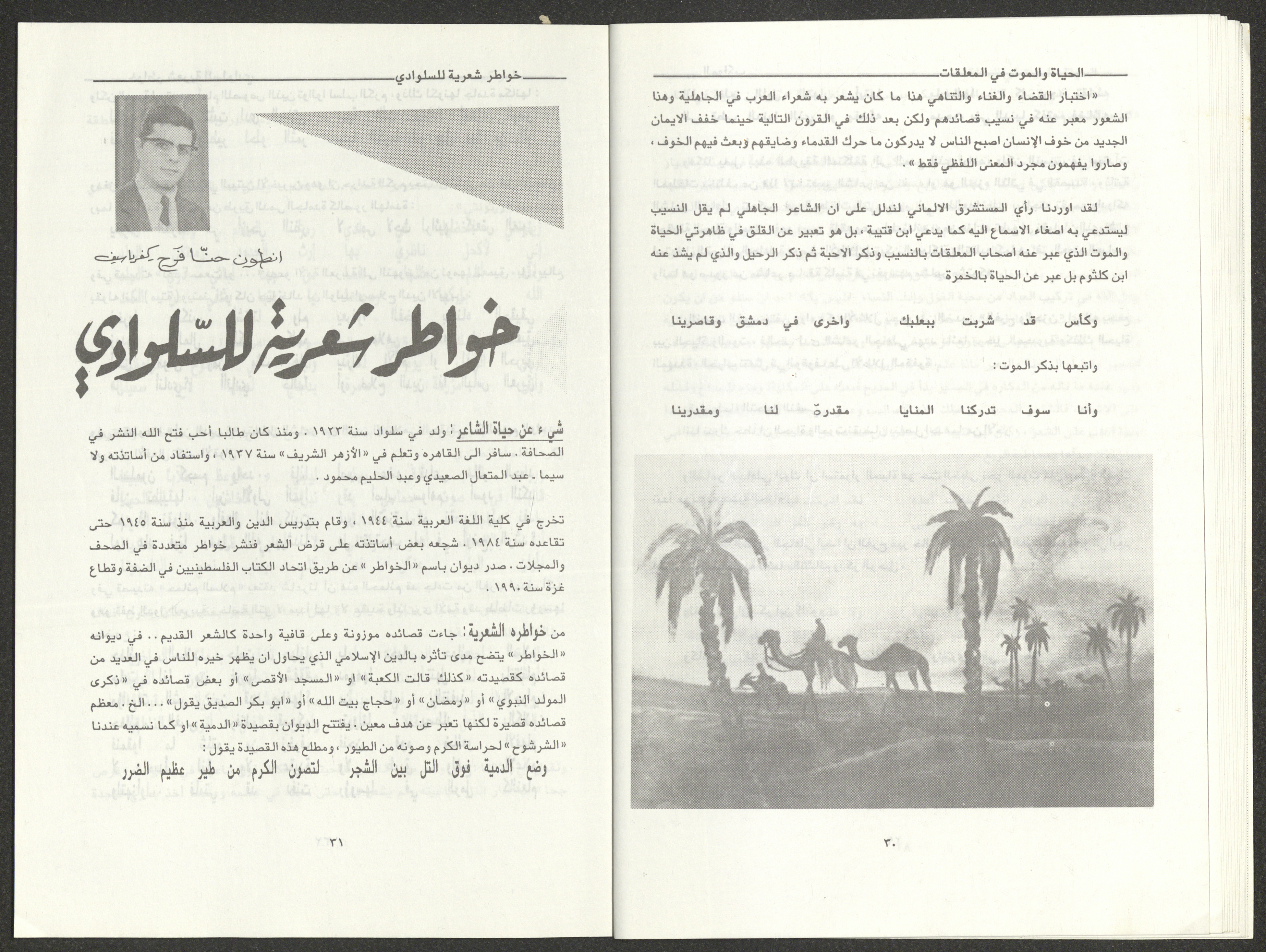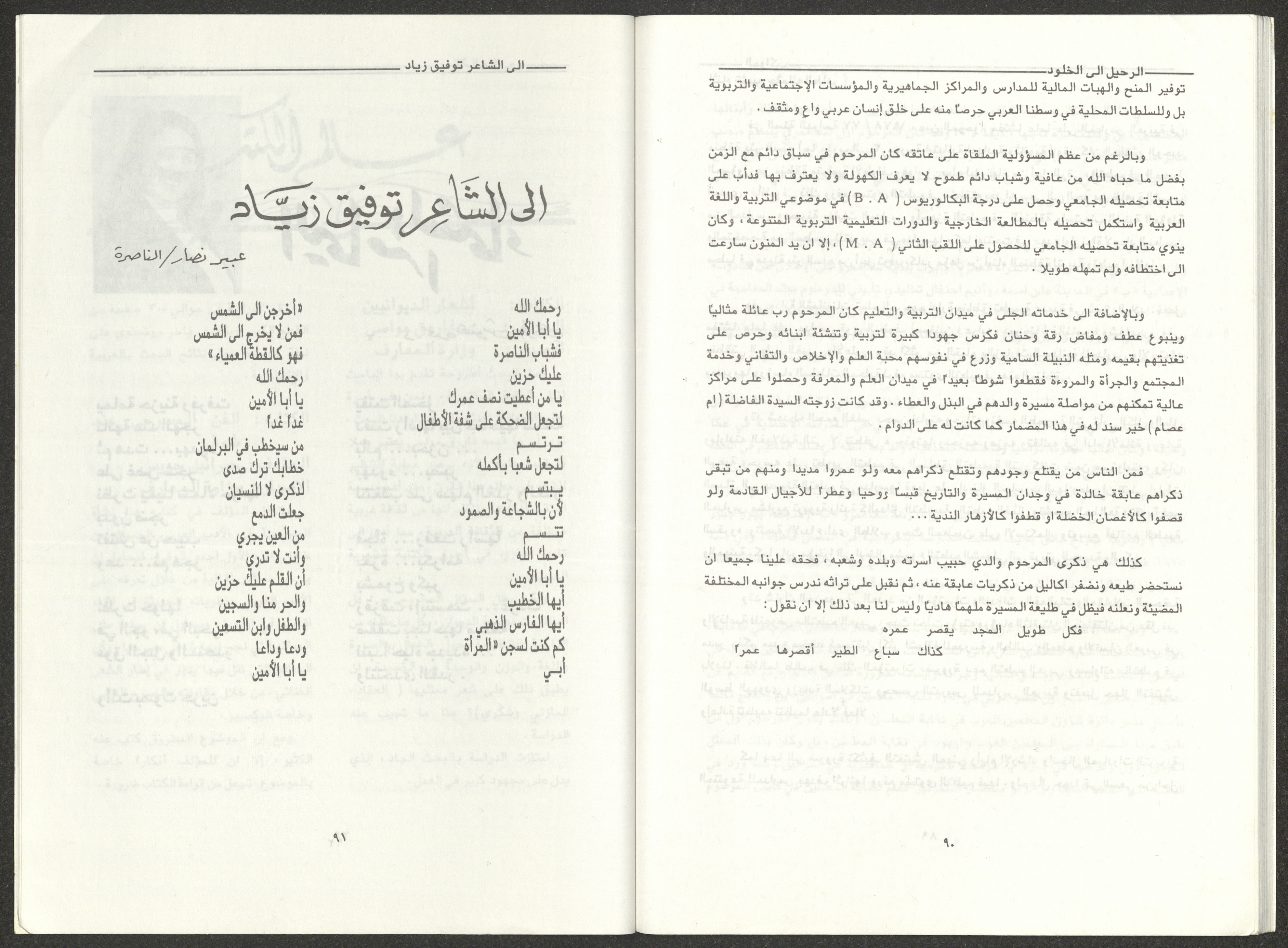 العدد الثالث والرابع من مجلة المواكب الذي صدر في آذار ونيسان عام 1995 وهي مجلة تهتم بالثقافة لمؤسسها وصاحبها الشاعر الفلسطيني فوزي عبد الله، وكان صاحب الامتياز فيها والمحرر المسؤول عنها جمال قعوار. تضمن العدد: مقال افتتاحي. قصة بعنوان "برقيات قصصية" كتبها صلاح حسن أحمد. نقد بعنوان "أيلول اليأس والأمل" لرمزية أبو مخ. مقال استعراضي بعنوان "الحركة الأدبية الفلسطينية في الناصرة" لأدمون شحادة. مقال بعنوان "ظاهرة اقتناء الحيوانات الأليفة" لحسن السعدي. شعر بعنوان "غيم يسافر في جبيني" لسليمان دغش. بحث بعنوان "اللغة والوحي والتنشئة" لتيسير الناشف. خاطرة بعنوان "النسيان" لمالك صلالحة. بحث بعنوان "الحياة والموت في المتعلقات" لجمال قعوار. مقال بعنوان "خواطر شعرية للسلوادي" لانطون حنا فرح. مقال بعنوان "الأزمة الثقافية للمجتمع العربي" لنبيل عودة. مقال بعنوان "شعراء العربية في شيخوختهم" لنجيب نبواني. شعر بعنوان "حينا العامر" لنقولا مسعد. بحث بعنوان "الشاعر كشاجم" أعده محمد نوفل. بحث بعنوان "القصة القصيرة في فلسطين" أعده رشاد شاور. بحث بعنوان "صورة الشاعر في أدبنا" لزكي الناشف. بحث بعنوان "حرية الفكر" لكمال صلالحة. بحث بعنوان "ابن العميد" لإلياس نصر الله. دراسة بعنوان "الرحيل إلى الخلود" أعدها عصام خطيب. قصيدة بعنوان "إلى الشاعر توفيق زياد" كتبتها عبير نصار. قصيدة بعنوان "اليمامة الشماء" كتبتها مجدة سروجي. شعر بعنوان "عالم الكتب" لجمال قعوار.
