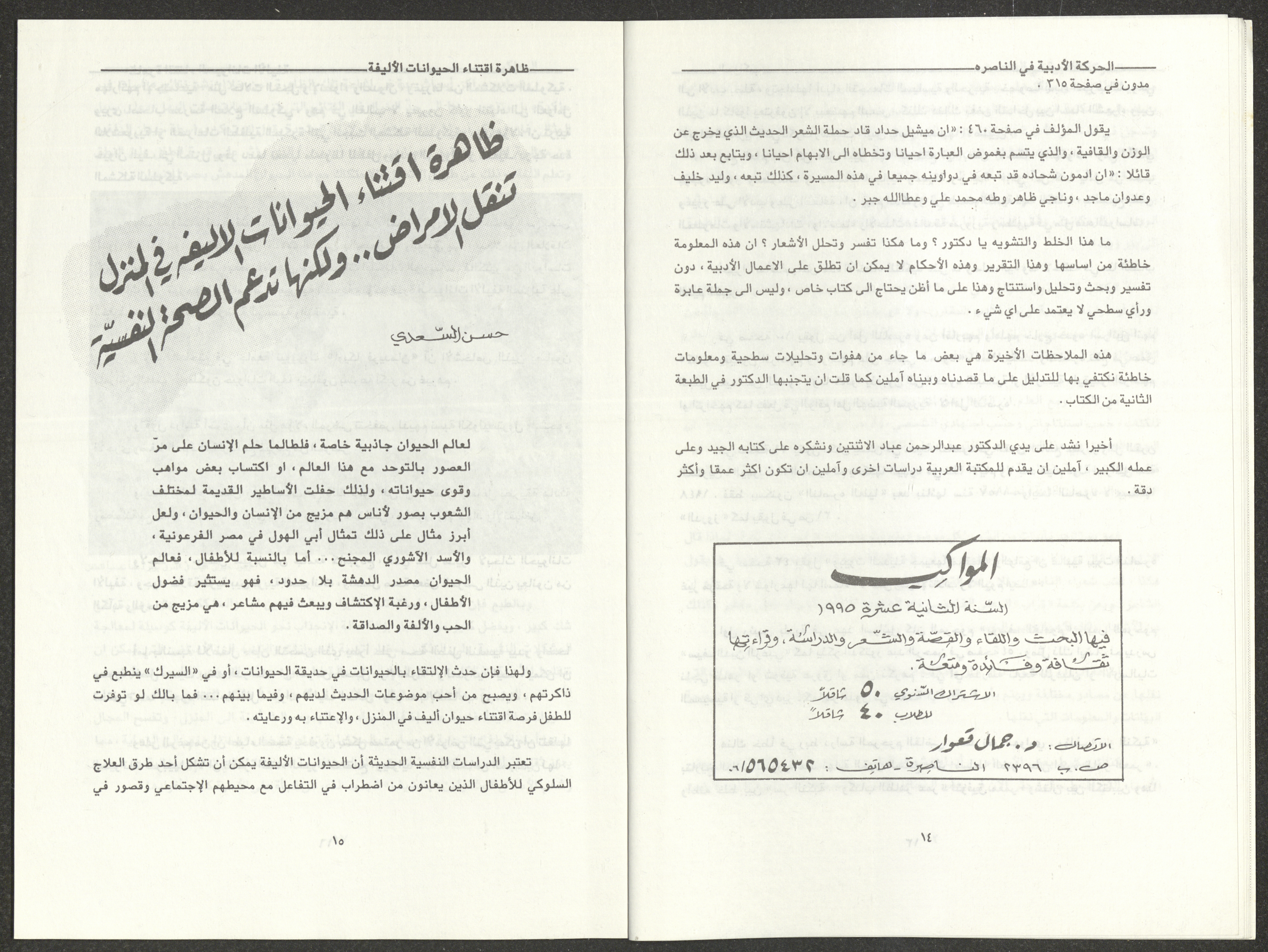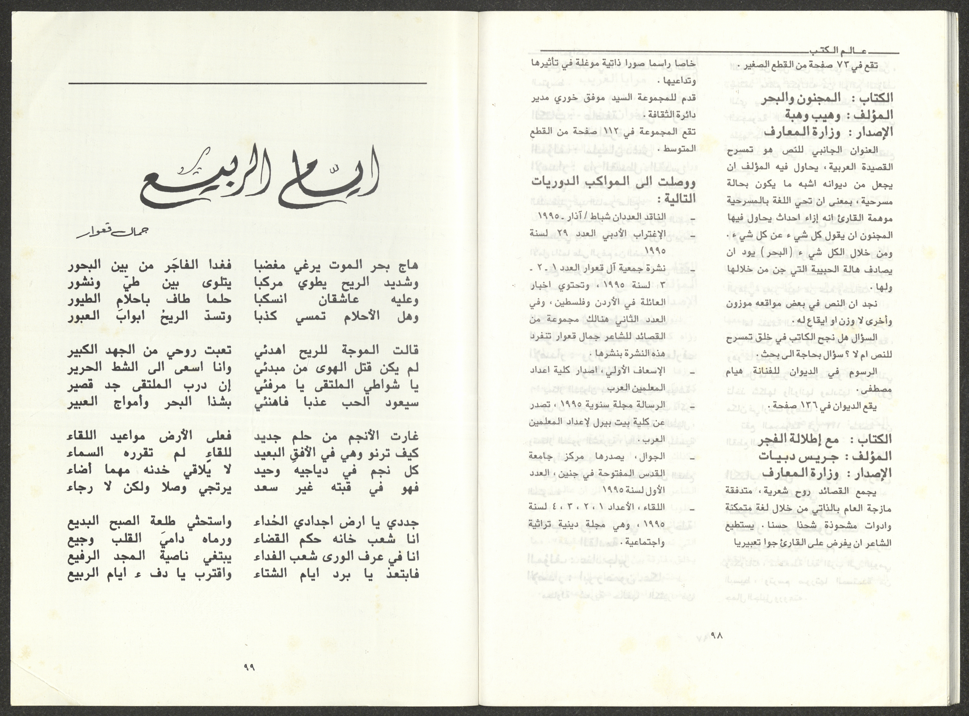 العددان الثالث والرابع من مجلة المواكب، آذار- نيسان 1995