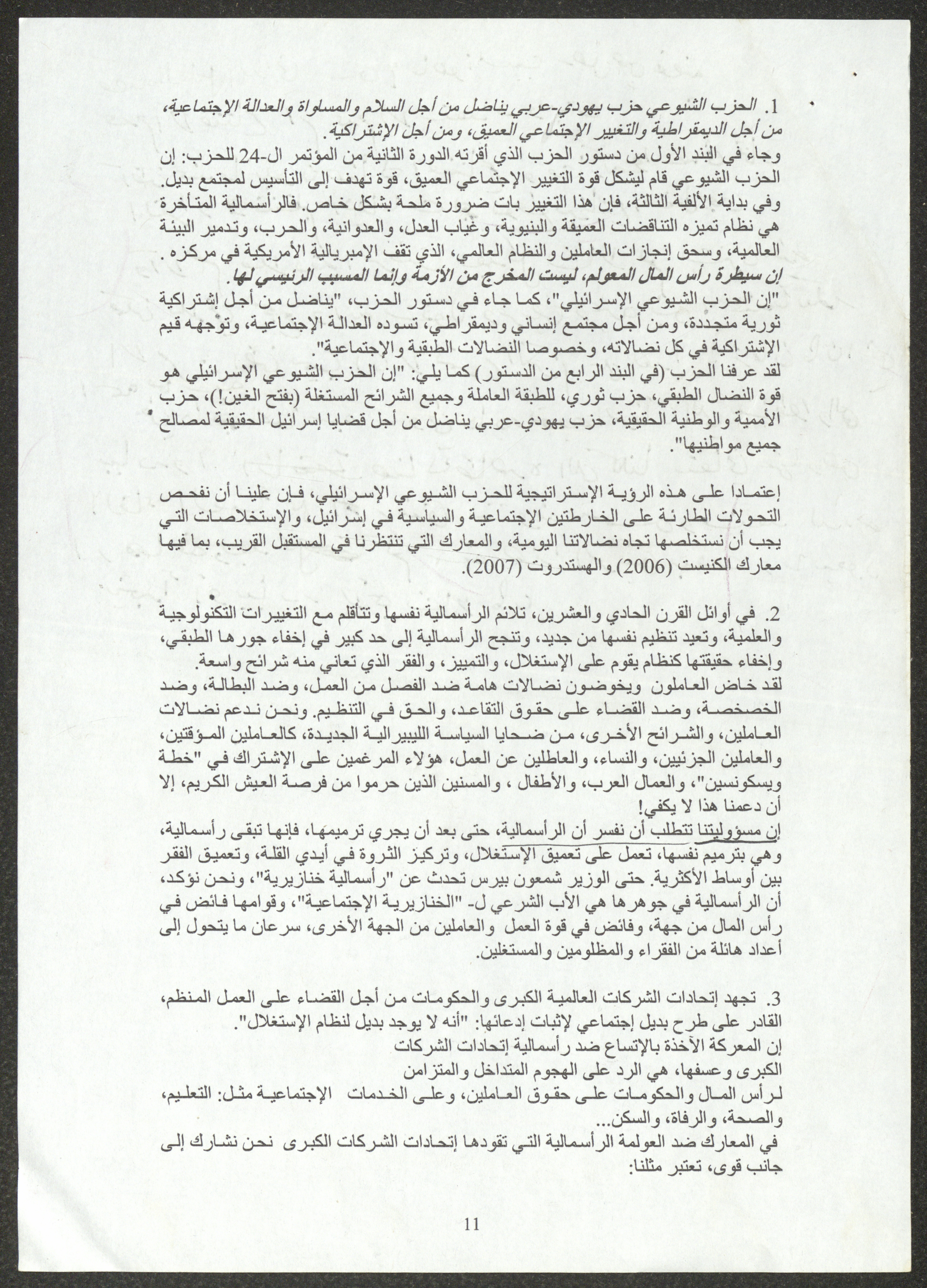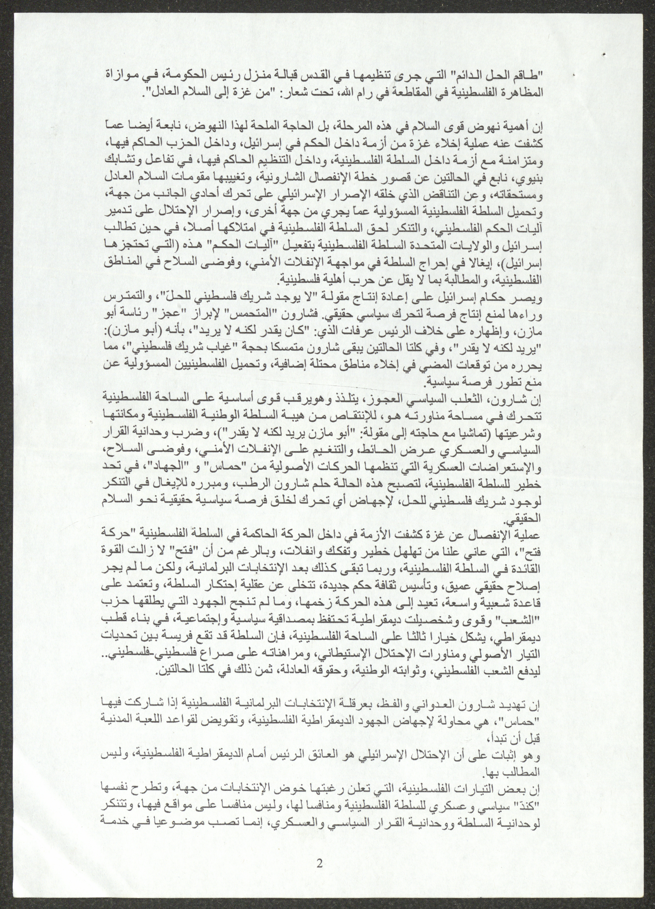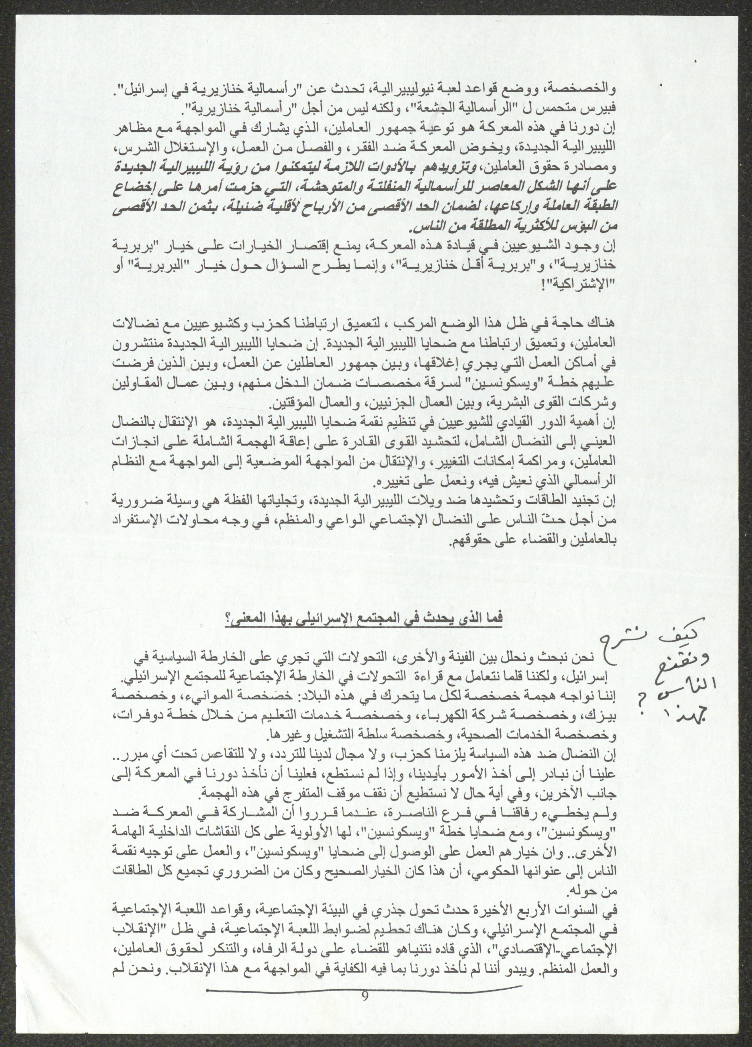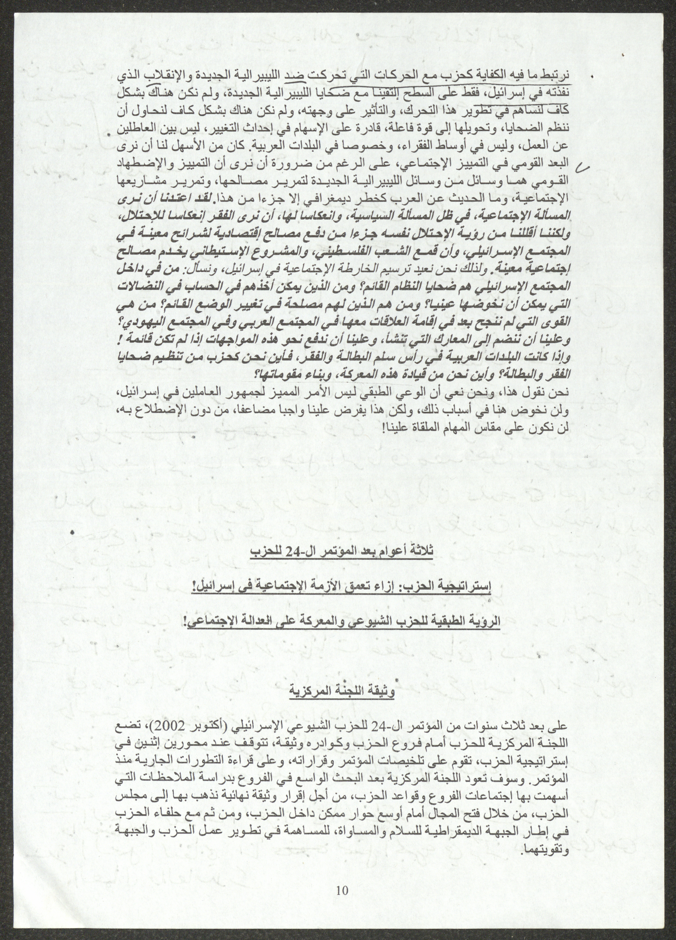نسخة عن محاضرة عصام المخول، السكرتير العام للحزب الشيوعي الإسرائيلي، أمام الدورة 22 للجنة المركزية بتاريخ 23 أيول 2005، حول استراتيجيات الحزب إزاء تعمق الأزمة في المجتمع الإسرائيلي ومهام الحزب خلال تلك المرحلة.