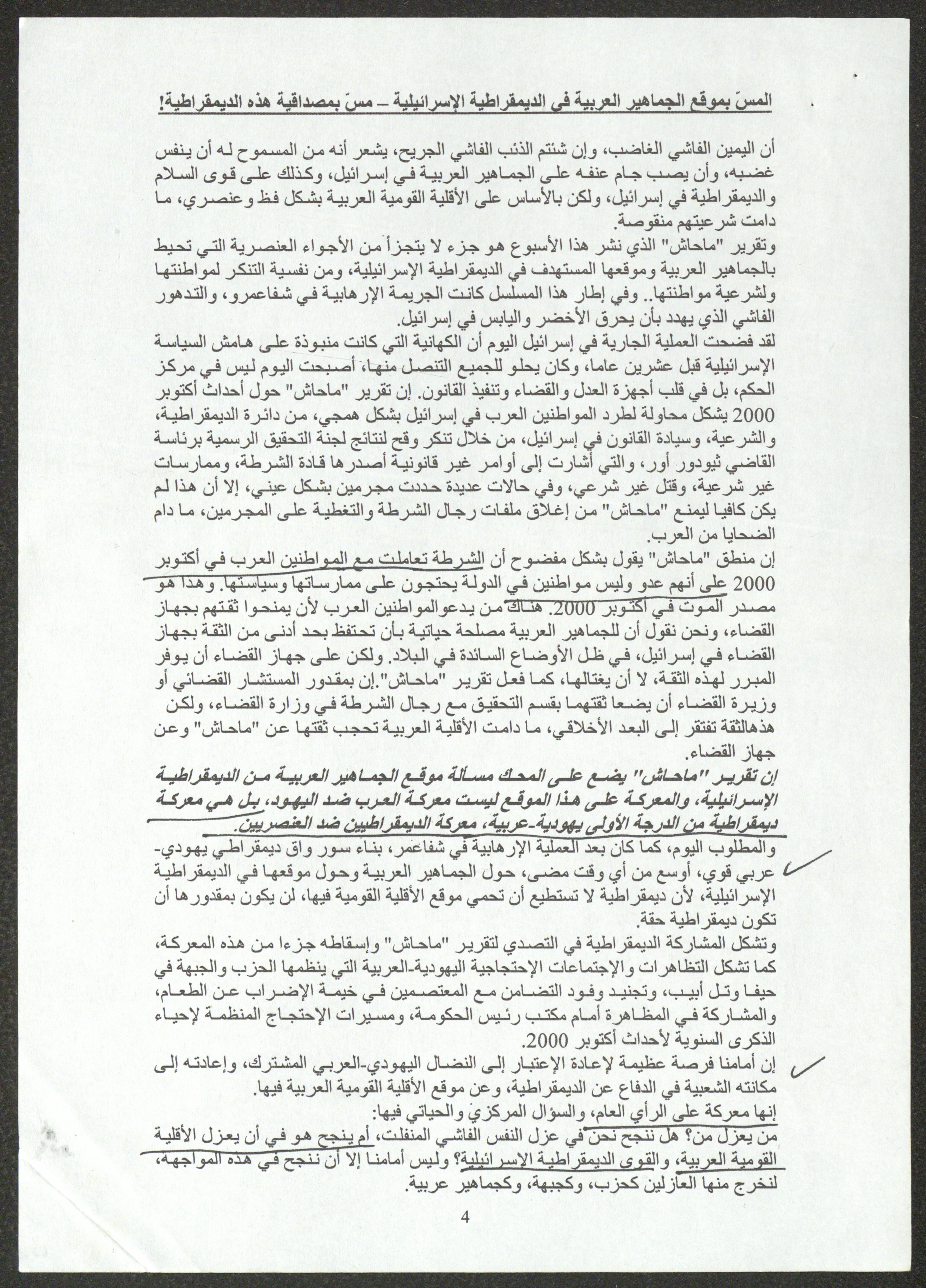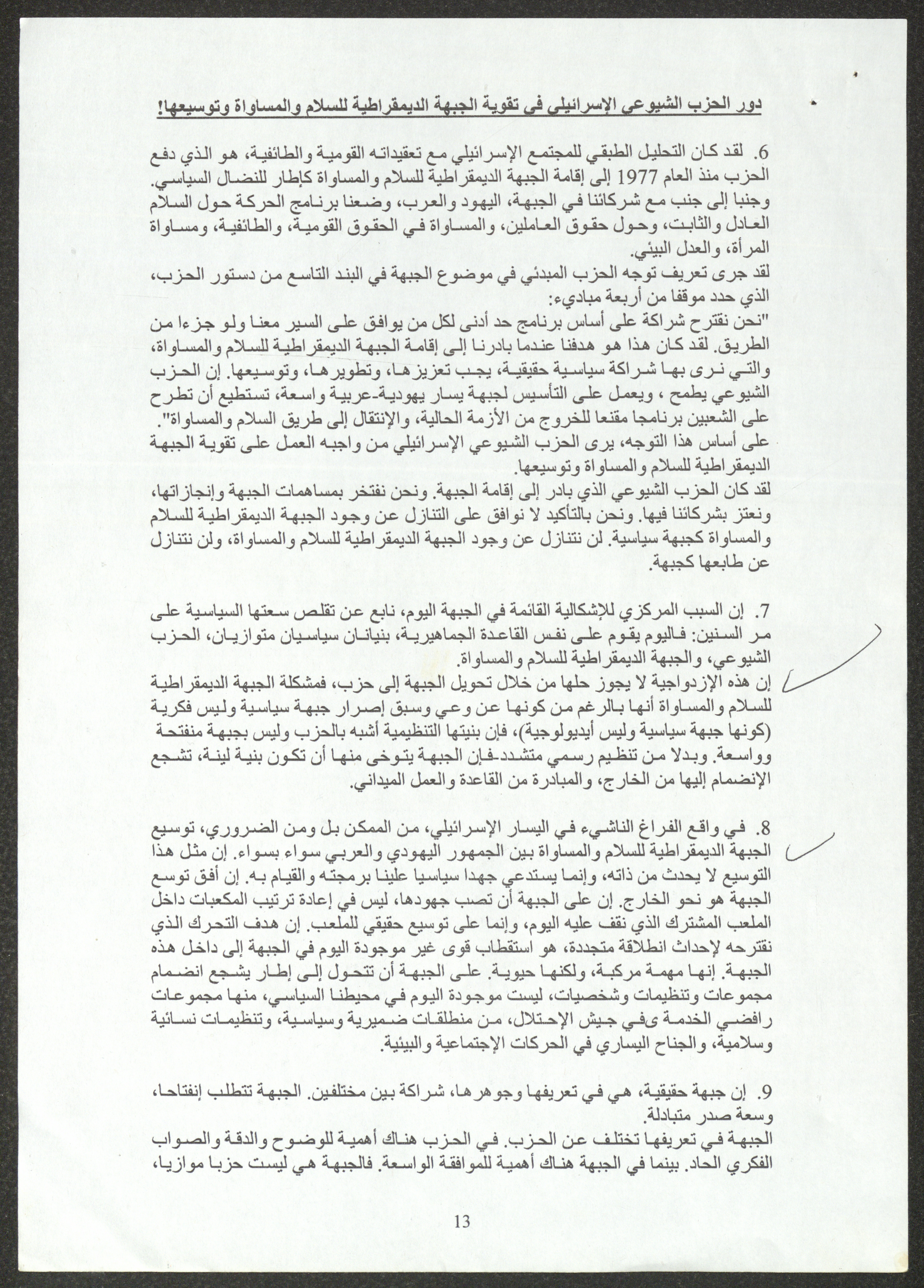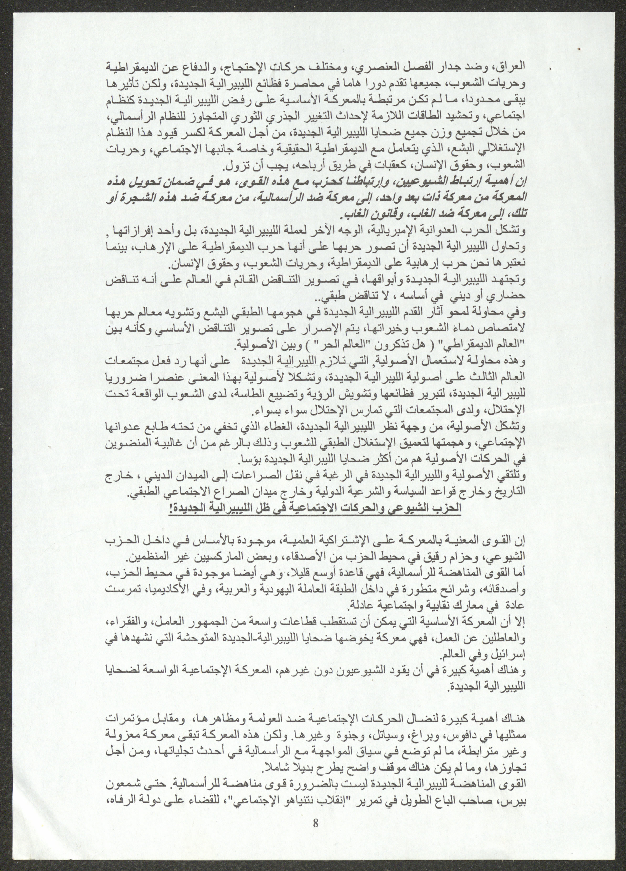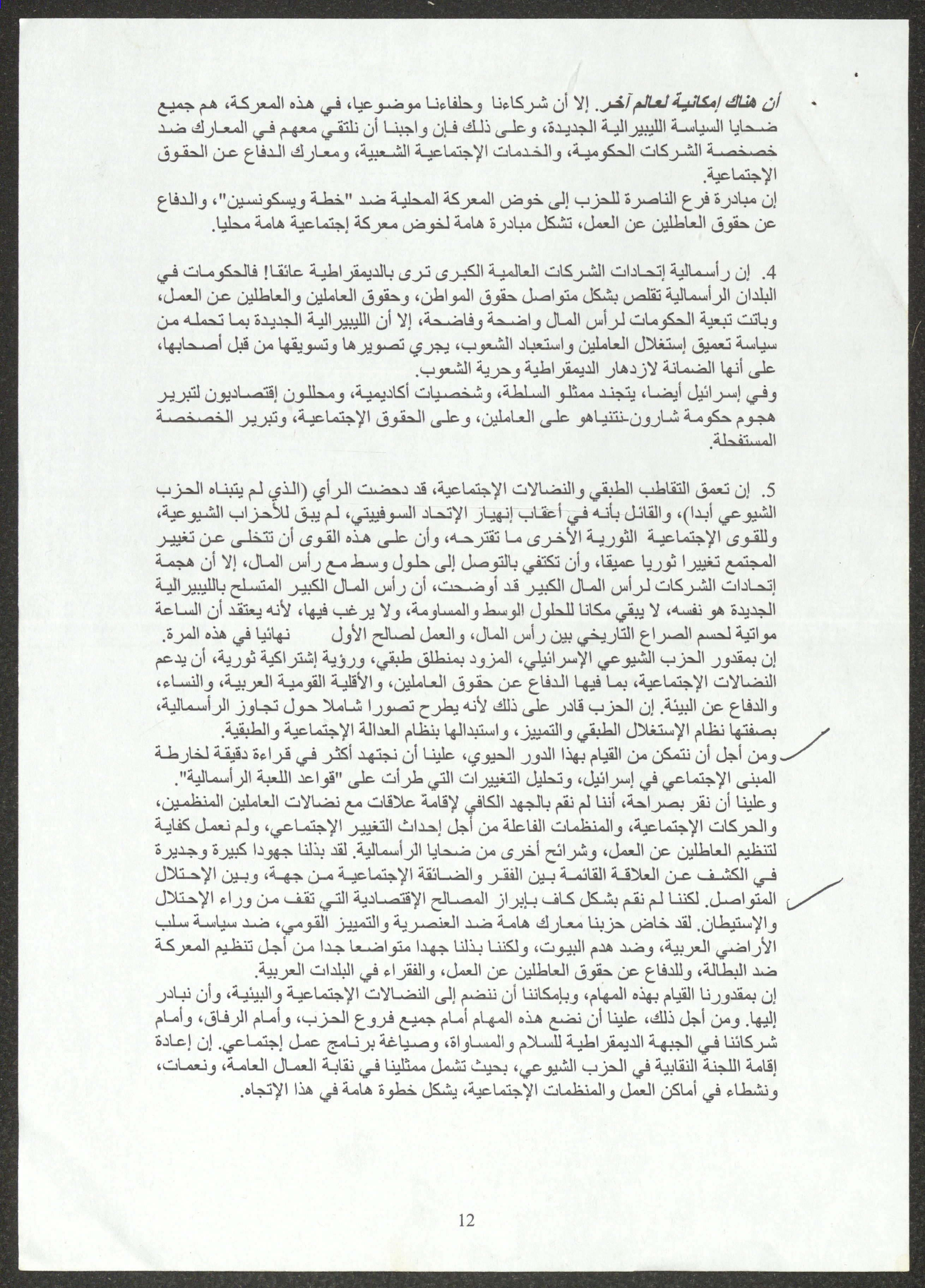 نسخة عن محاضرة عصام المخول، السكرتير العام للحزب الشيوعي الإسرائيلي، أمام الدورة 22 للجنة المركزية بتاريخ 23 أيول 2005، حول استراتيجيات الحزب إزاء تعمق الأزمة في المجتمع الإسرائيلي ومهام الحزب خلال تلك المرحلة.