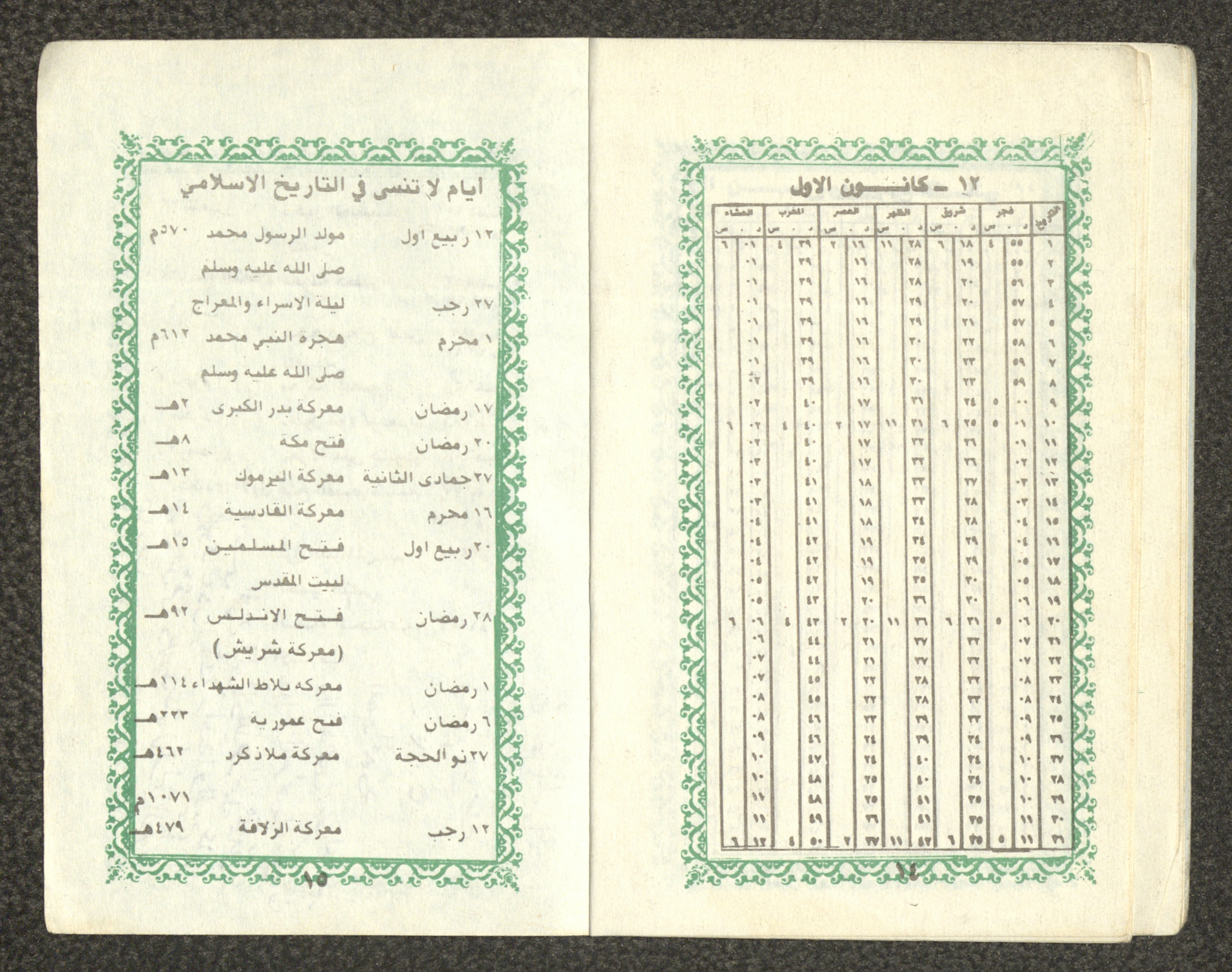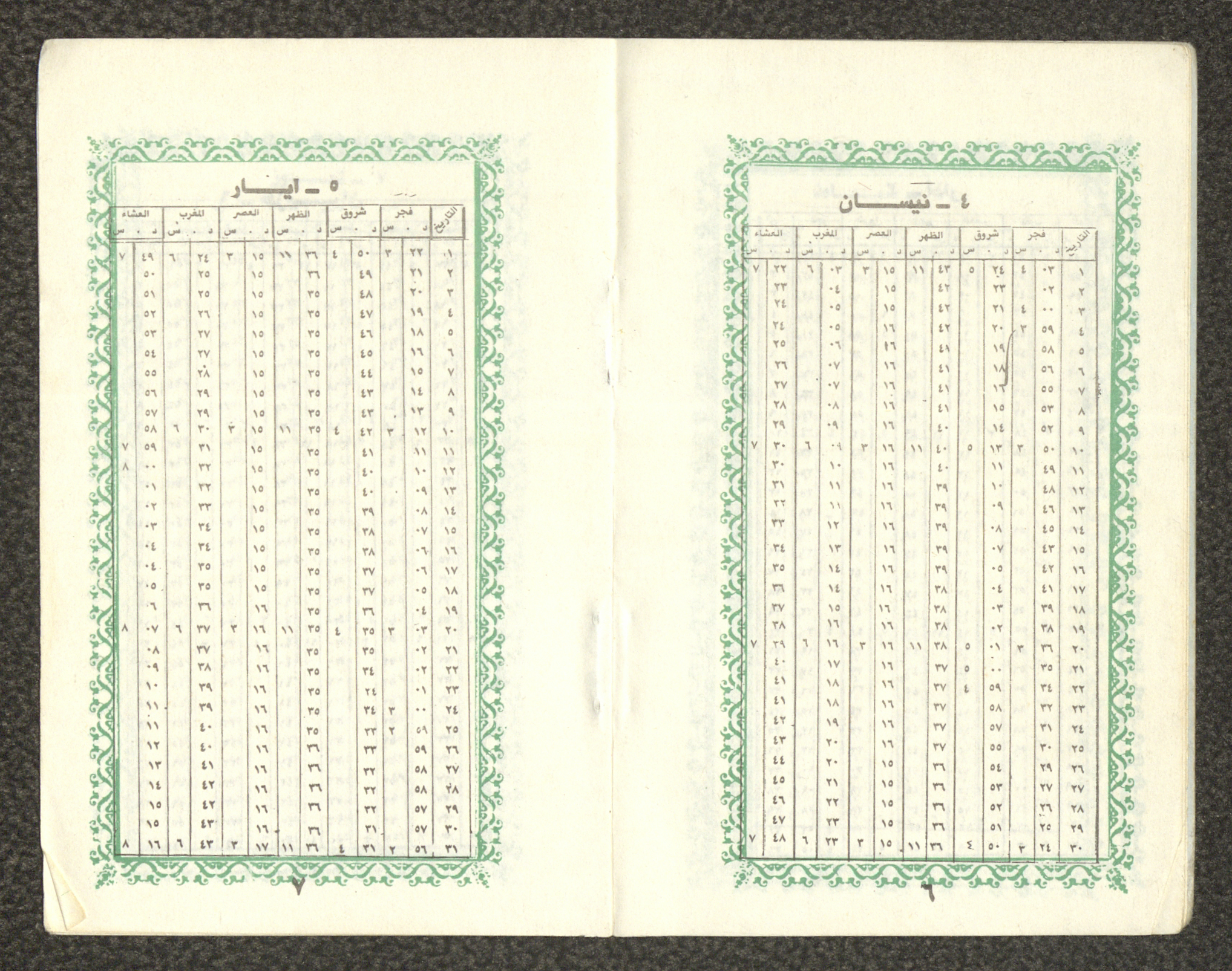 "The Prayer Timing", the Islamic Waqf Administration, Jerusalem, 1988