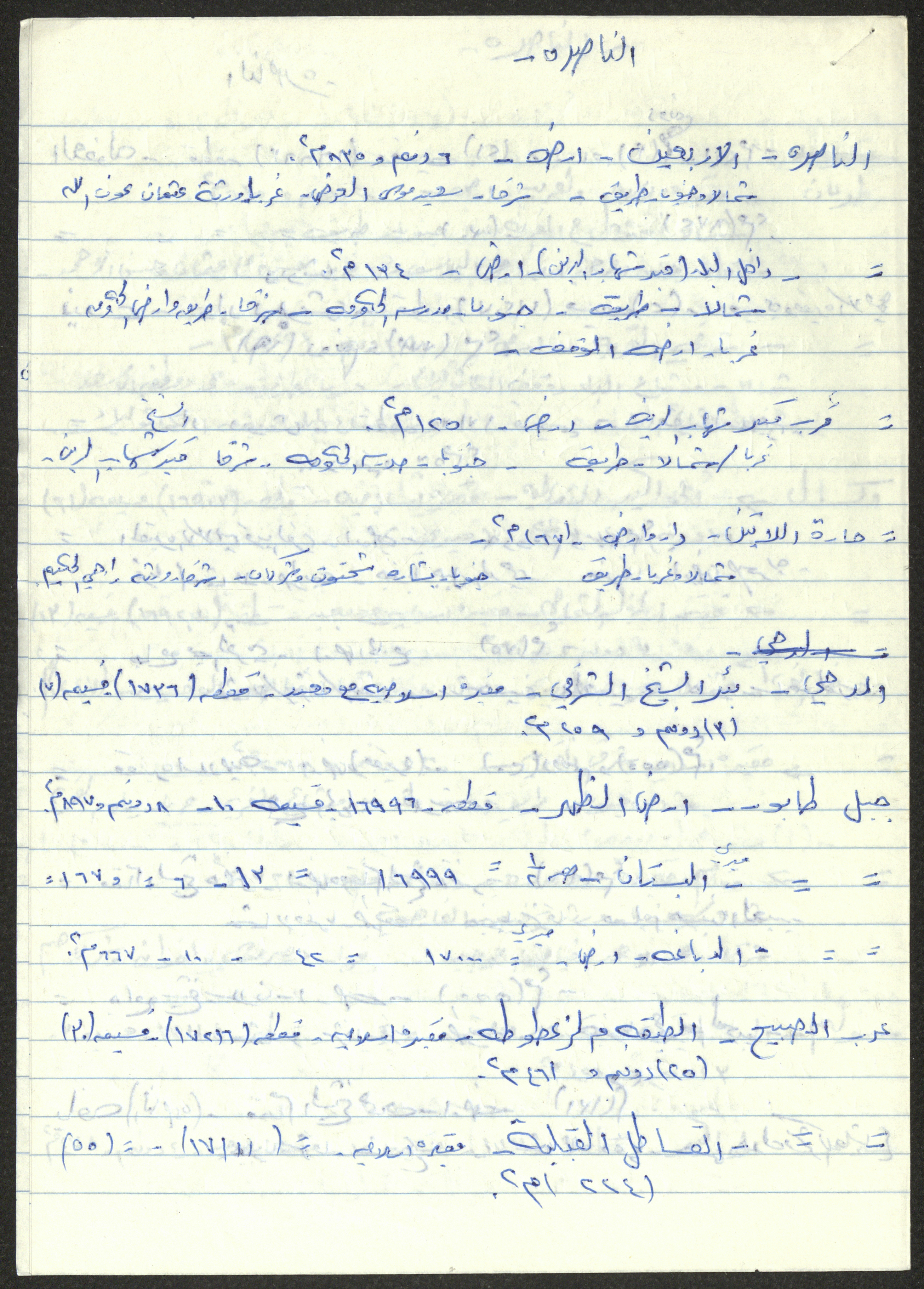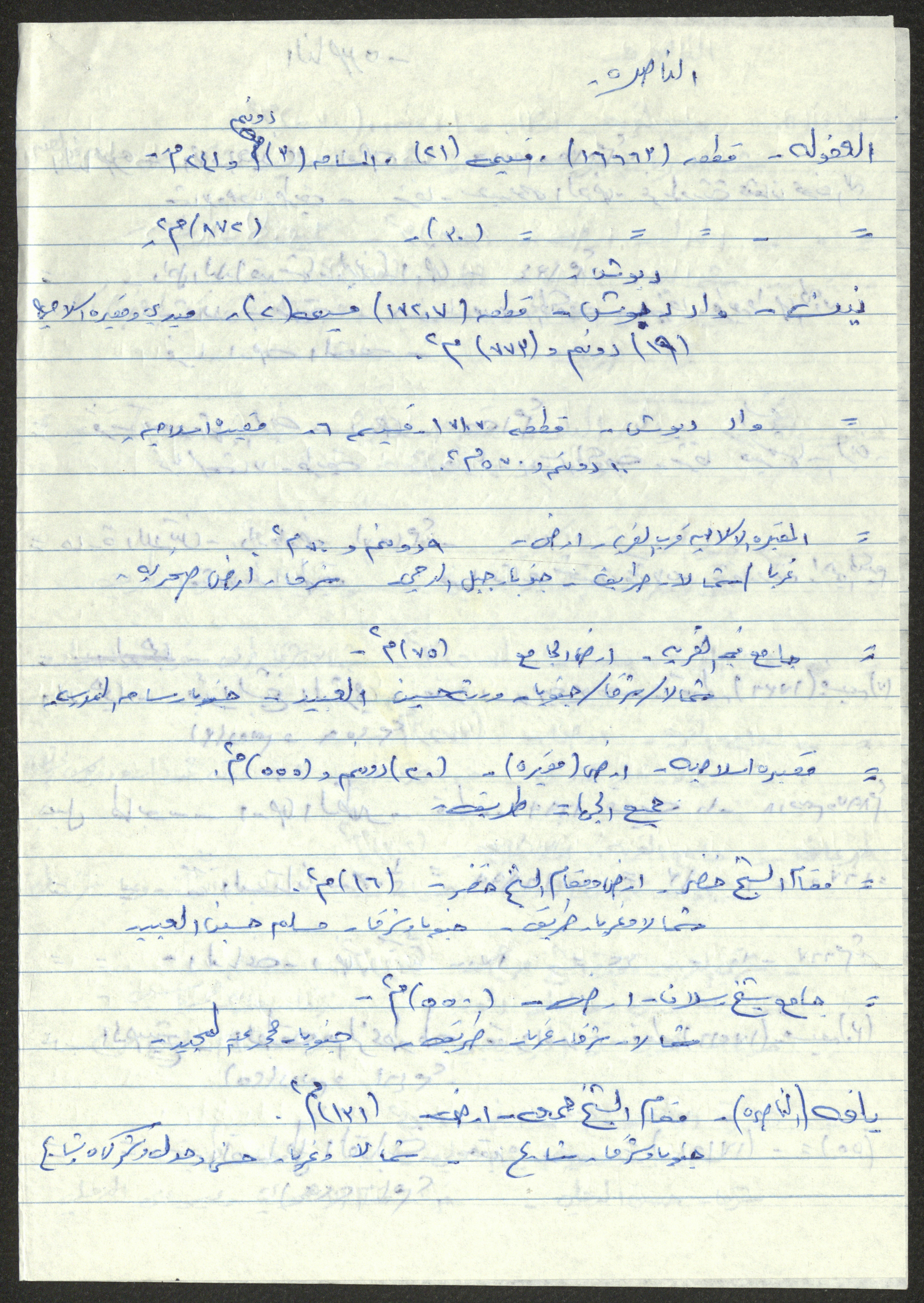 Handwritten in Arabic, this document shows quotes by Sameeh Hammoudeh from the file of Islamic Endowments, which show the Endowments' properties in Nazareth and Tiberias.