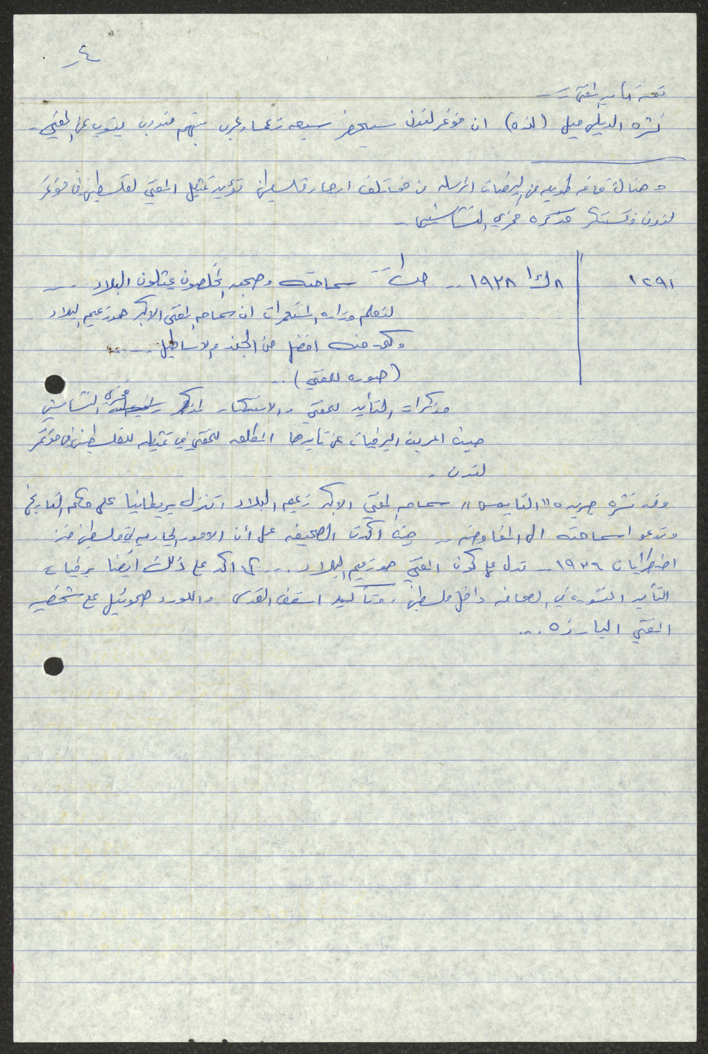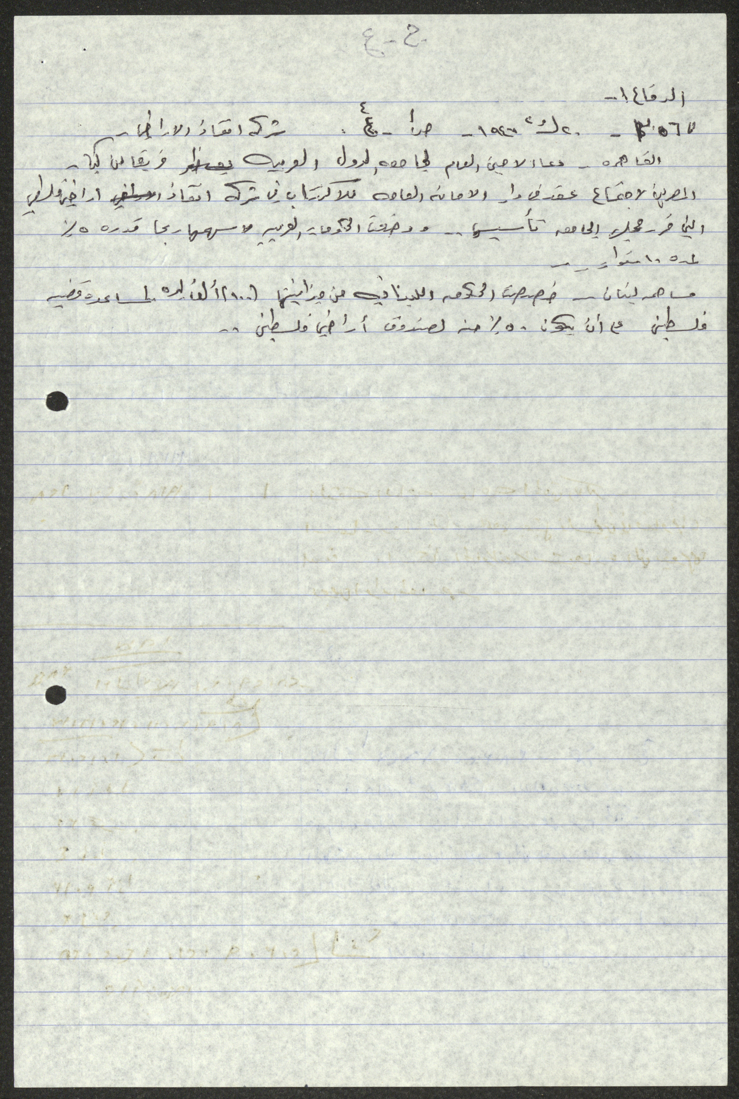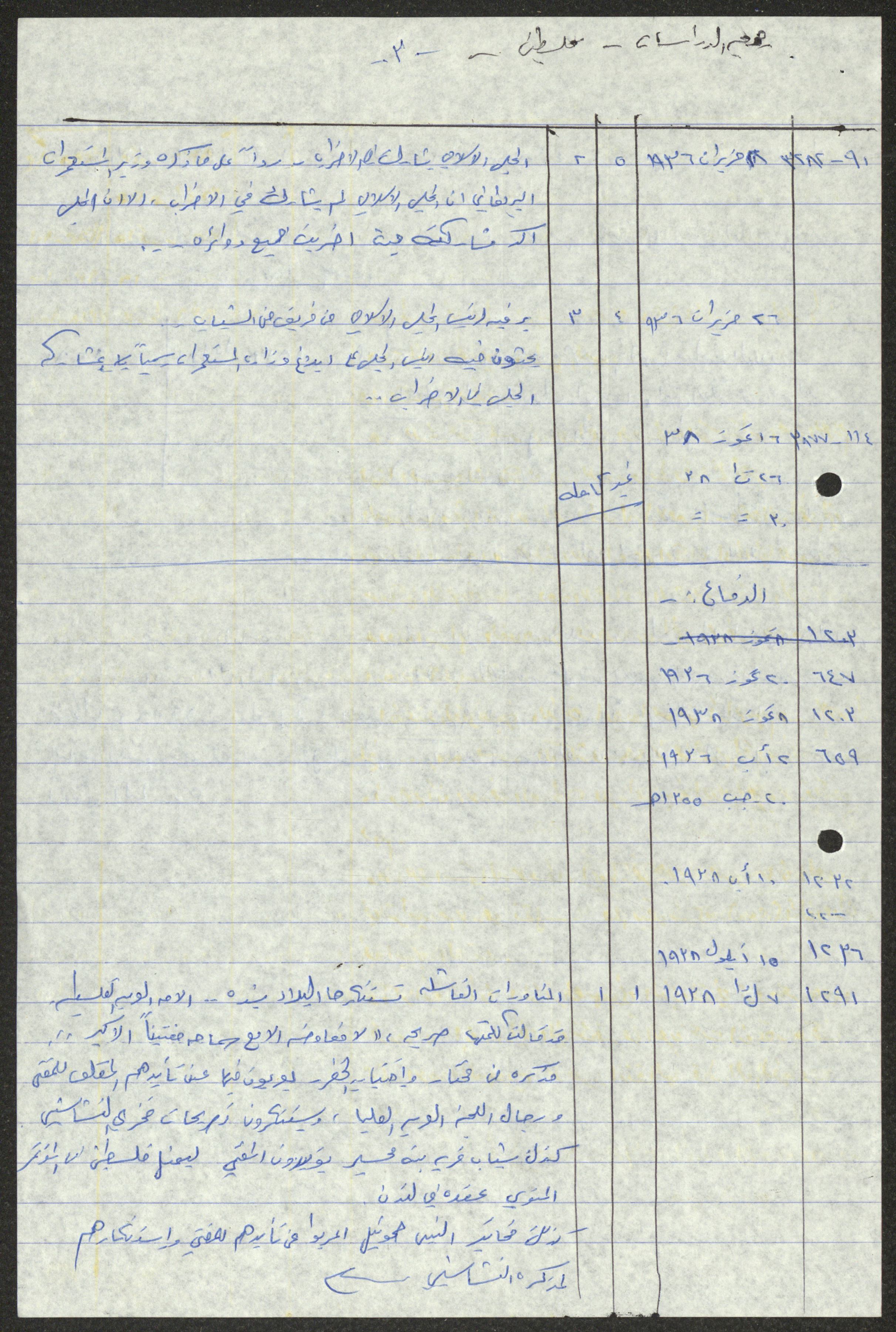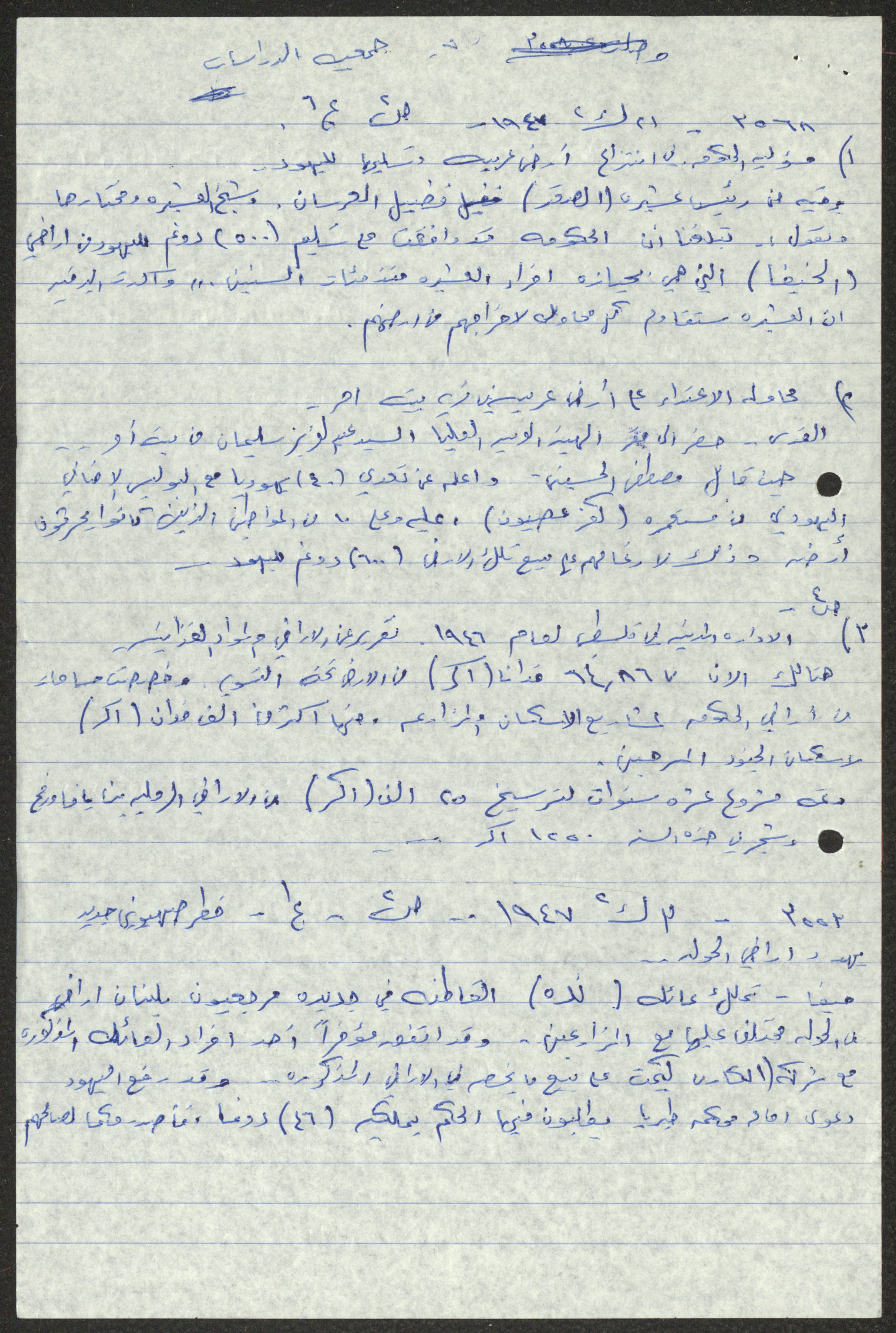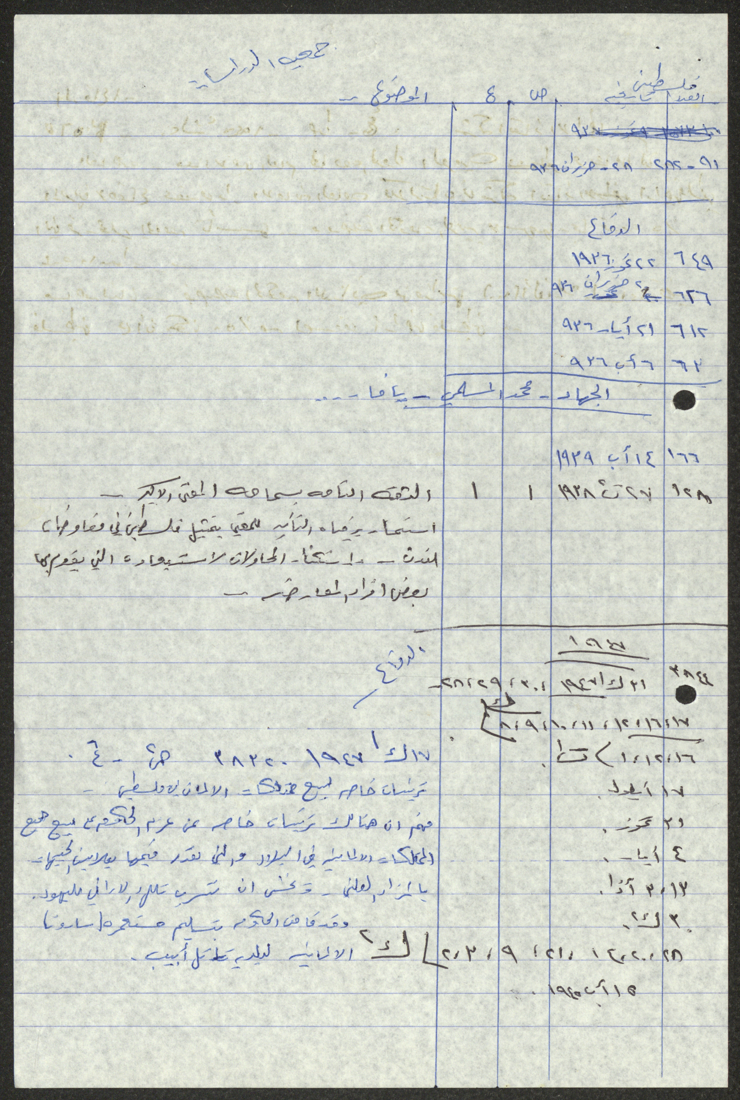 Handwritten by Sameeh Hammoudeh in Arabic, this document shows a transcript and quotes from different periodicals including Palestine, al-Difa, al-Sirat and al-Haya. These selected issues document the attacks on Palestinian farmers and the confiscation of their lands by the British Mandate and the transfer of their ownership to the Jews.