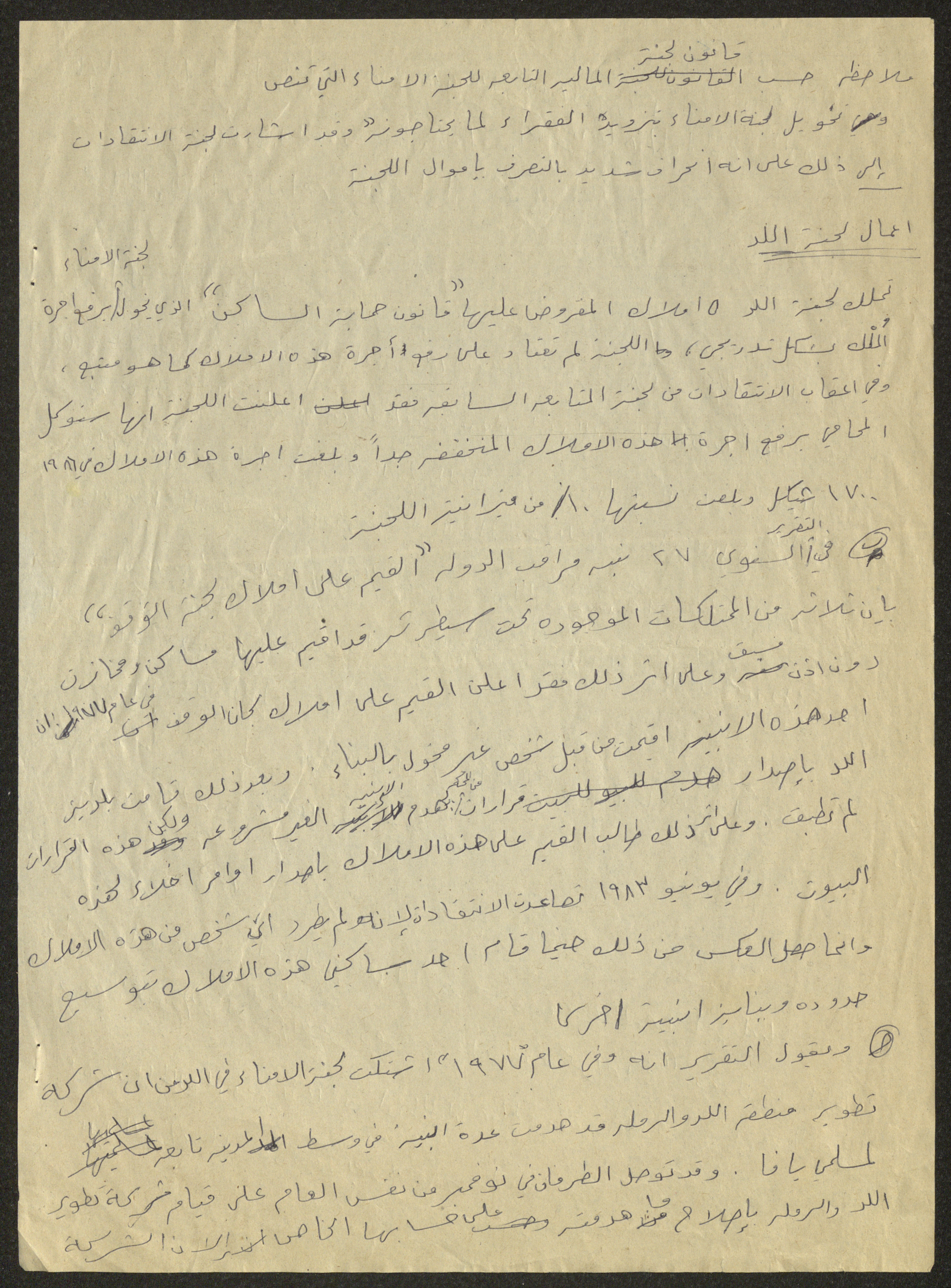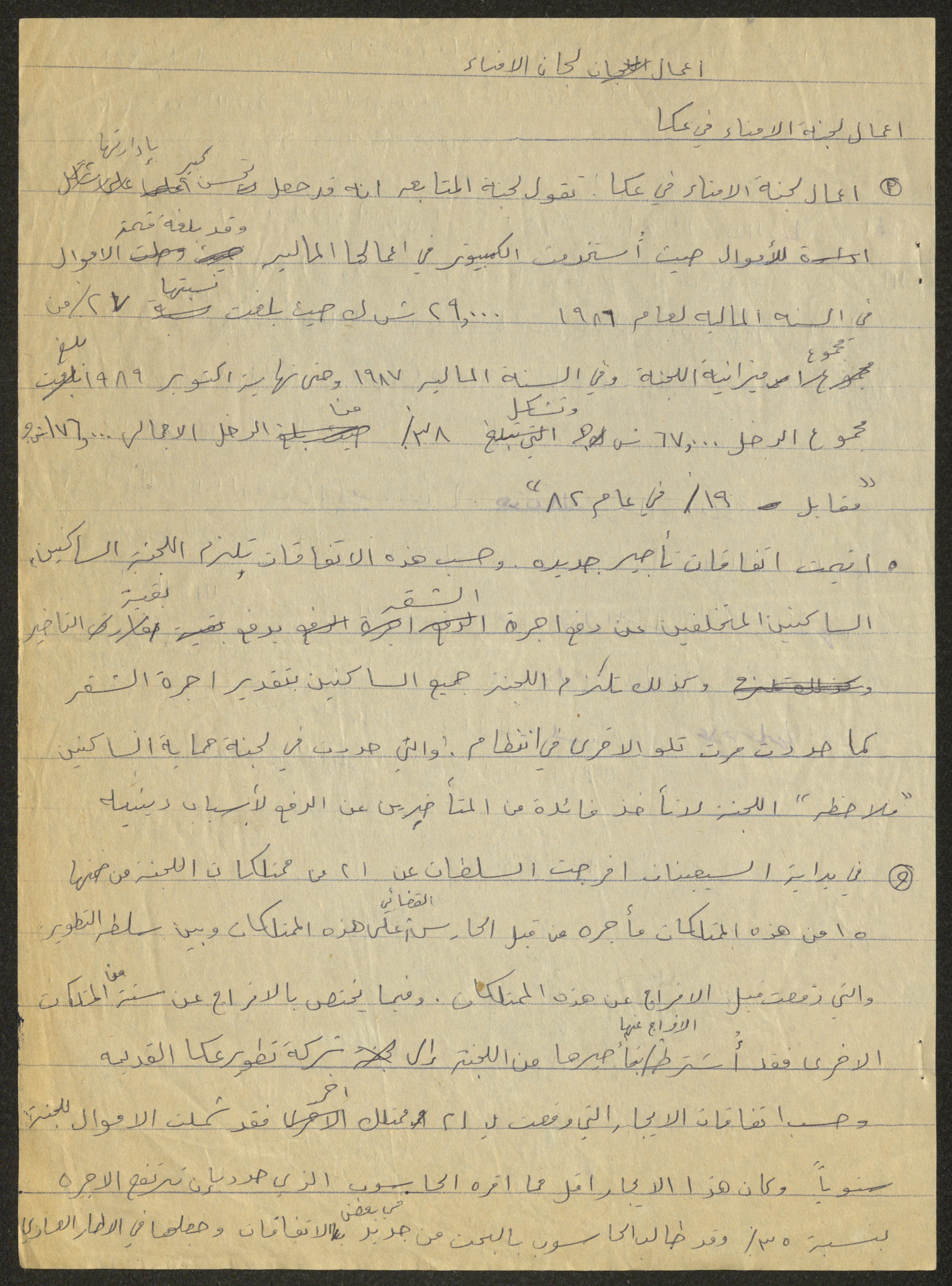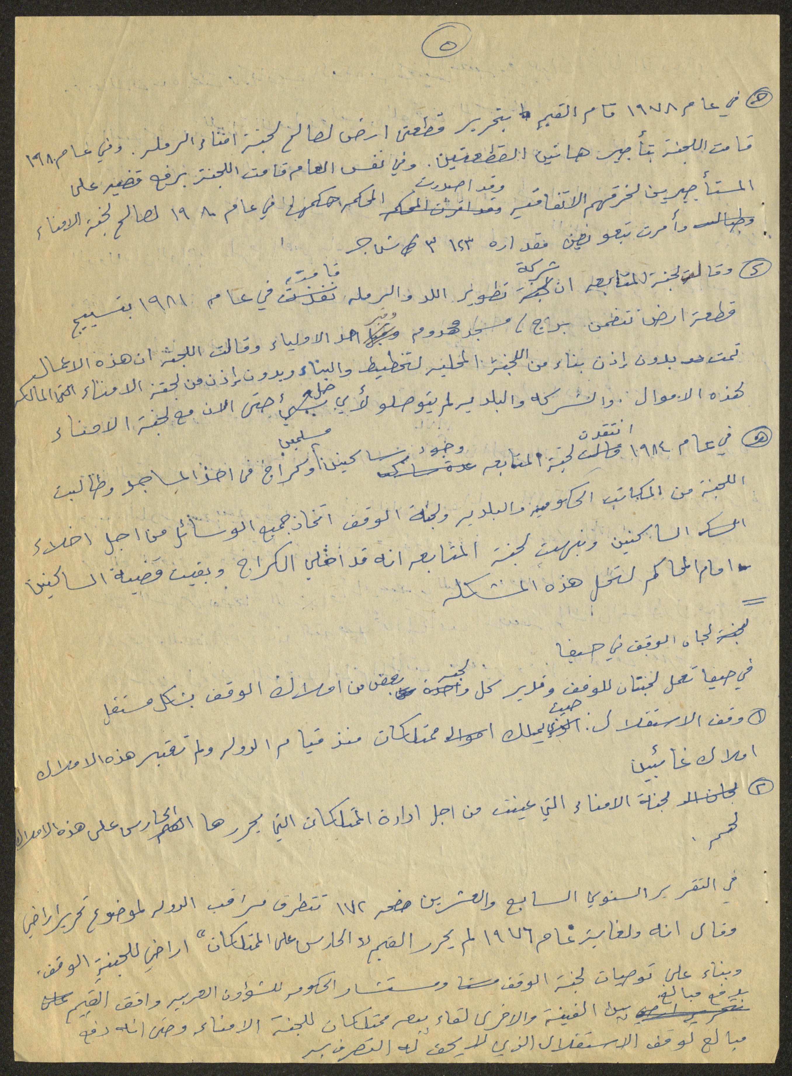 This document features a summary of reports on the work of the committees in charge of the preservation of properties across Palestine, including the work of the Trustees Committee in Akka for 1966, the work of the Religious Endowments (Waqf) Committee in Yafa for 1982 in addition to the work of the Lod and Ramle Committee for 1970.