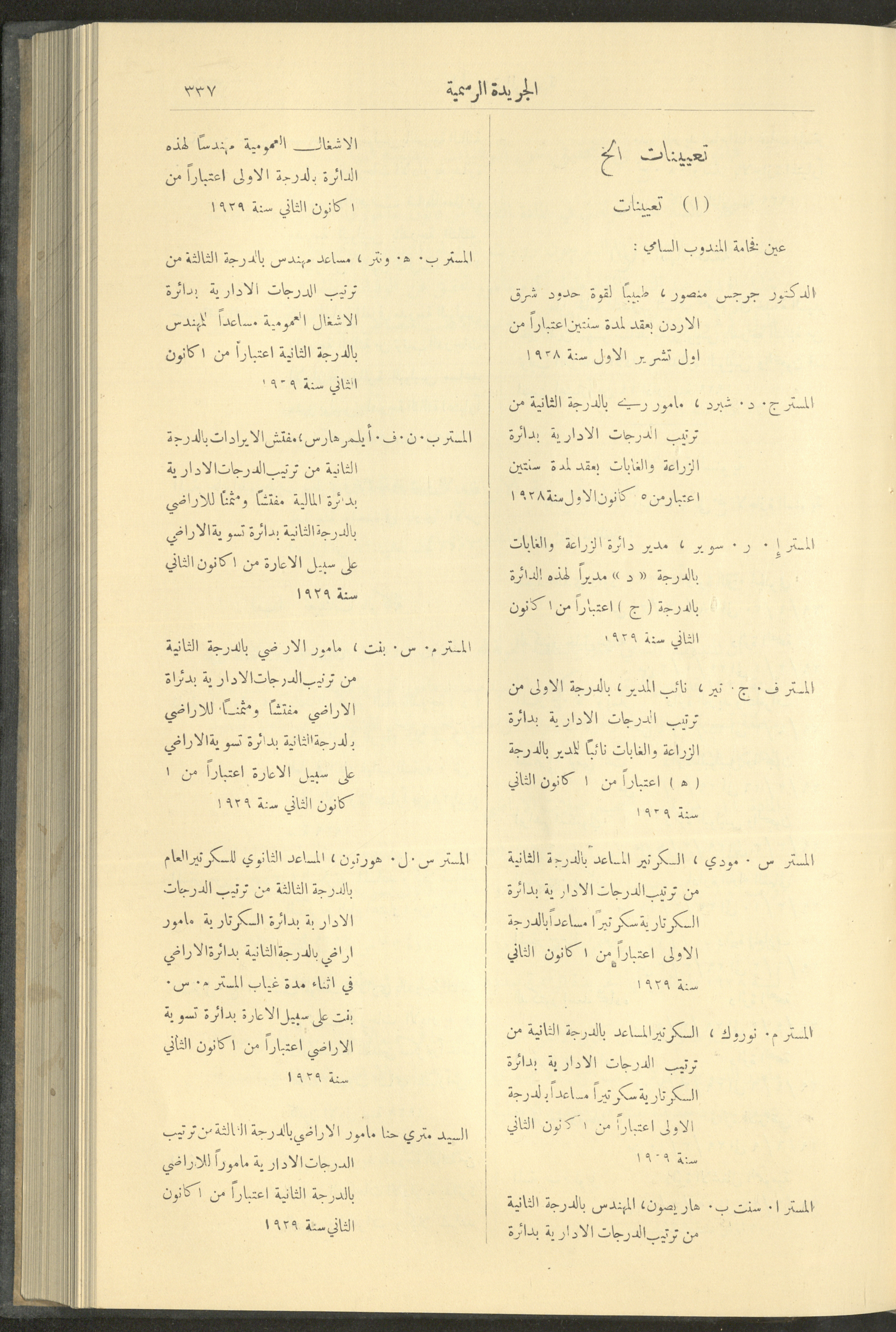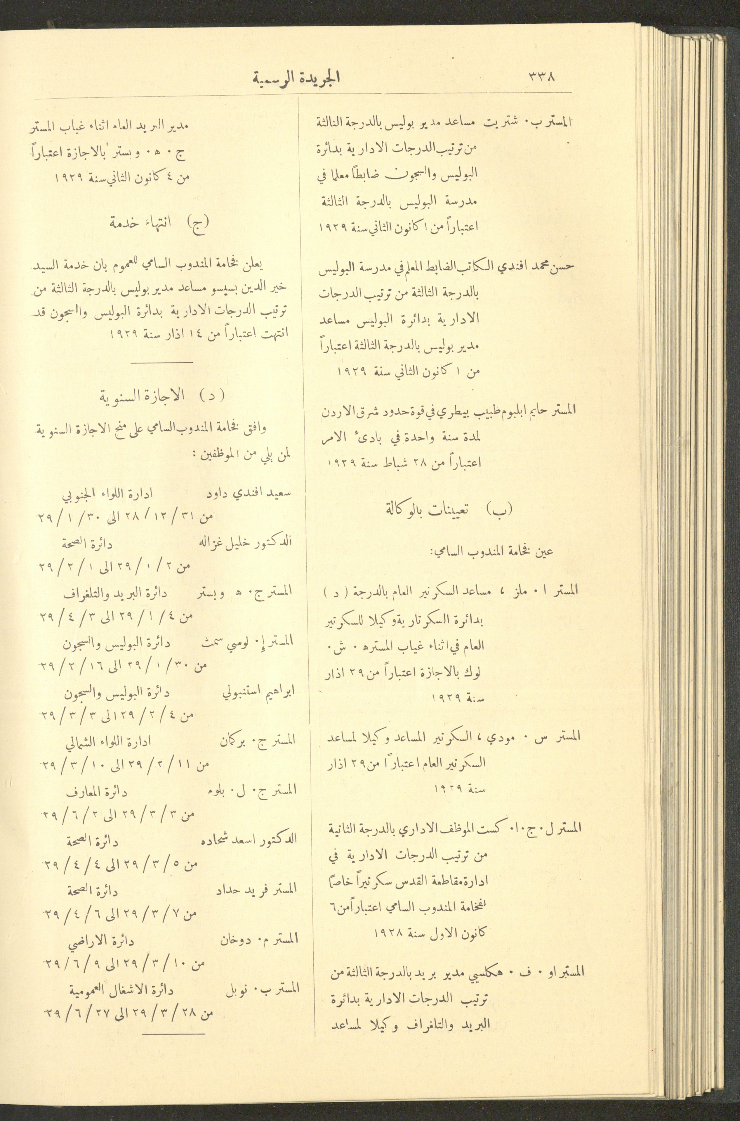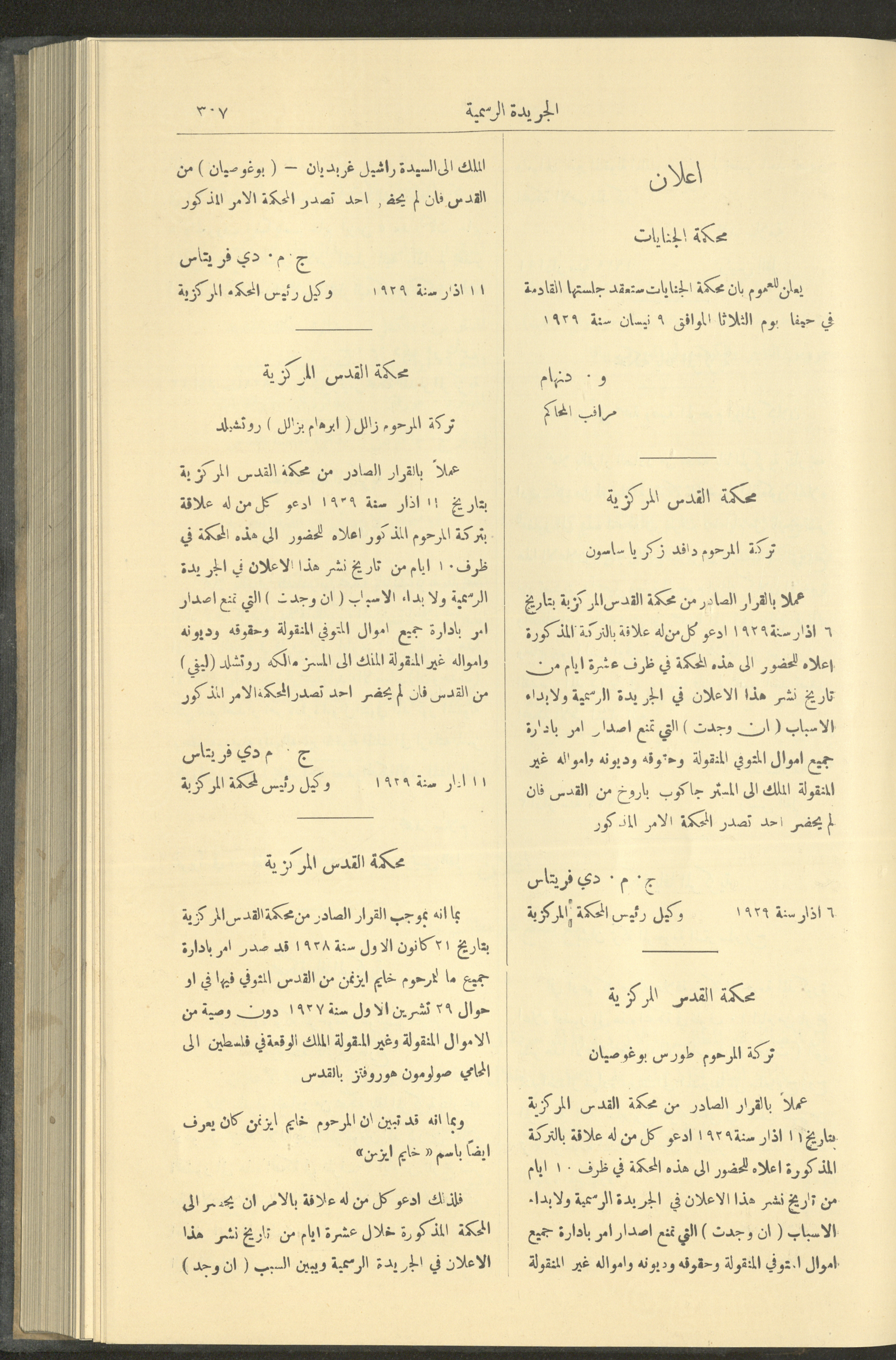 Issue No. 323 of the Official Palestine Newspaper, 1 April 1929