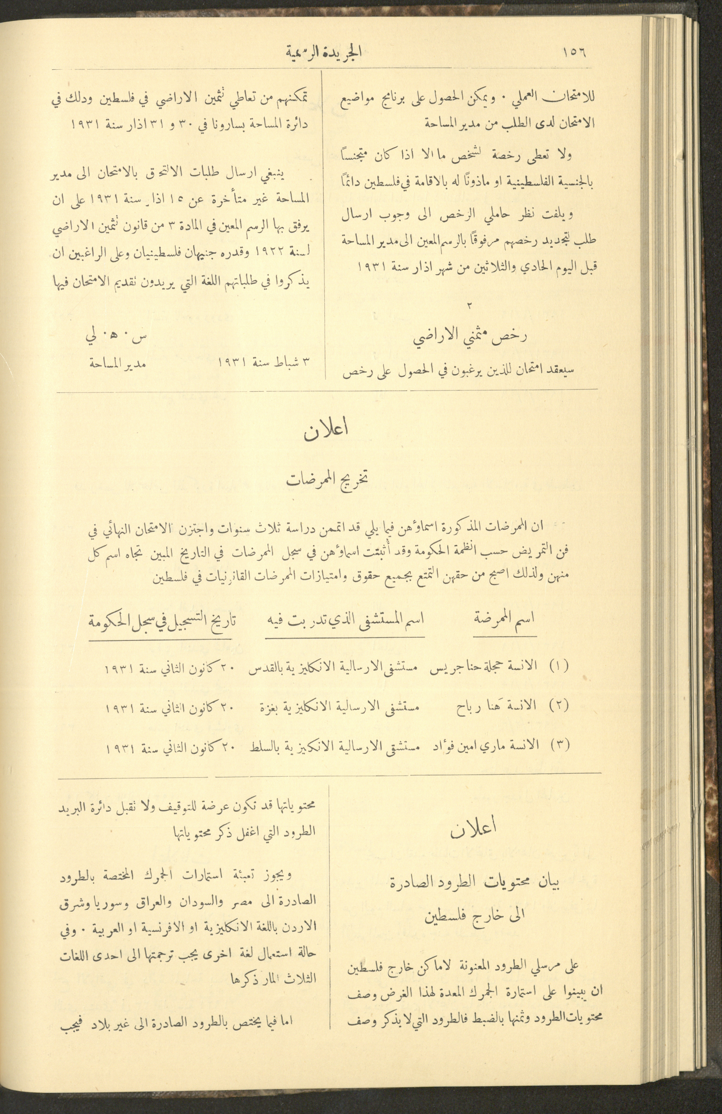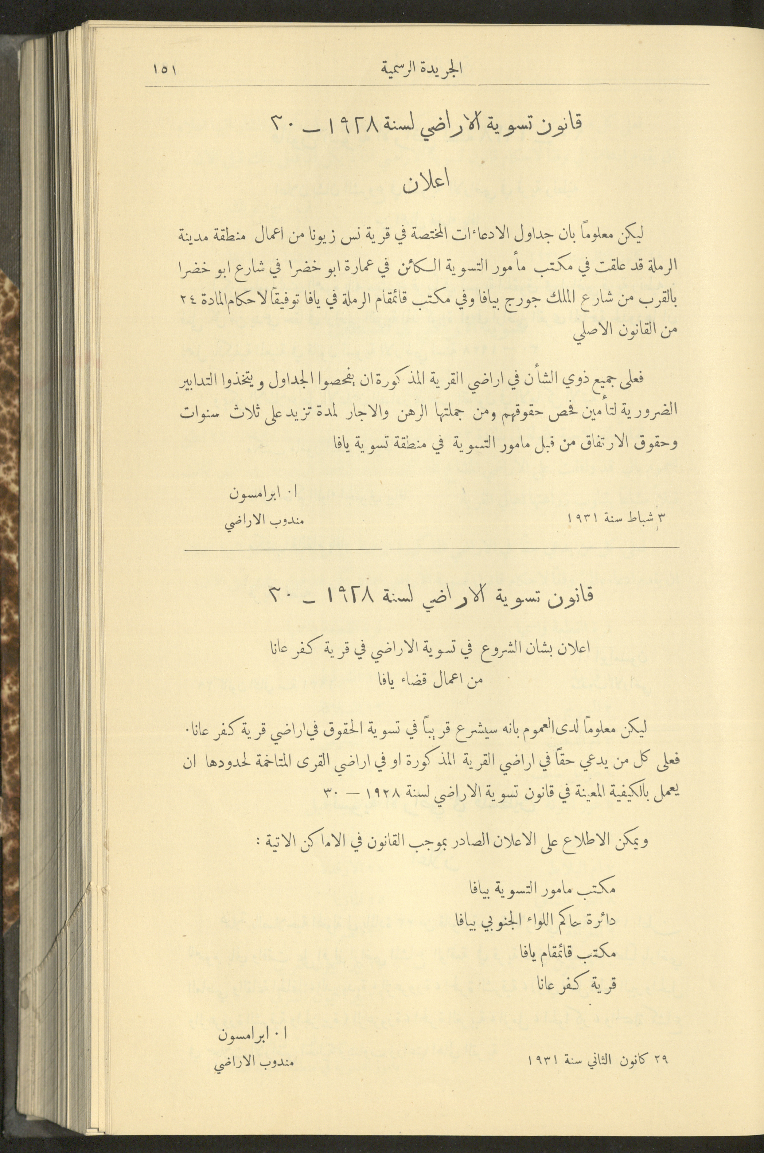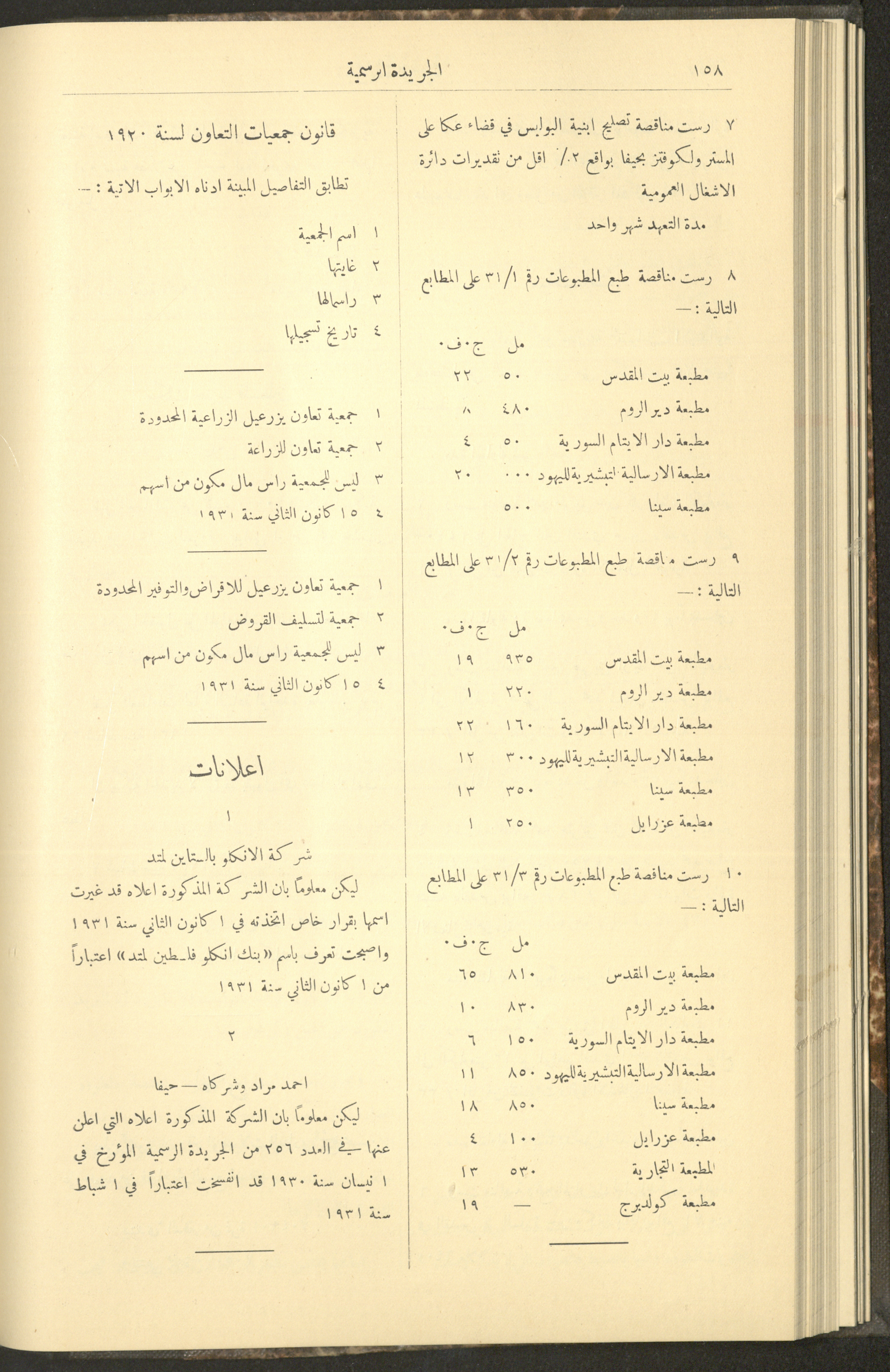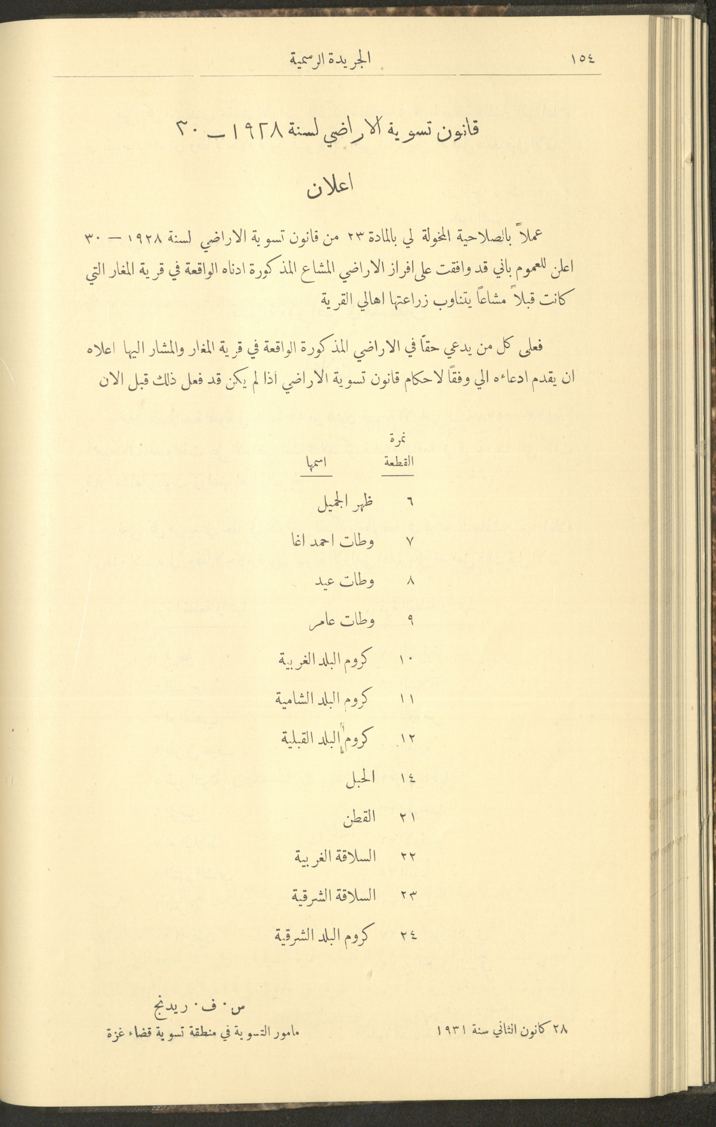 العدد 277 من جريدة حكومة فلسطين الرسمية، 16 شباط 1931