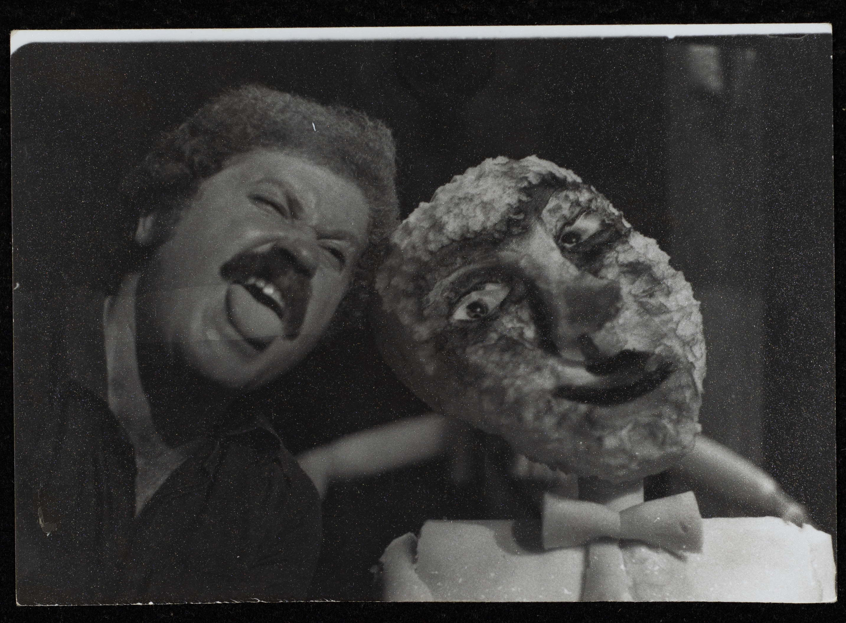 Undated, this photograph shows Adel Tartir during the rehearsals of the "Ras Roos (Head of Heads)" play, which is the first "monodrama" in the history of the Palestinian theatre movement, made by "The Wonder Box Theatre" and written, acted and directed by Adel Tartir in June 1980, while its name is derived from an Arabic curriculum by Khalil Sakakini. The play embodies realistic stories in a fictional world about nameless marginalized people in their communities, its first showing was on the playground of Sareyyat Ramallah in 1980 for three hours amidst a grand audience.