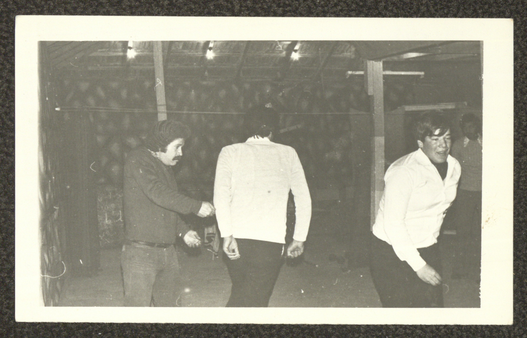 صورة غير مؤرخة التقطت من تدريبات مسرحية "تغريبة سعيد ابن فضل الله" في سرية رام الله الأولى، ويذكر أن هذه المسرحية هي ذات تأليف وإخراج جماعي من تنفيذ "فرقة صندوق العجب" في عام 1979.