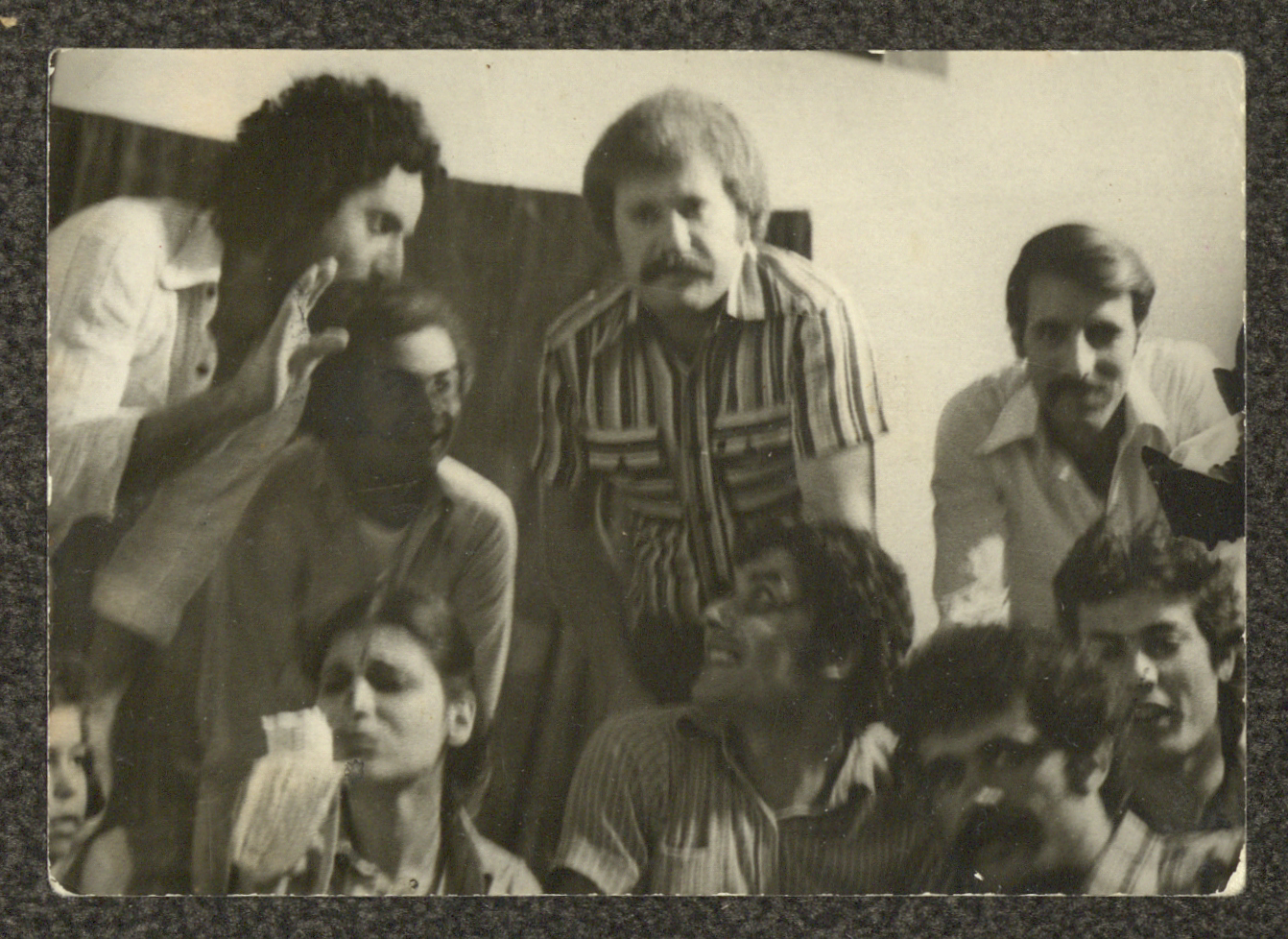 صورة التقطت لكواليس مسرحية "تغريبة سعيد ابن فضل الله" أي ما قبل العرض وأثناء التحضير له، ويظهر فيها على الترتيب؛ ومن اليمين في الصف الخلفي يقف "حسان زهران" الذي شارك في أحد عروض المسرحية ويليه "عادل الترتير" ثم "عواد نصار" ولا علاقة له بالمسرحية ويليه "خلف أمير طه" بينما في الصف الأمامي ومن اليسار تجلس "سونيا نمر" ويليها "أنيس البرغوثي" ويليه "عمر سمارة" وخلفه يقف "عبد المجيد إسحاق". ويذكر هذه المسرحية هي ذات تأليف وإخراج جماعي من تنفيذ "فرقة صندوق العجب" في عام 1979.
