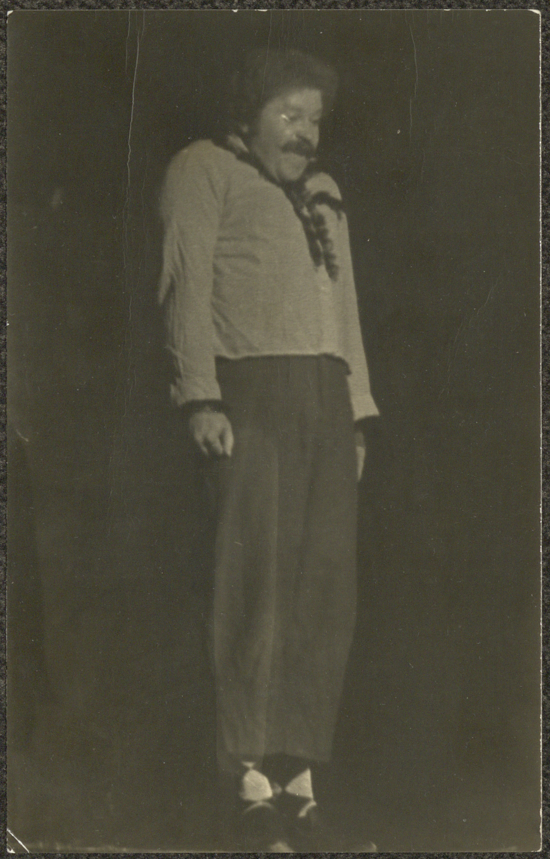 Undated, this photograph shows Adel Tartir playing "Saeed" from the play "Taghreebet Saeed ibn Fadlallah (The Exile of Saeed ibn Fadlallah)" at Sareyyat Ramallah, which was collectively written and directed by the "the Wonder Box" troupe in 1979.