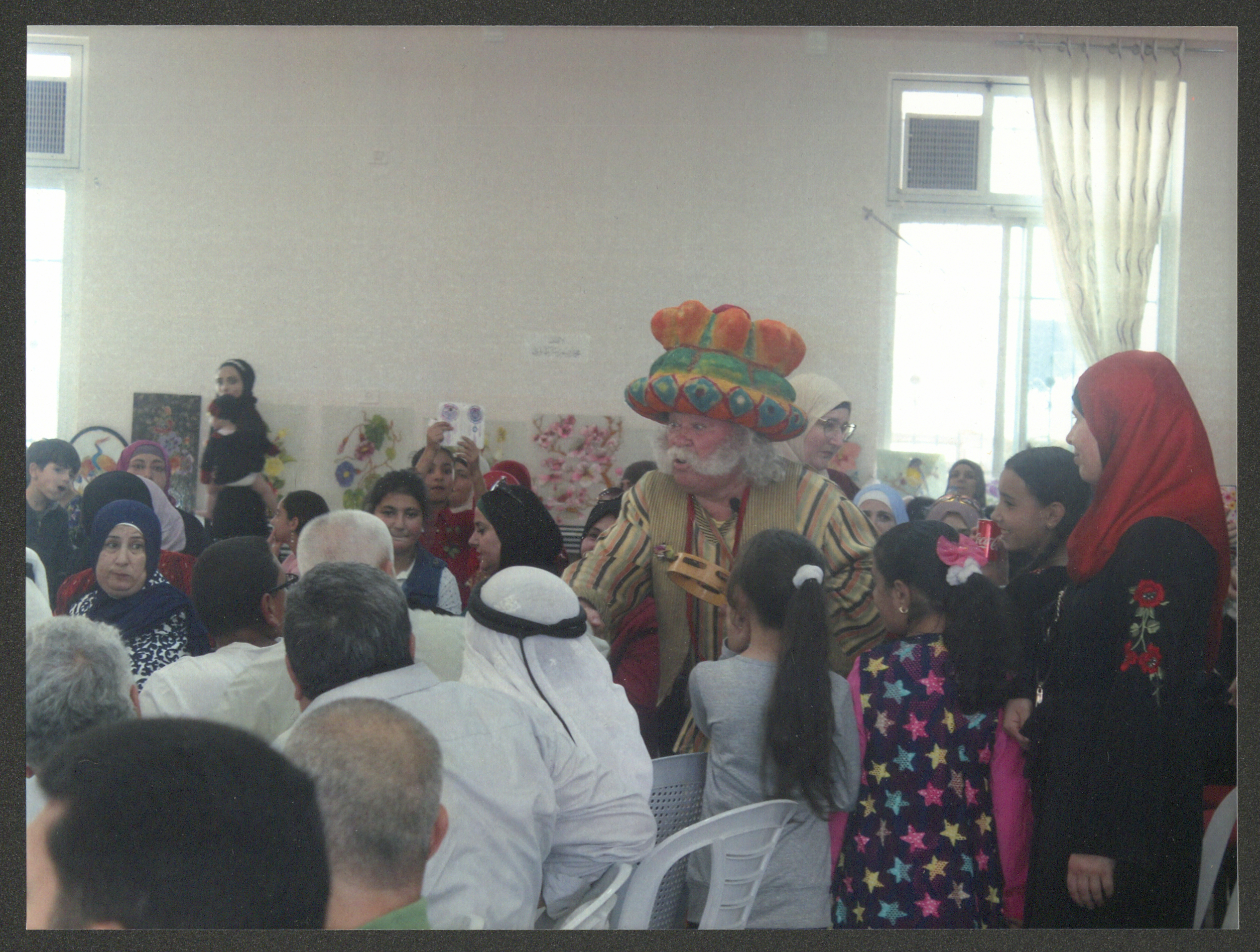 صورة لعادل الترتير المعروف بشخصية "أبو العجب" أثناء تقديم أحد عروض "حكايات أبو العجب" في قرية ترمسعيا قضاء مدينة رام الله؛ وذلك على هامش المشاركة في فعاليات مهرجان "حكي القرايا" في 13 تشرين الأول 2018.