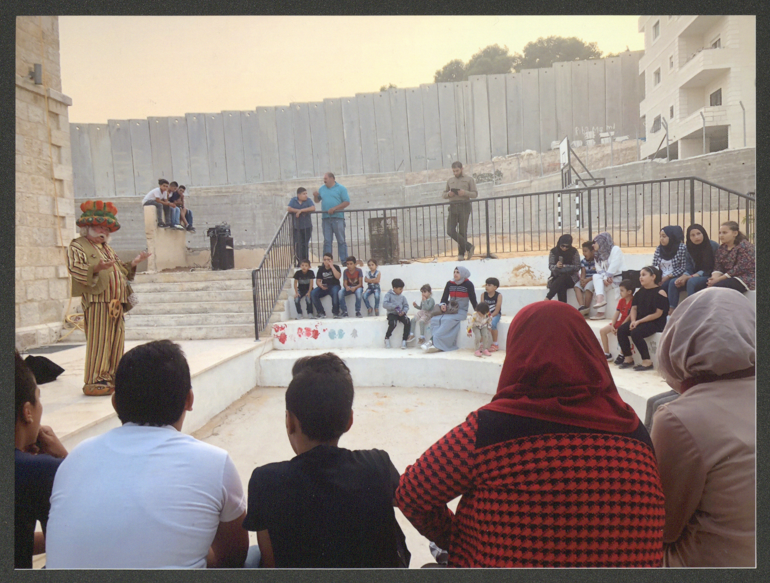 صورة التقطت لعادل الترتير المعروف بشخصية "أبو العجب" أثناء تقديمه عرضاً من "حكايات أبو العجب" في حديقة البيارة في مدينة العيزرية الواقعة إلى الشرق من مدينة القدس بتاريخ 13 أيلول 2018، وكان هذا العرض موجهاً إلى كافة أفراد الأسرة.
