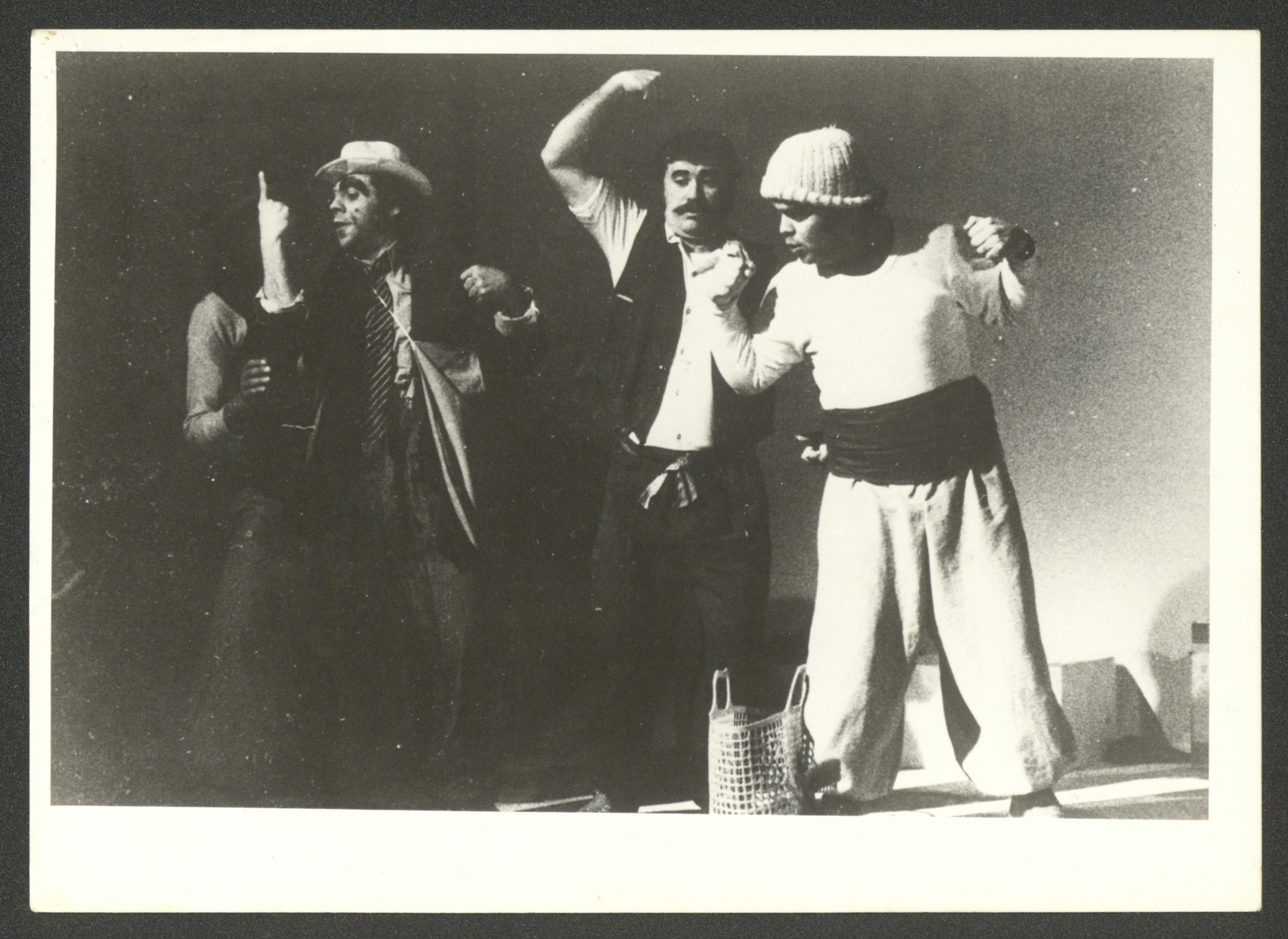 صورة التقطت لأحد المشاهد العامة من مسرحية "لمّا انجنينا" وهي من إنتاج "مسرح صندوق العجب" في عام 1976، وعرضت في قاعة المدرسة العمرية في القدس؛ وذلك في الفترة ما بين 22-25 كانون الثاني 1976.