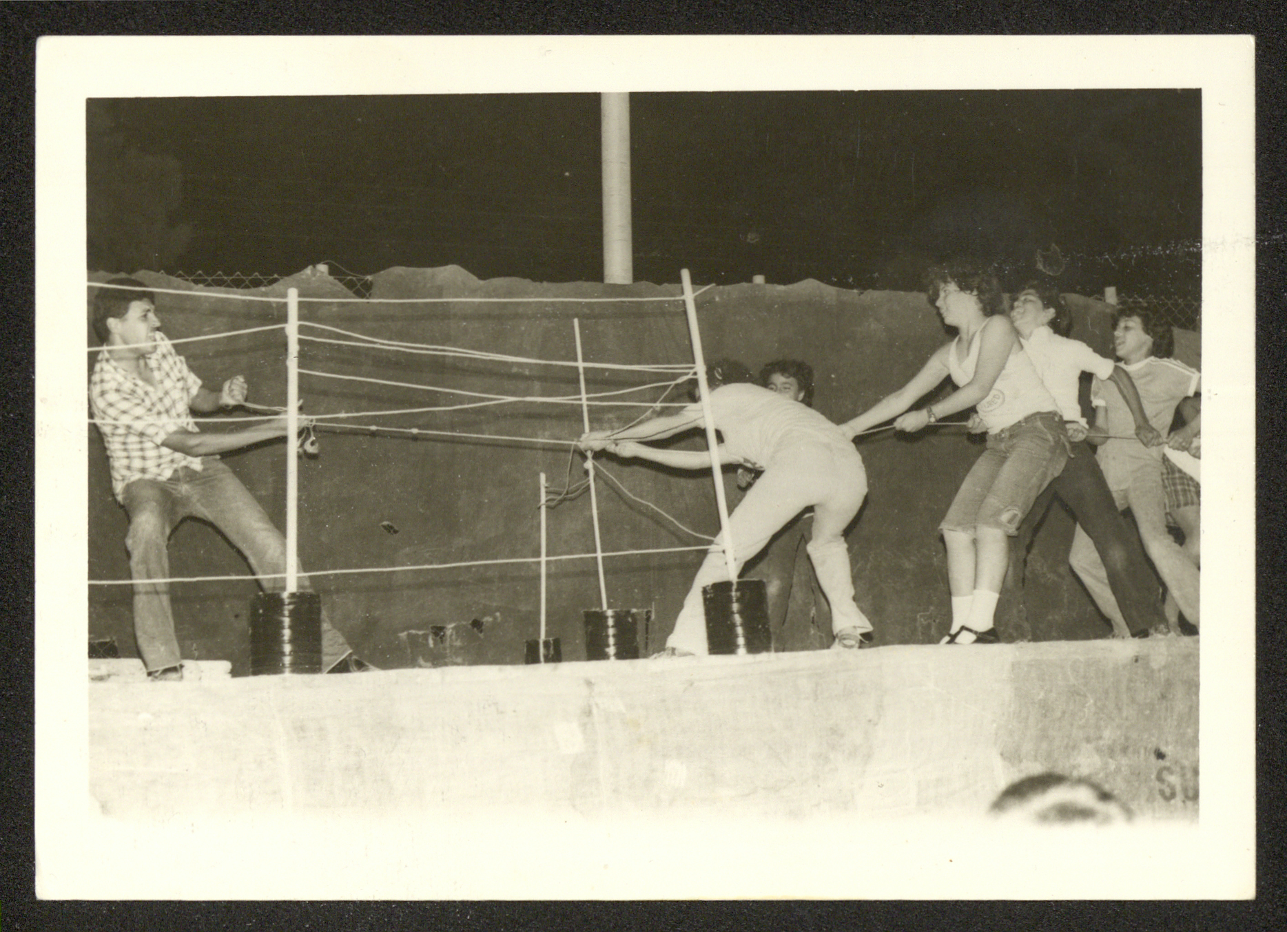 مشهد من مسرحية "من يُعلِق الجرس"، رام الله، 1980-1981
