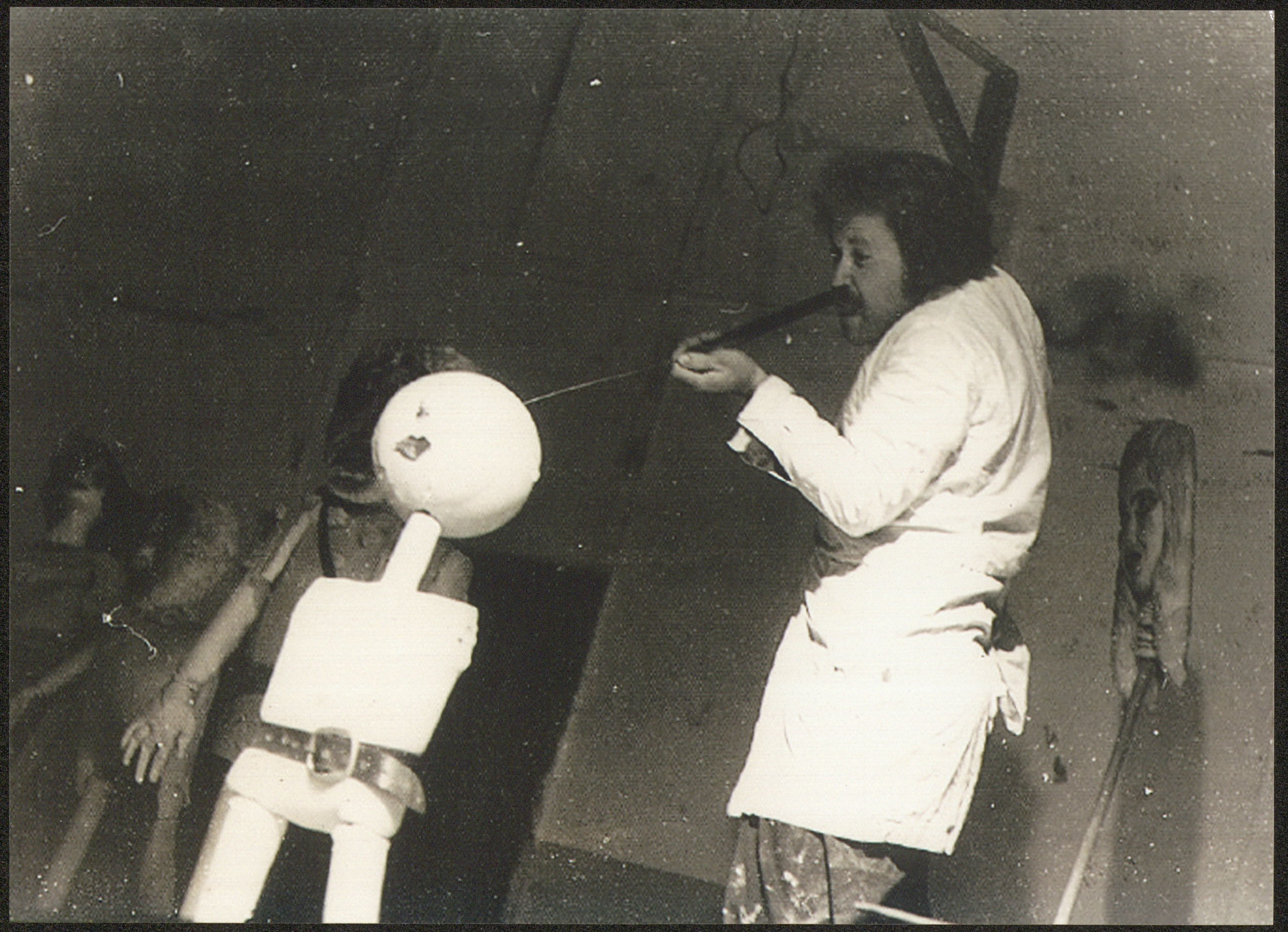 صورة التقطت لعادل الترتير أثناء تأدية أحد المشاهد الخاصة بمسرحية "راس روس" برفقة دُمية "الطِفل" وهو أحد شخصيات هذا العمل، وهذه المسرحية تعتبرُ أول "مونودراما" في تاريخ الحركة المسرحية الفلسطينية من إعداد "مسرح صندوق العجب" وتأليف وتمثيل وإخراج عادل الترتير في حزيران من العام 1980