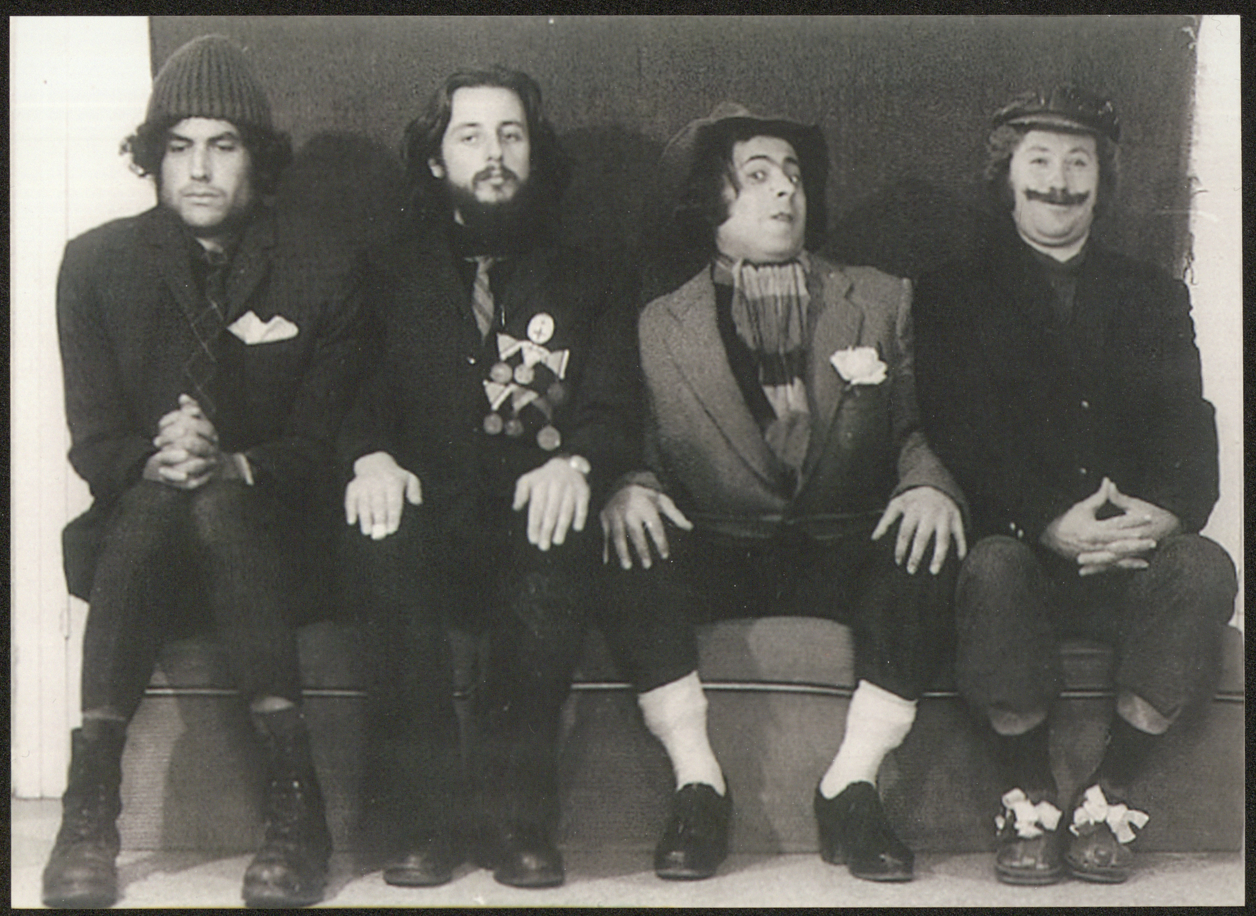 صورة التقطت لطاقم مسرحية "لمّا انجنينا" ويظهر فيها على الترتيب؛ ومن اليمين "عادل الترتير" ويليه "مصطفى الكرد" ويليه "فرانسوا أبو سالم" وأخيراً "أنيس البرغوثي"، وتجدر الإشارة إلى أن هذه الصورة واحدة من بين عدة أخذت لأغراض الإعلان عن المسرحية التي أنتجها "مسرح صندوق العجب" وعرضت في قاعة المدرسة العمرية في القدس؛ في الفترة ما بين (22-25) كانون الثاني 1976.