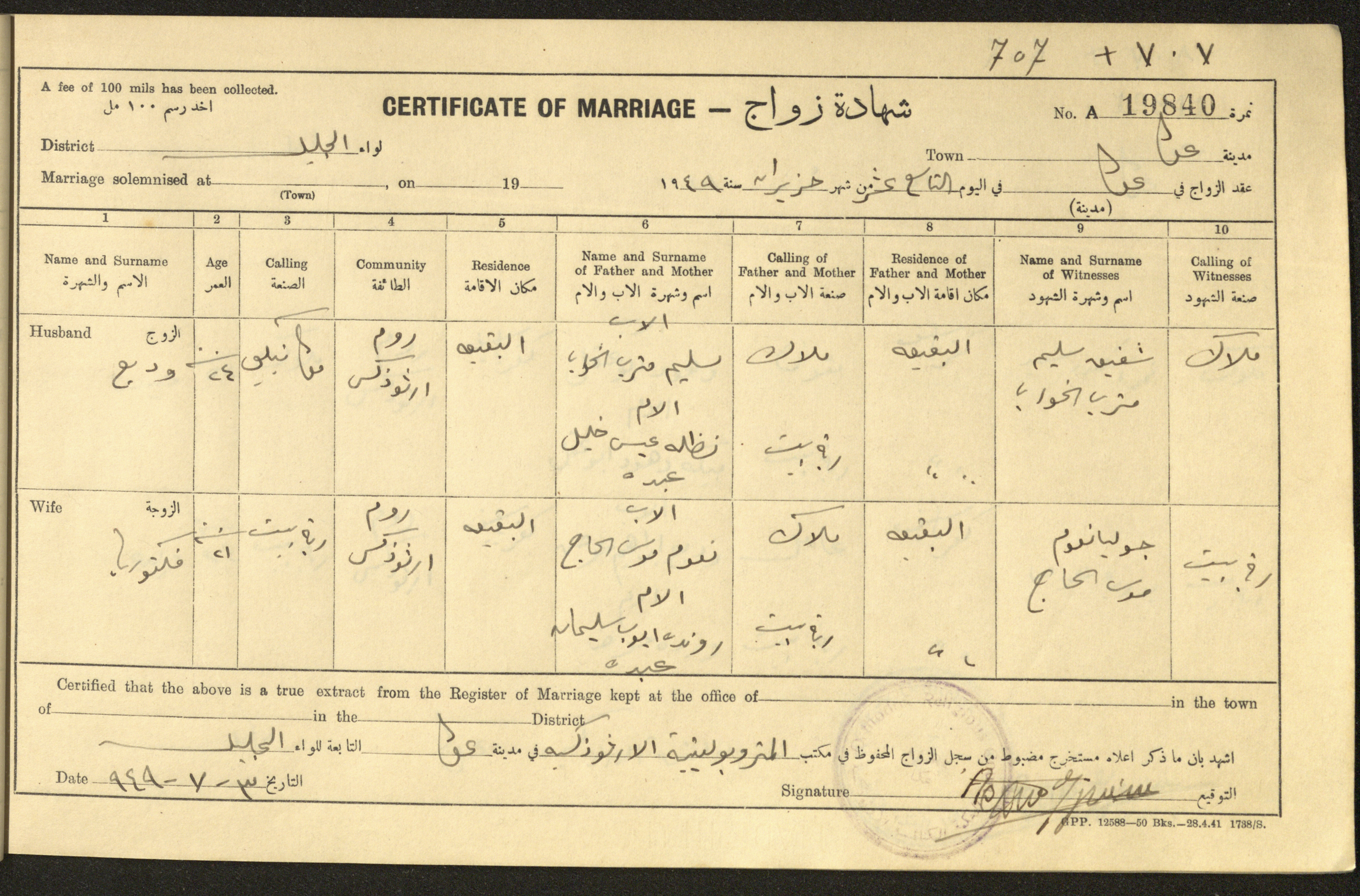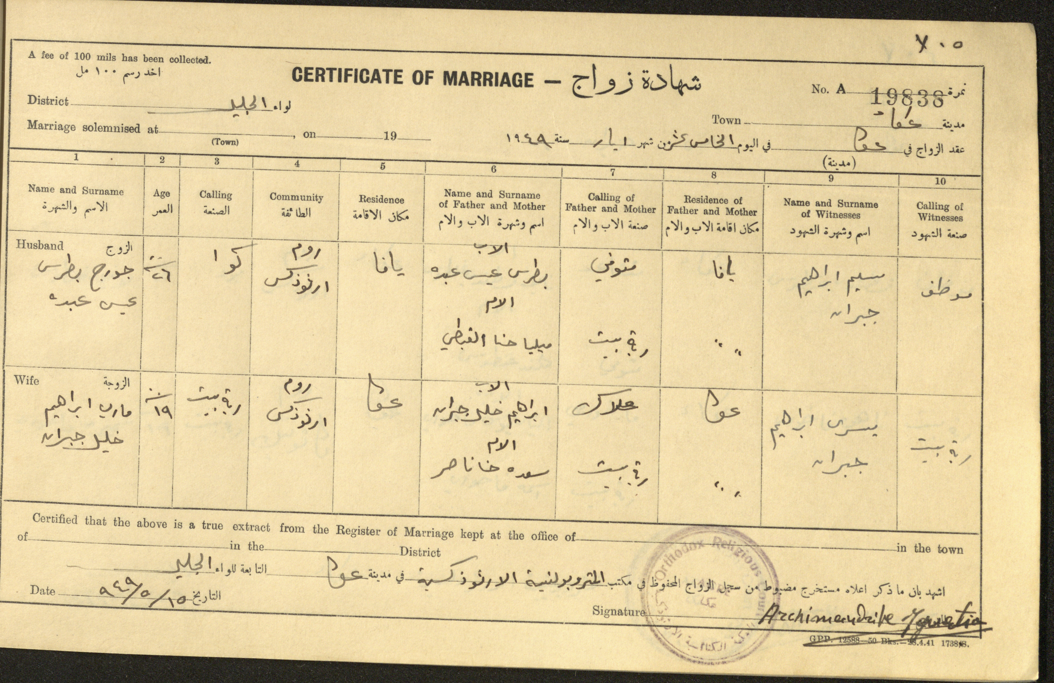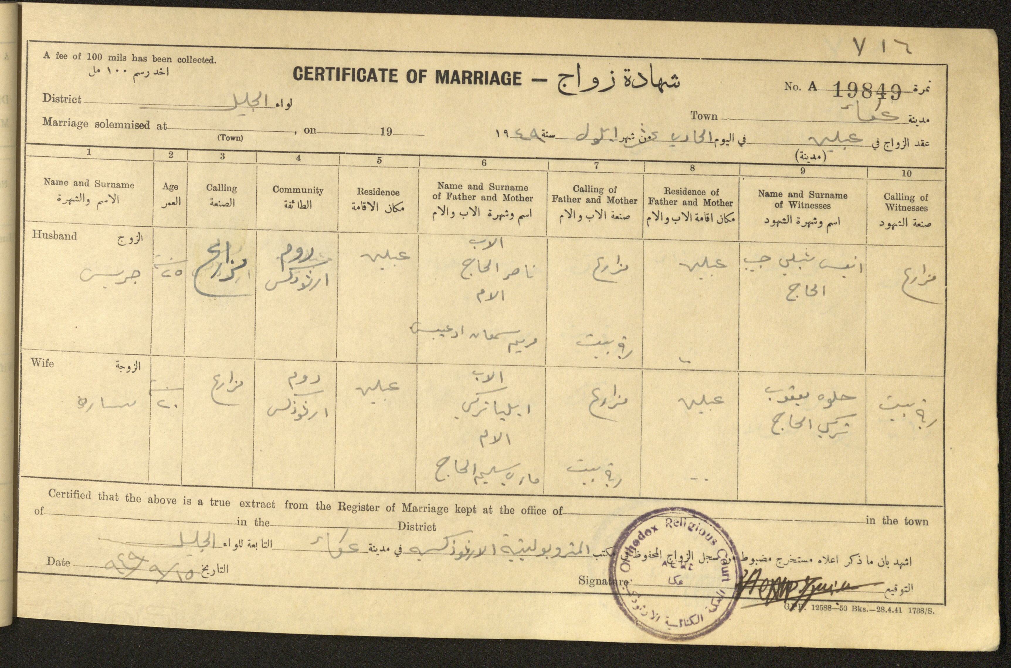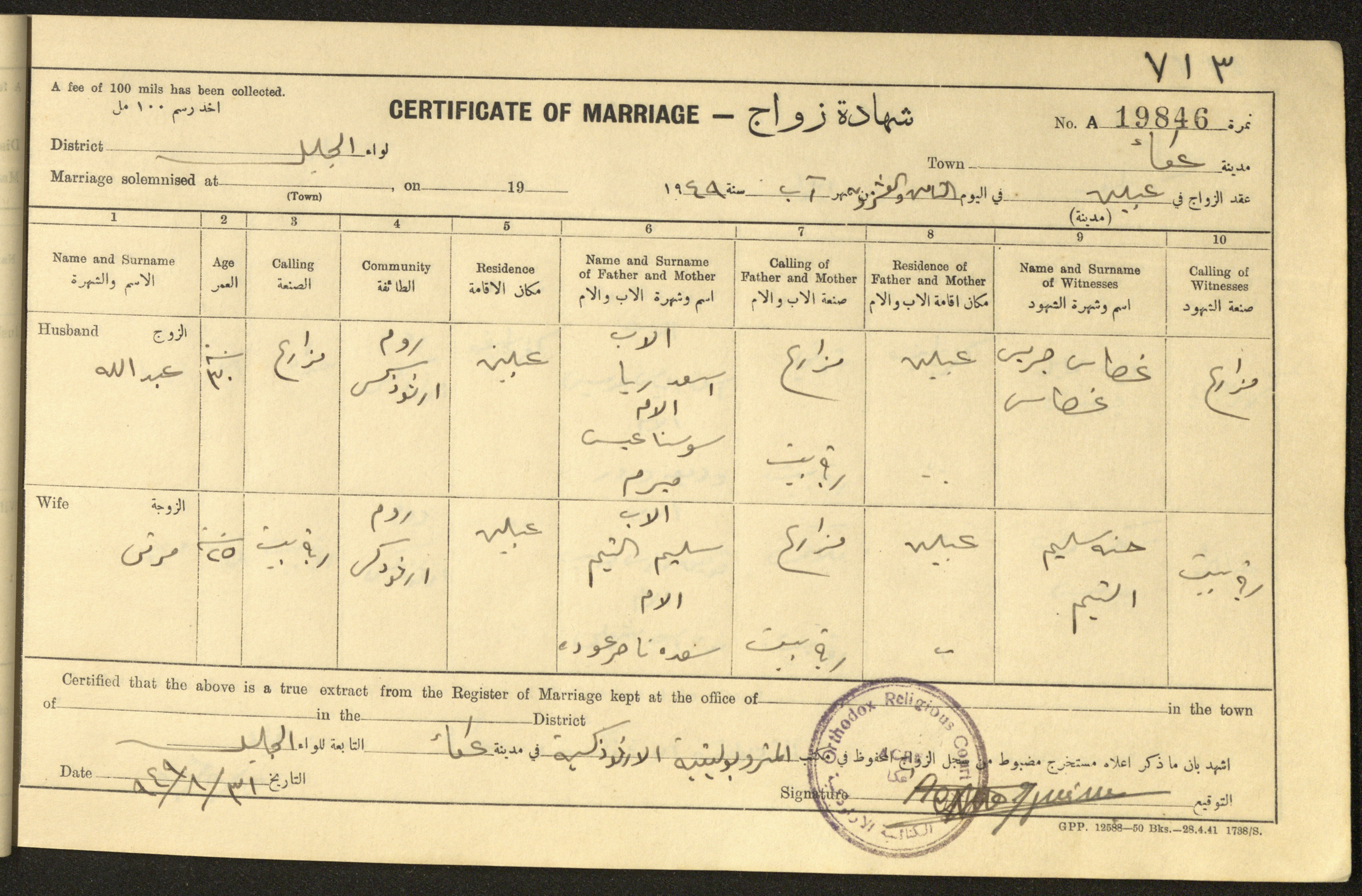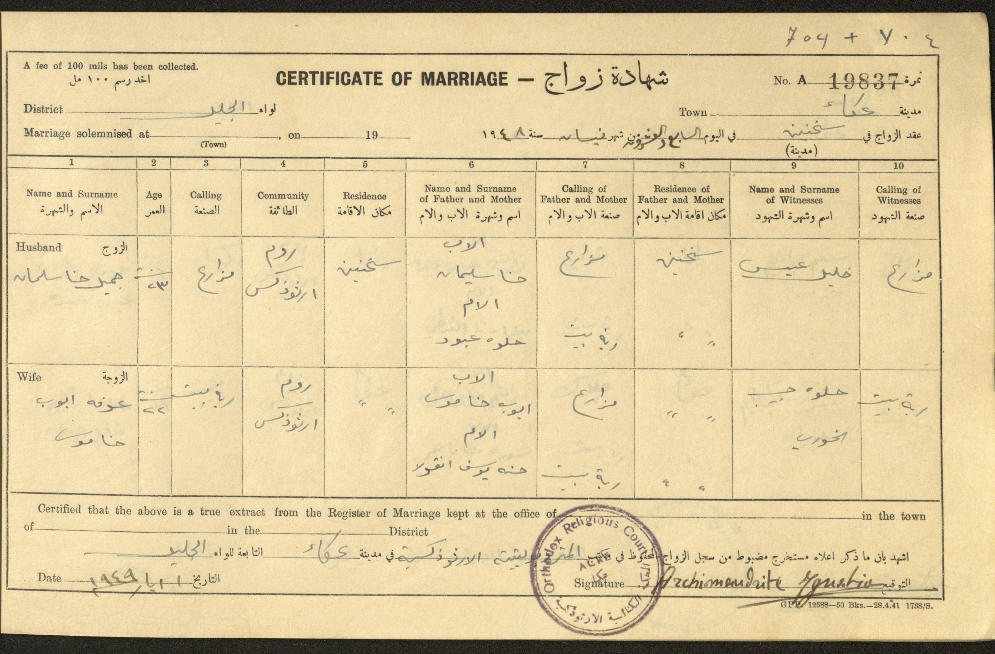 "شهادات زواج"، حيفا، 1948