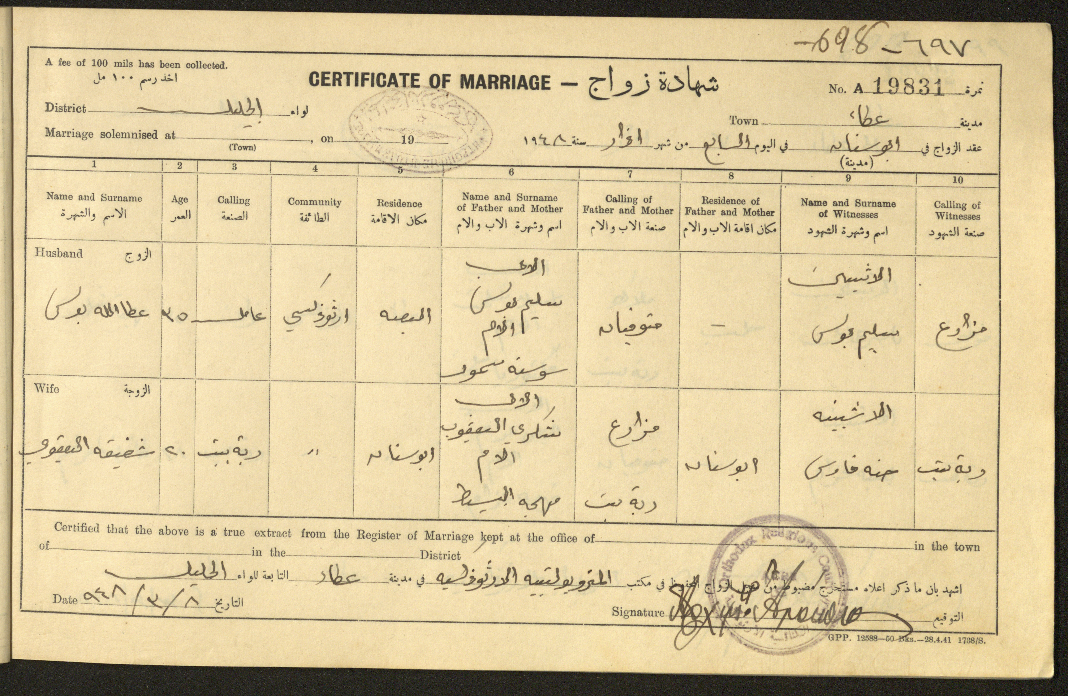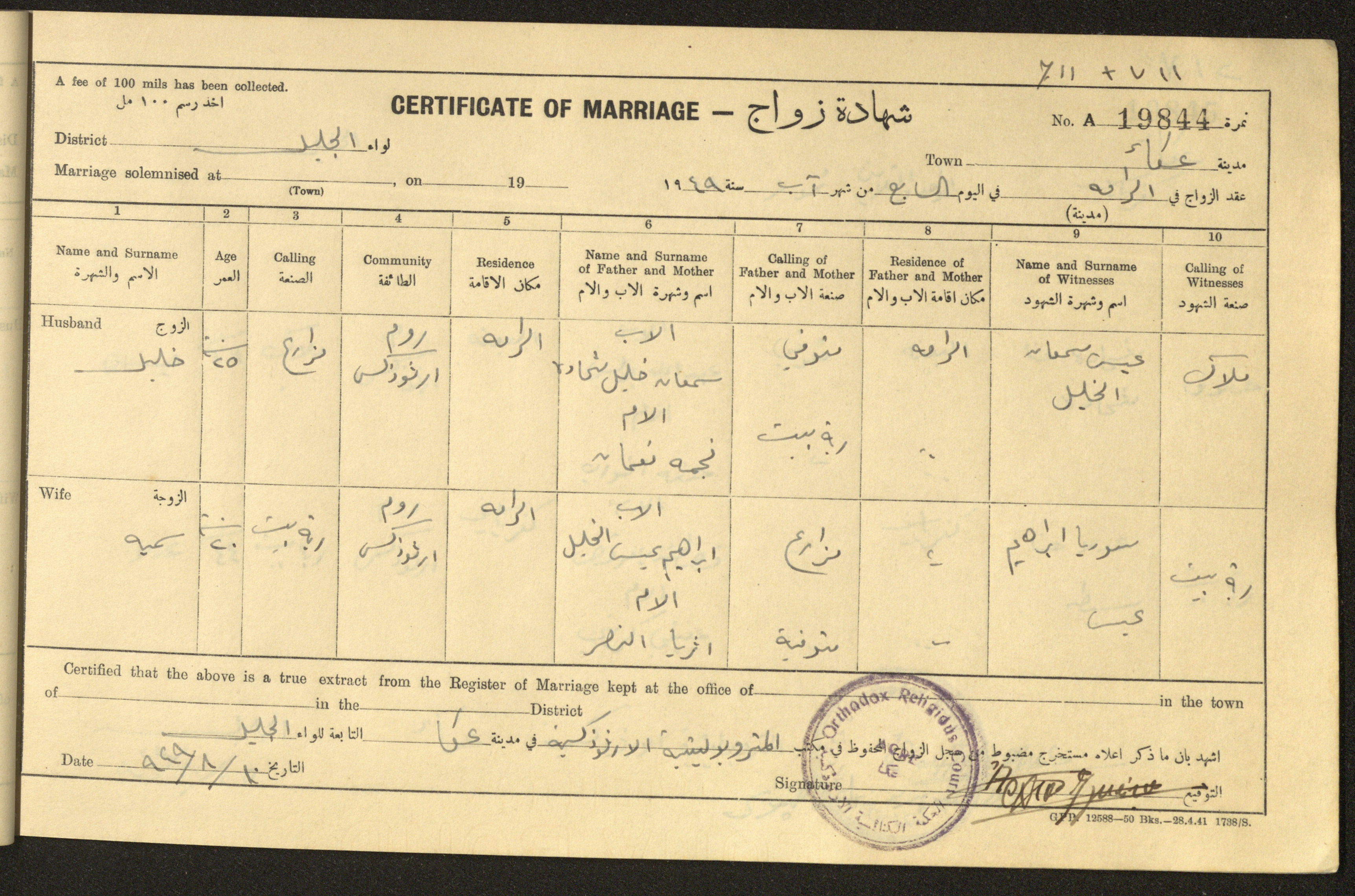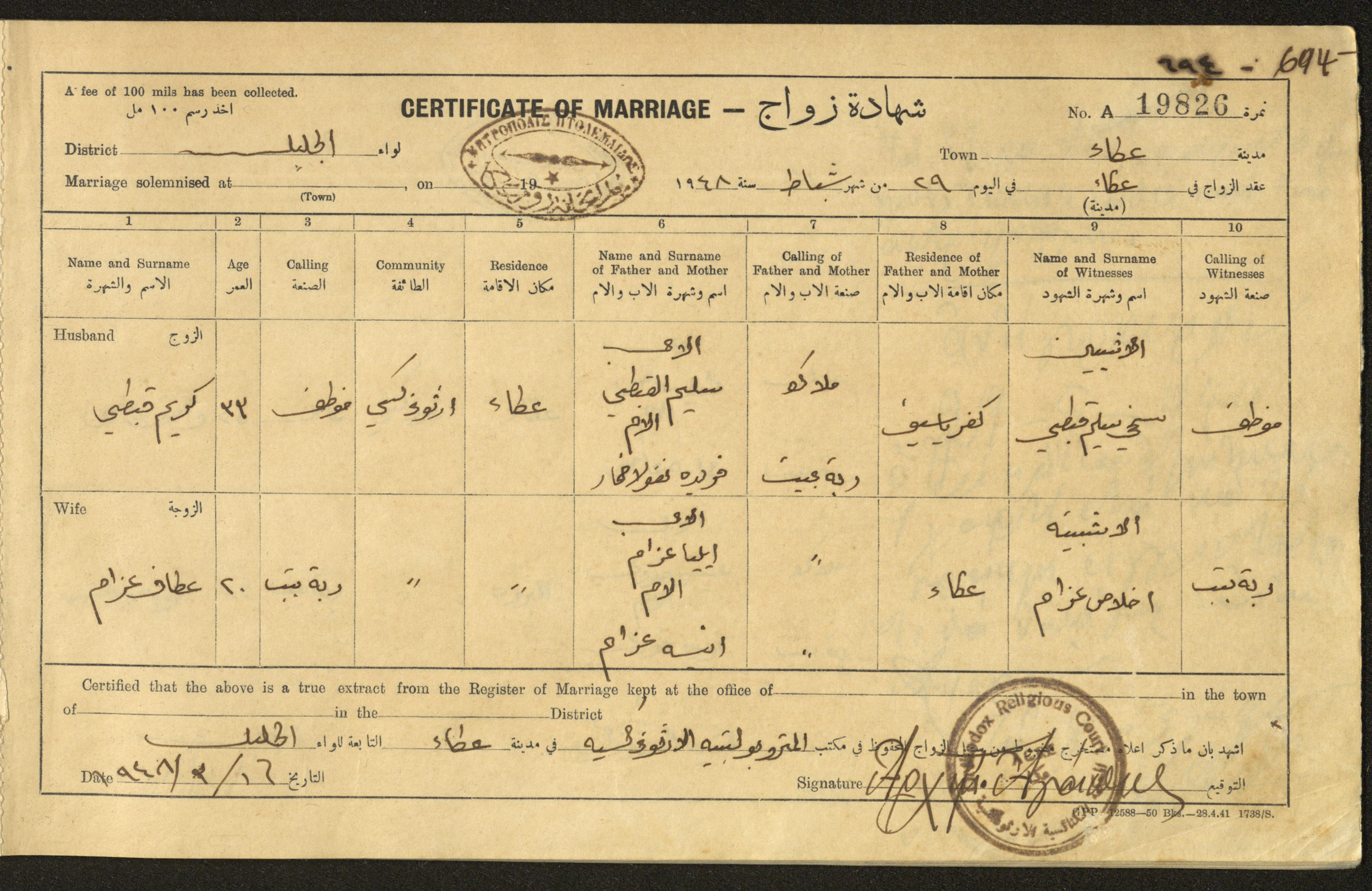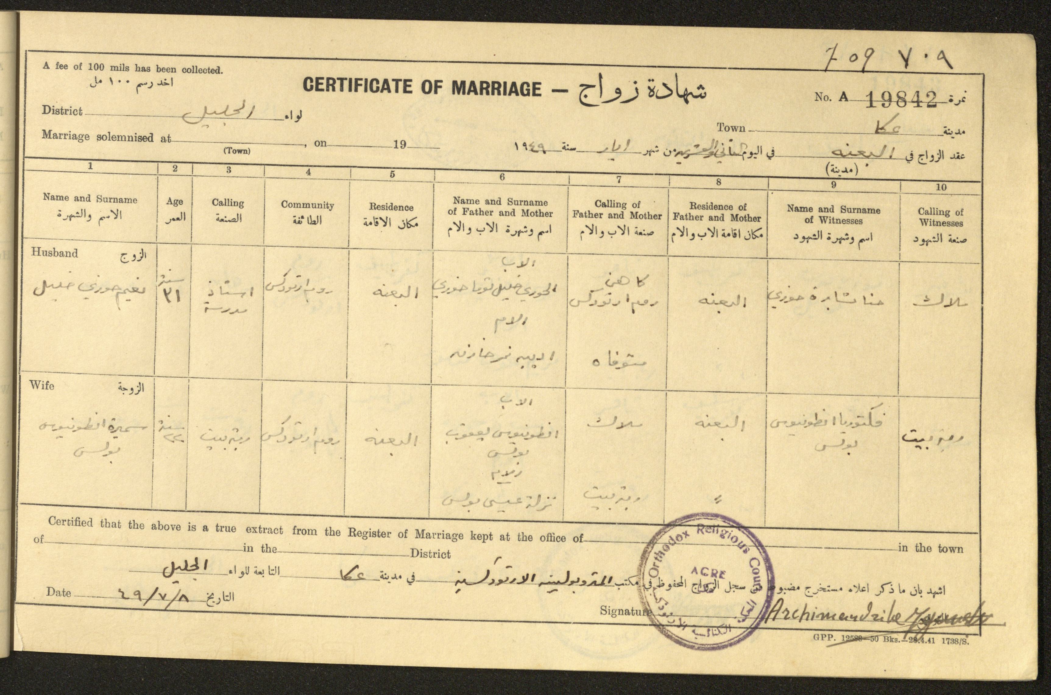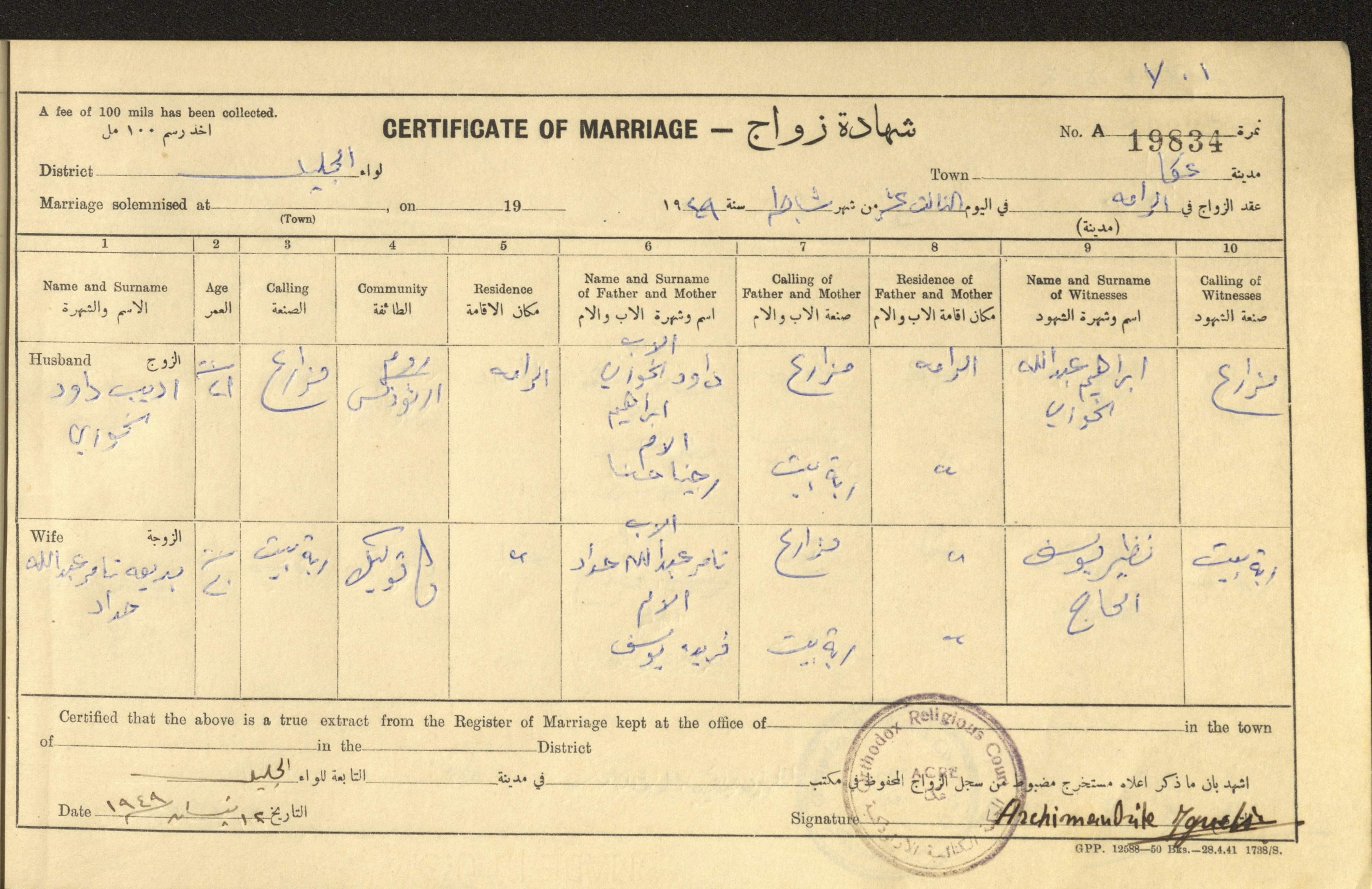 "شهادات زواج"، حيفا، 1948