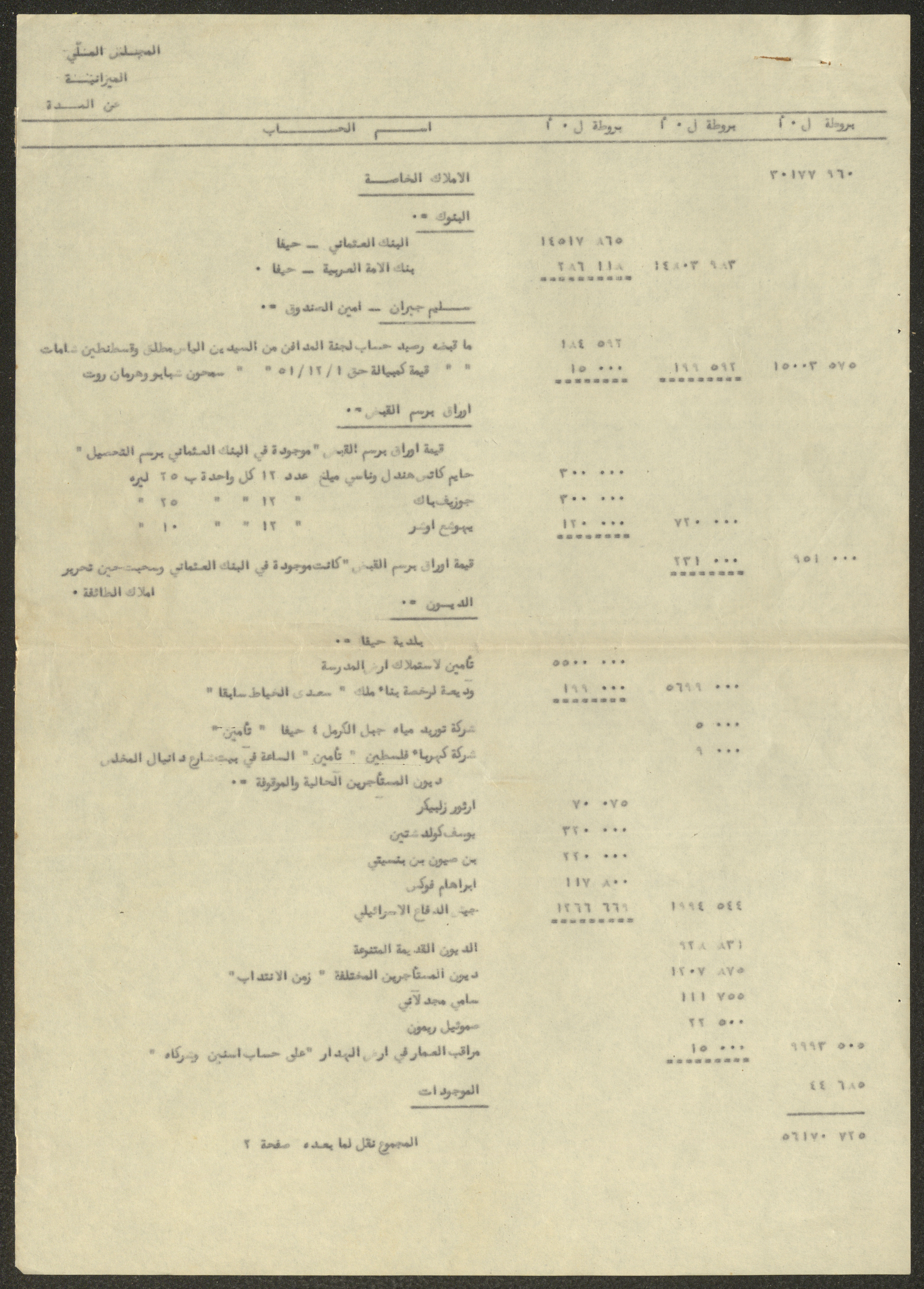 Issued between 1951 and 1952, this document shows the estimated budget of the National Orthodox Communal Council in Haifa for the period from 1 April 1951 to 31 March 1952.
