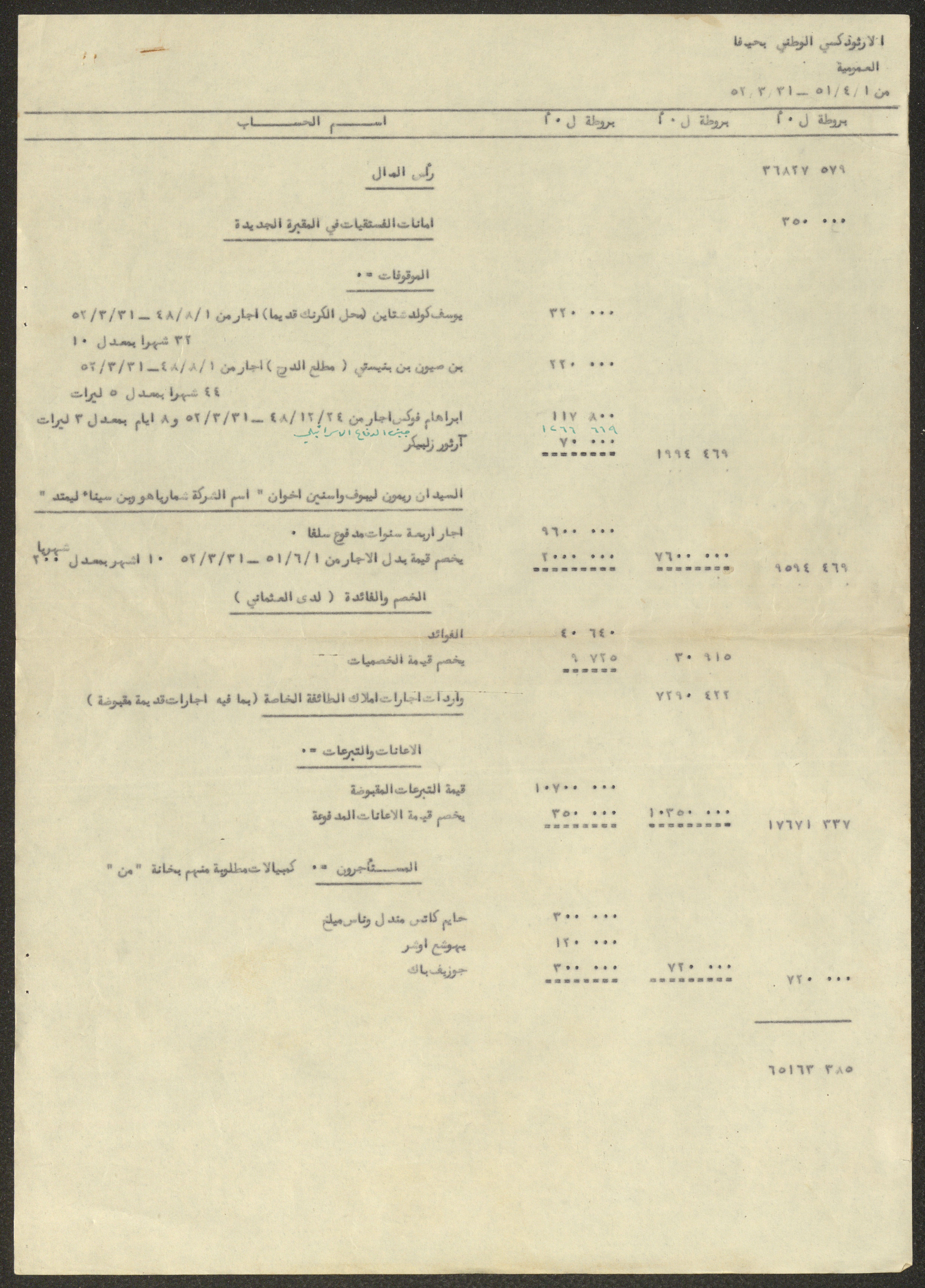 The Orthodox Communal Council's Budget, Haifa, 1951- 1952