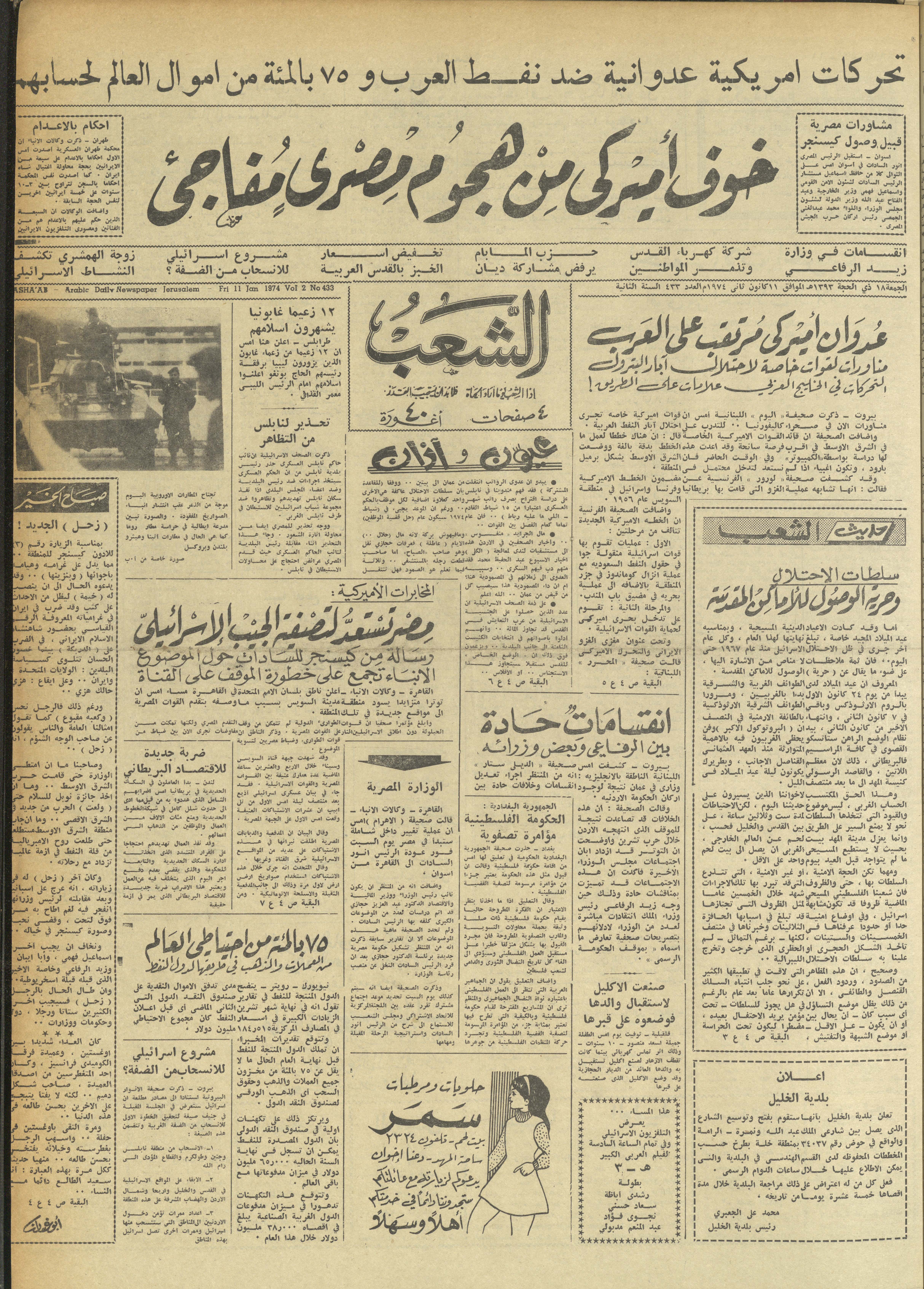 Issue 433 of Asha'b Newspaper, 11 January 1974