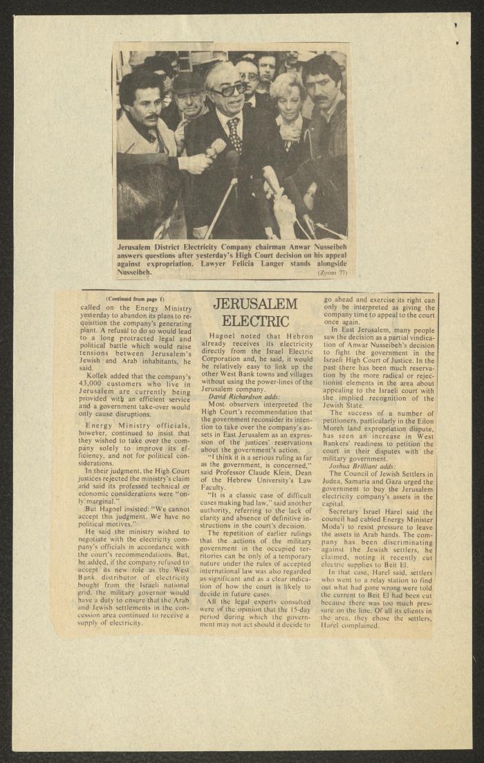"Way Now Open to Takeover of Arab Power Co.", a Clipping from the Jerusalem Post, 1981