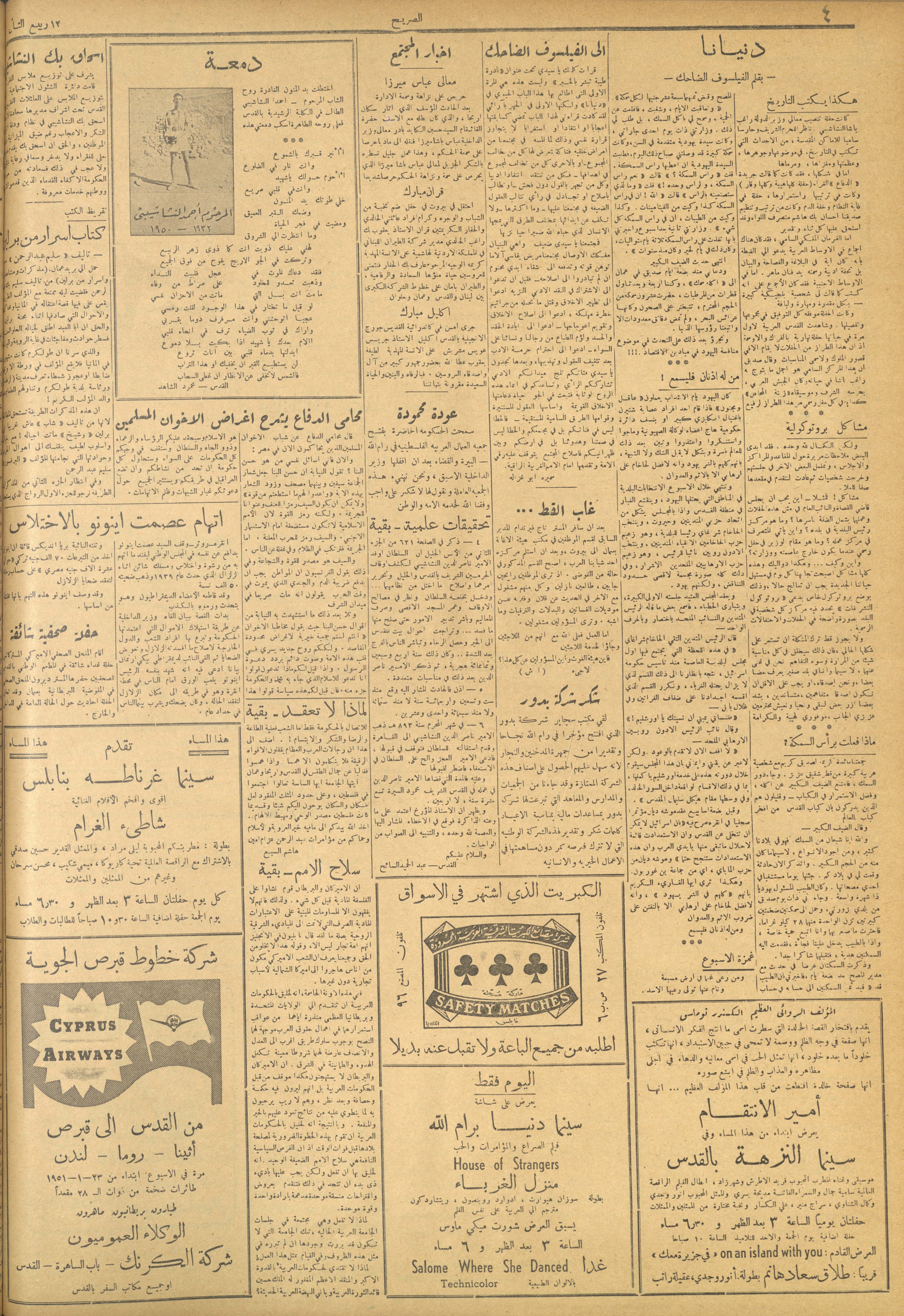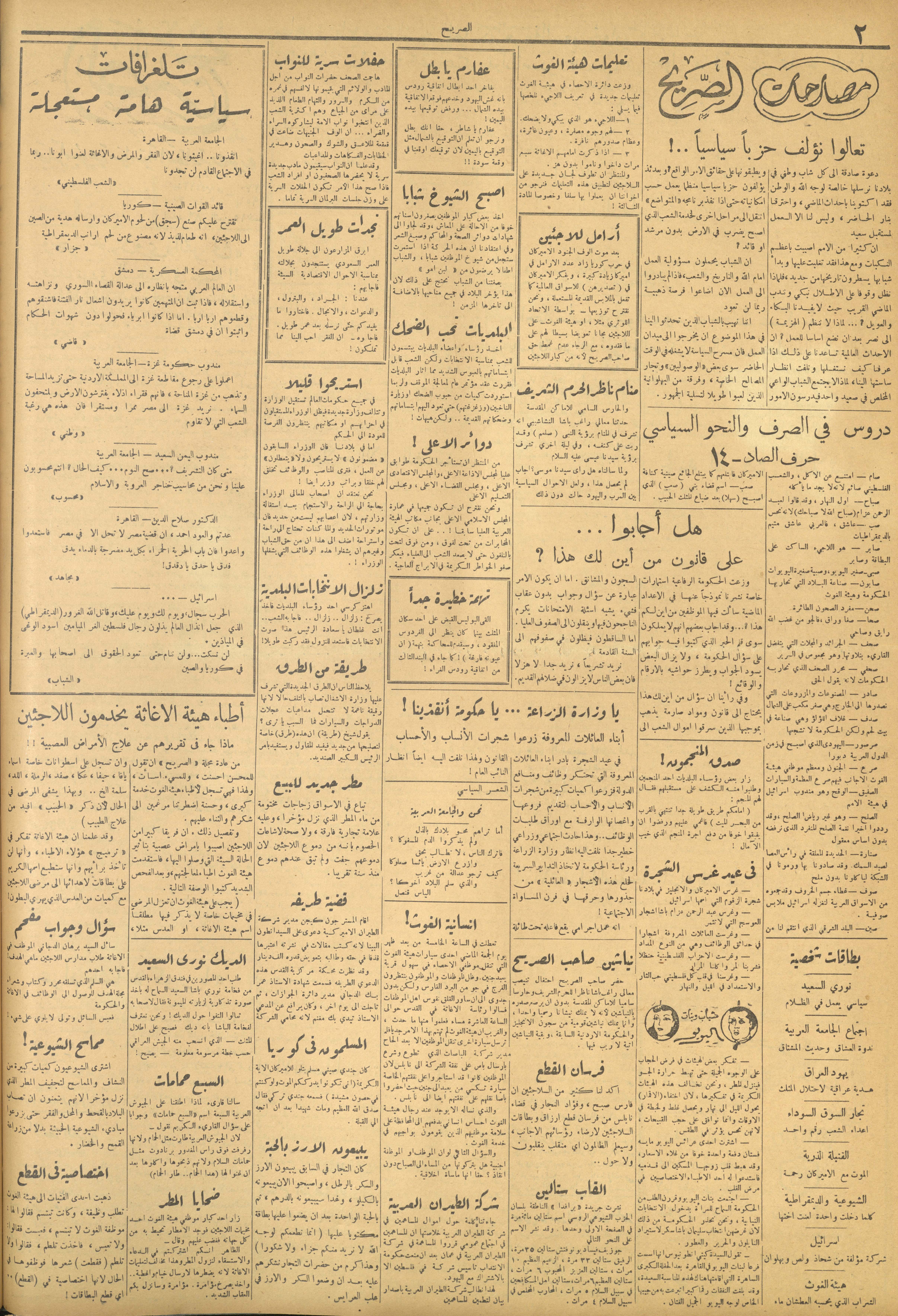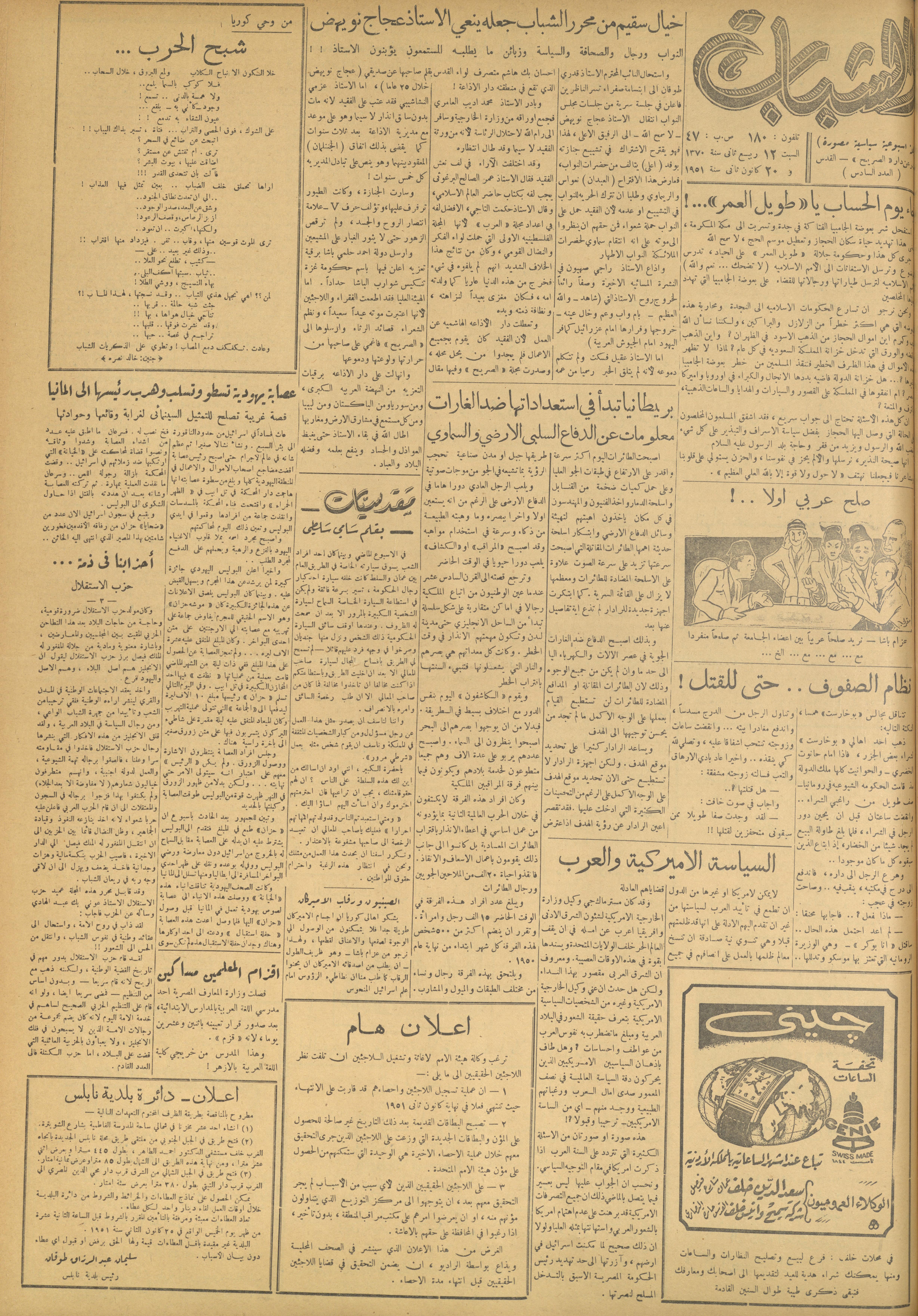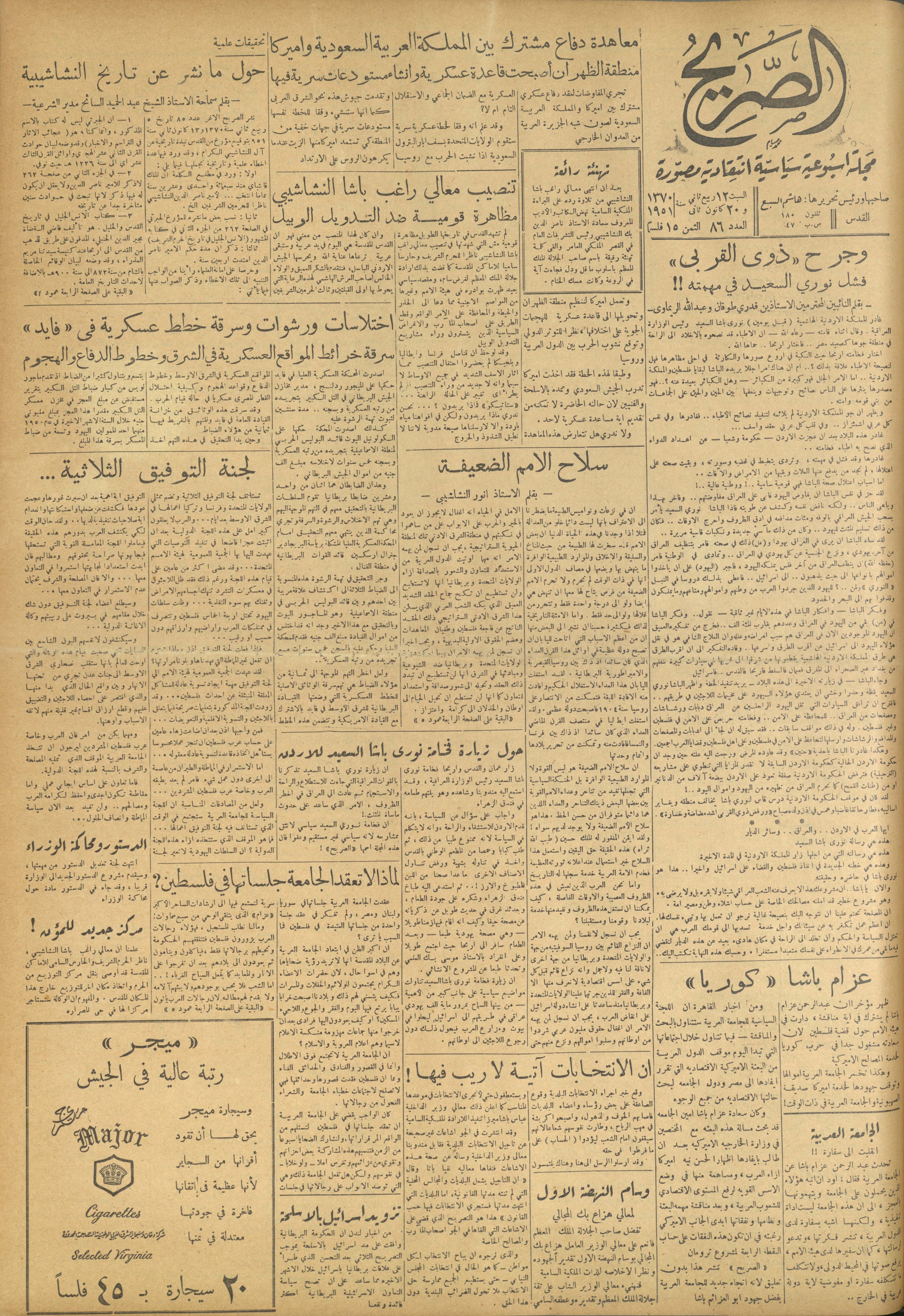 مجلة الصريح، العدد 86، 20 كانون الثاني 1951