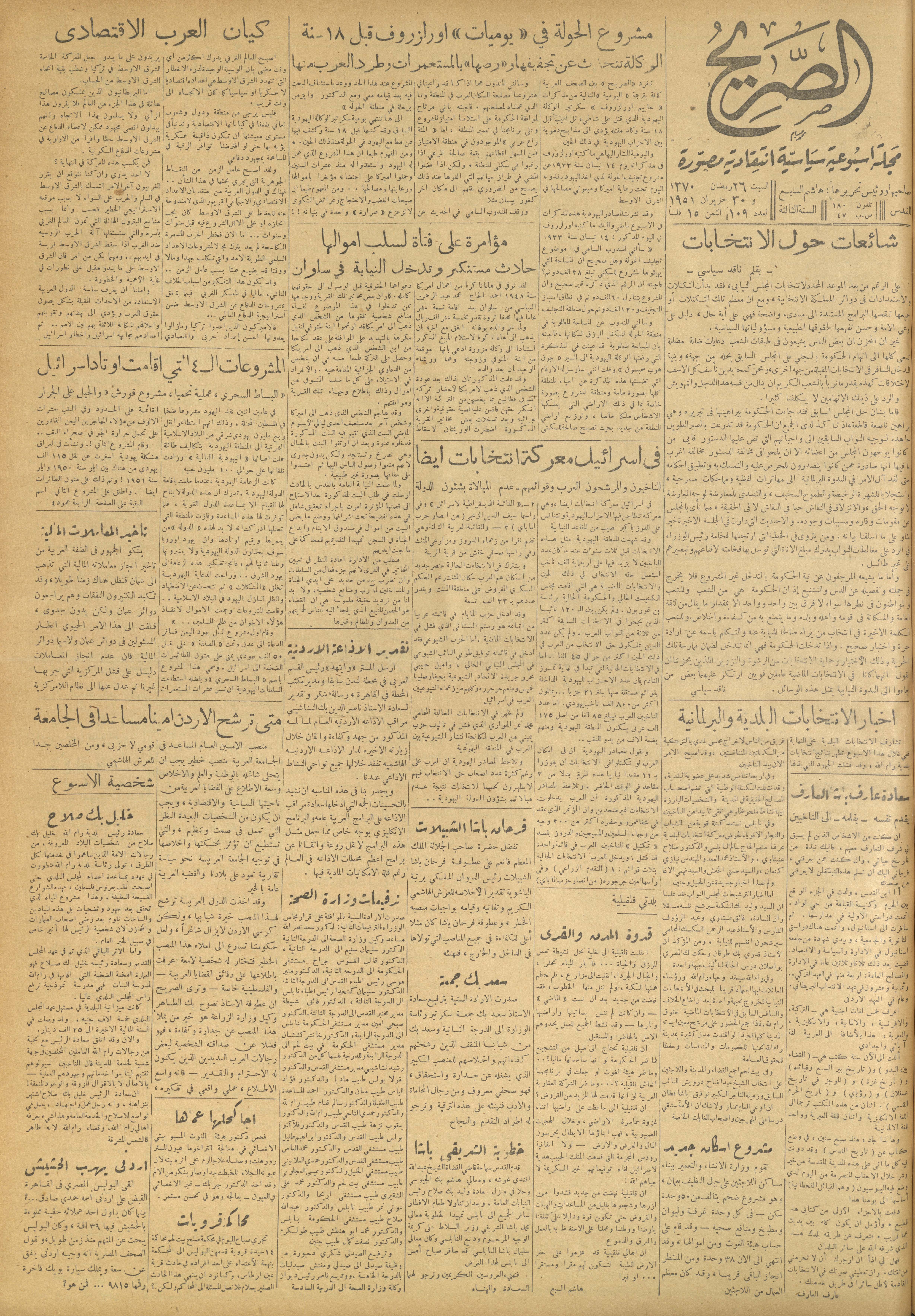 مجلة الصريح، العدد 109، 30 حزيران 1951