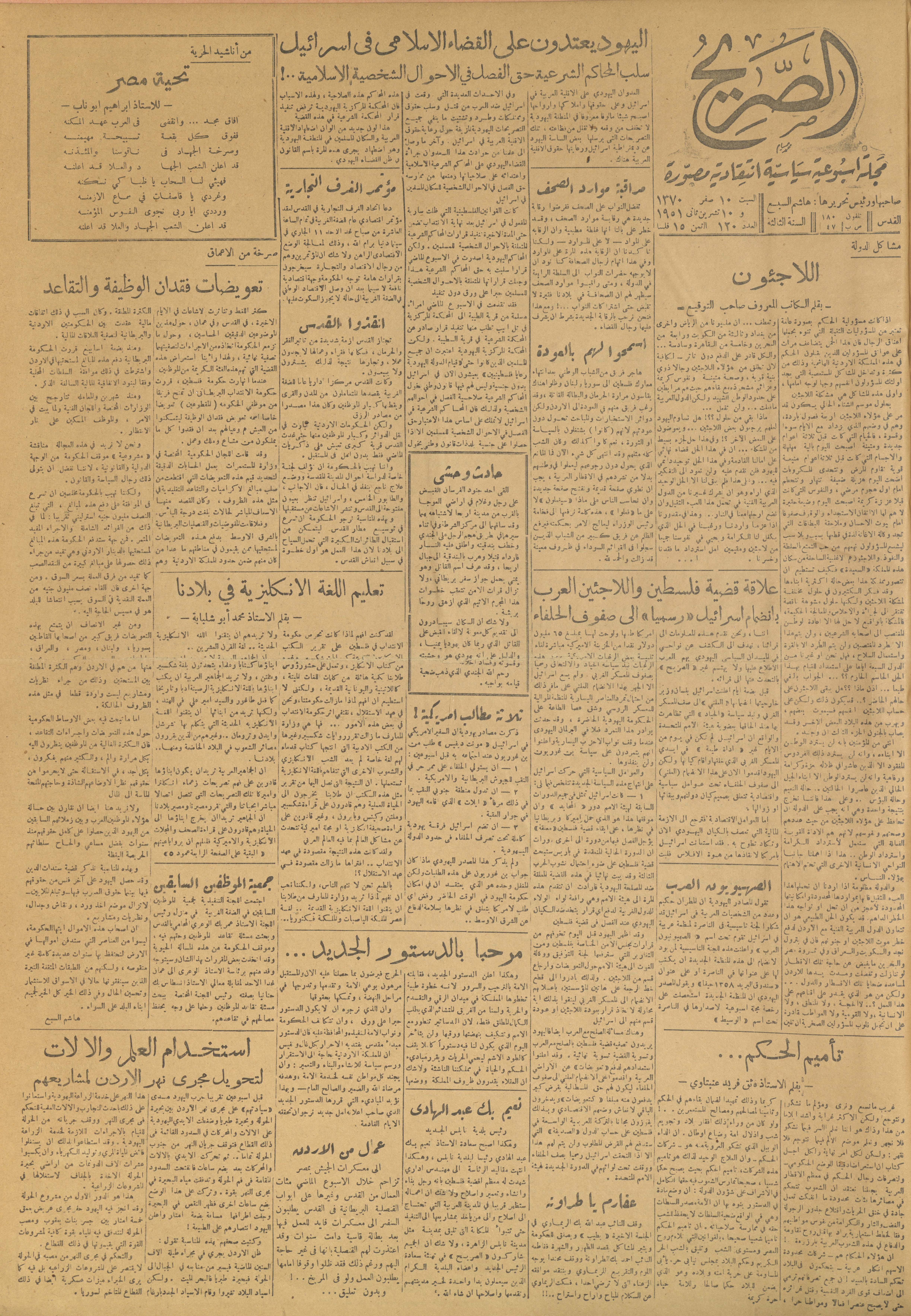 مجلة الصريح، العدد 120، 10 تشرين الثاني 1951