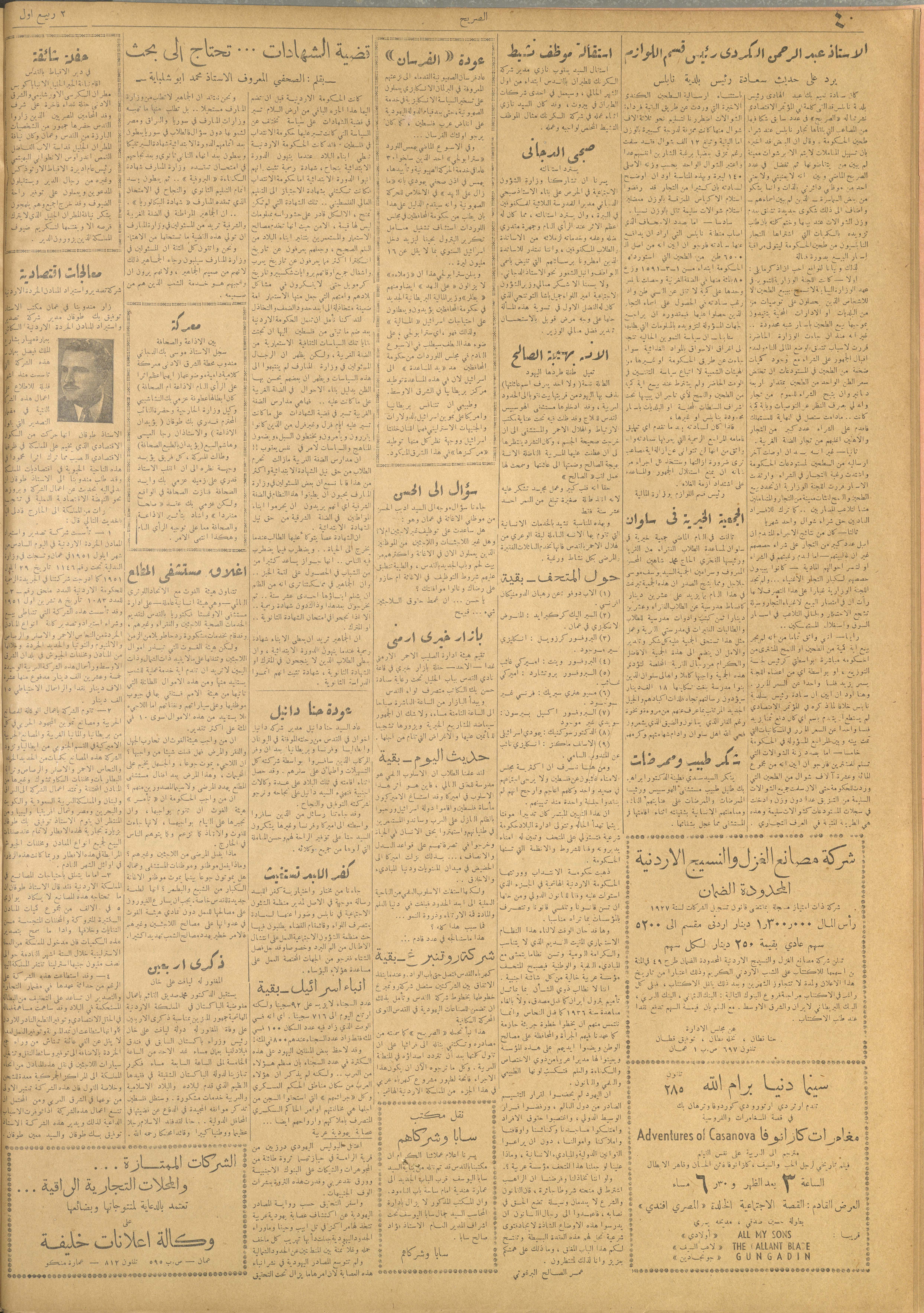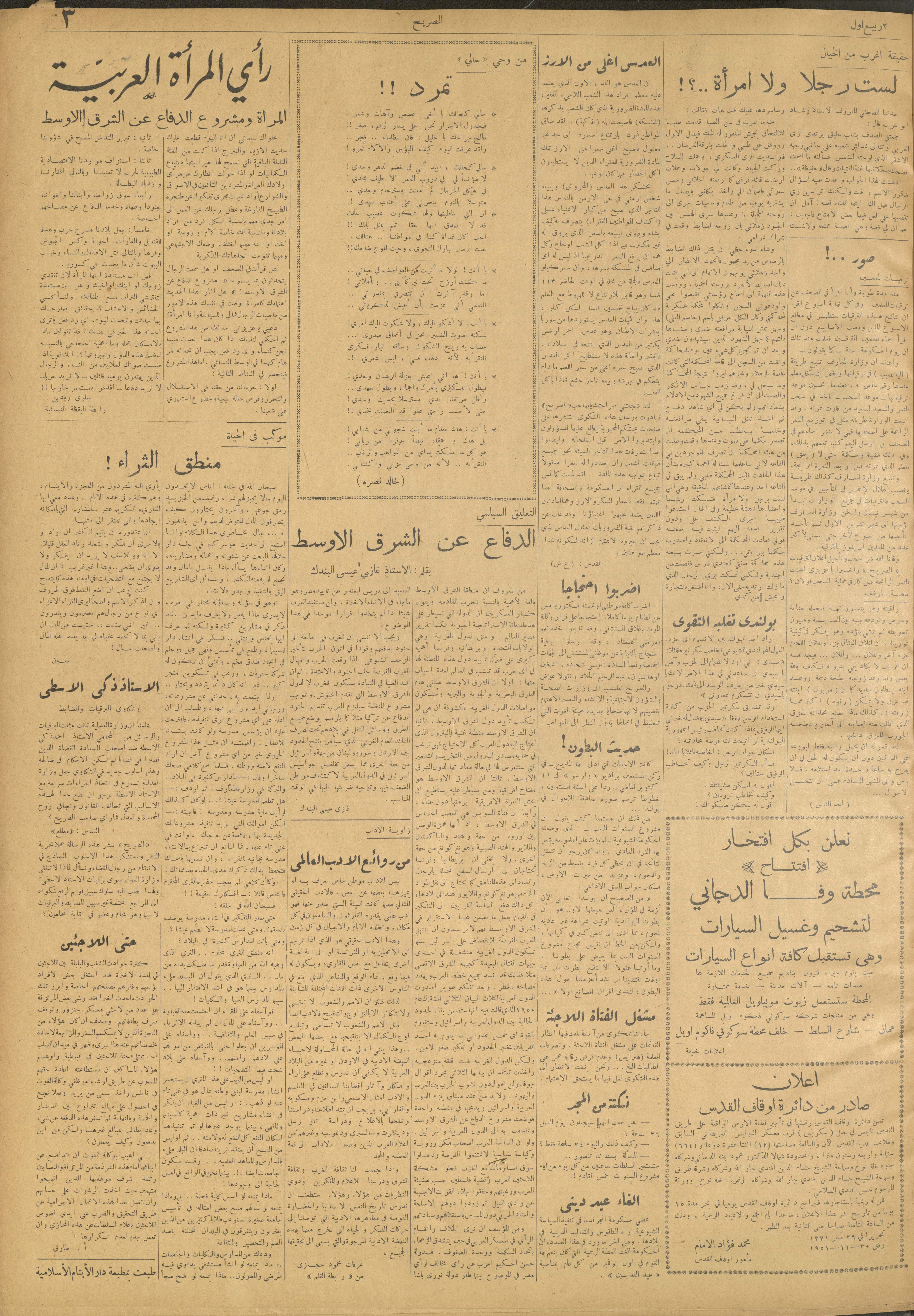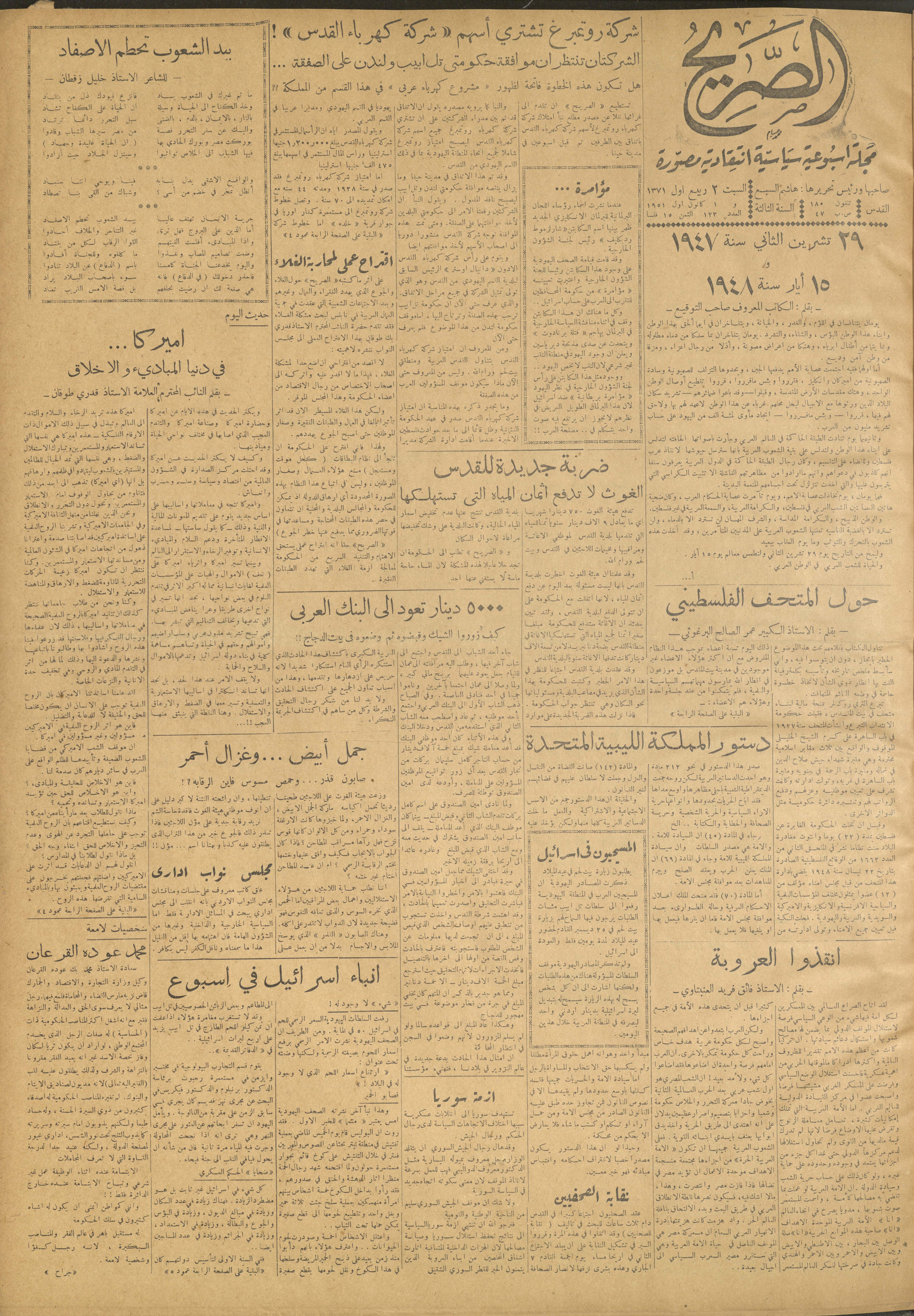 مجلة الصريح، العدد 123، 1 كانون الأول 1951