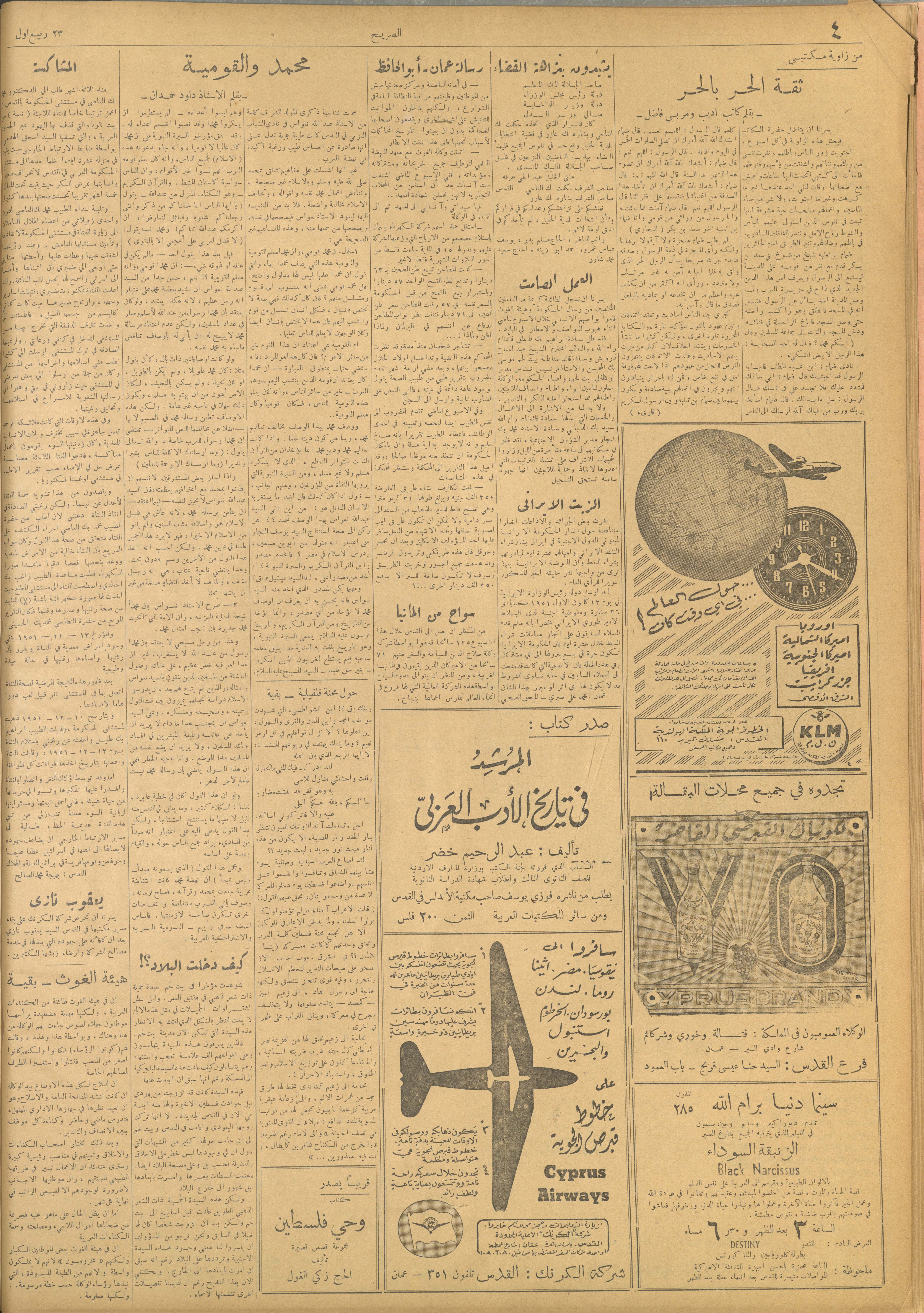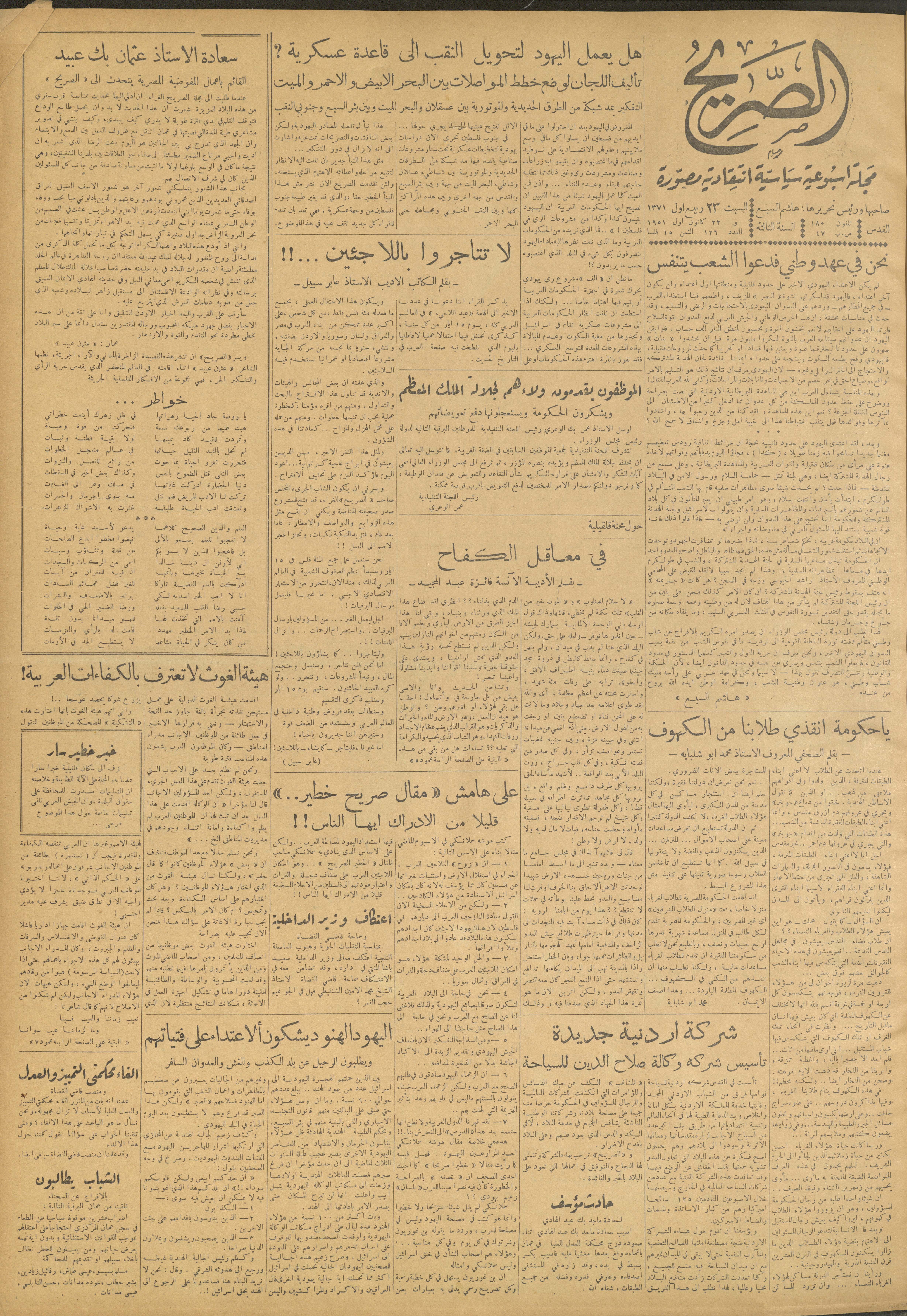 مجلة الصريح، العدد 126، 22 كانون الأول 1951