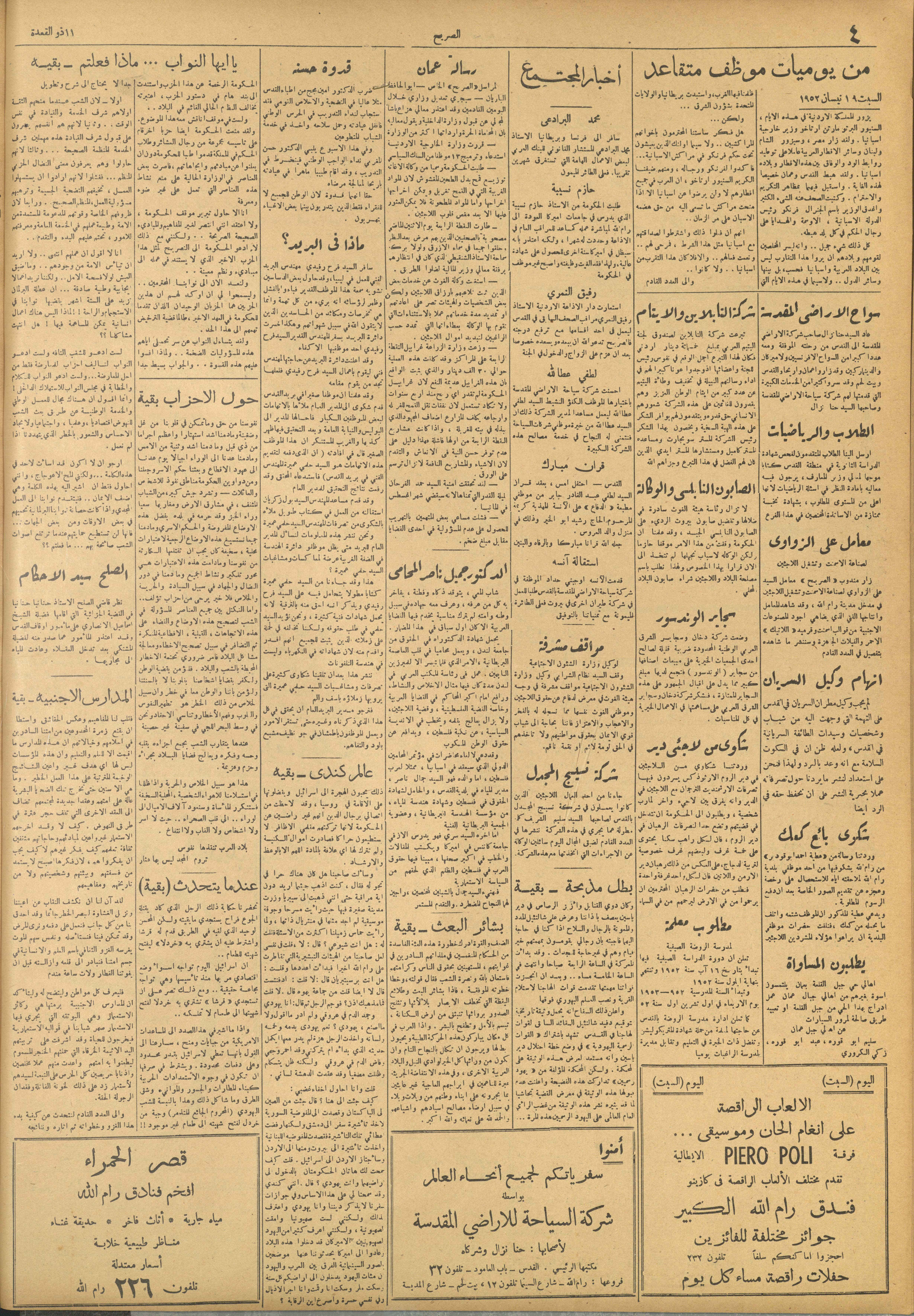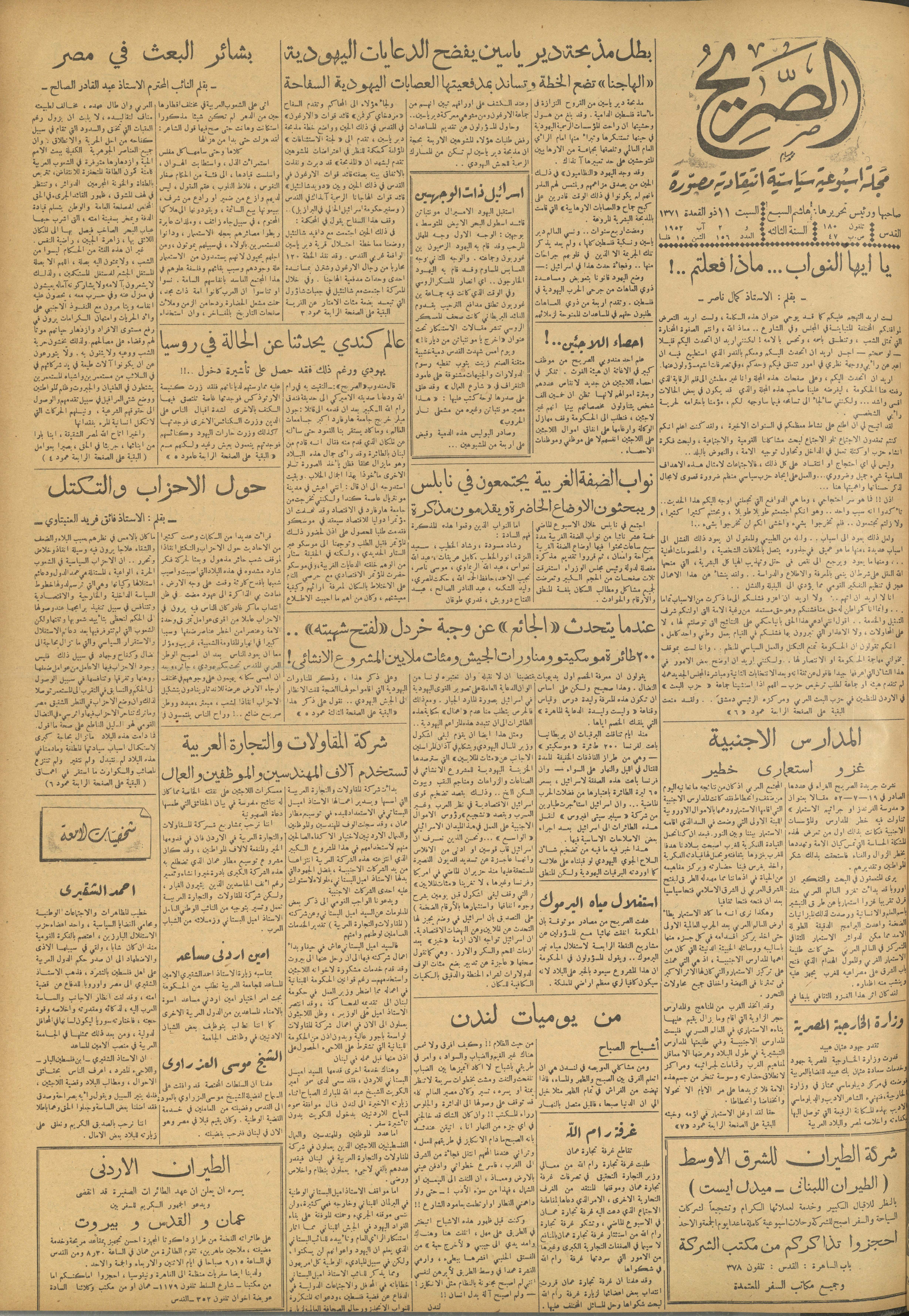 مجلة الصريح، العدد 156، 2 آب 1952