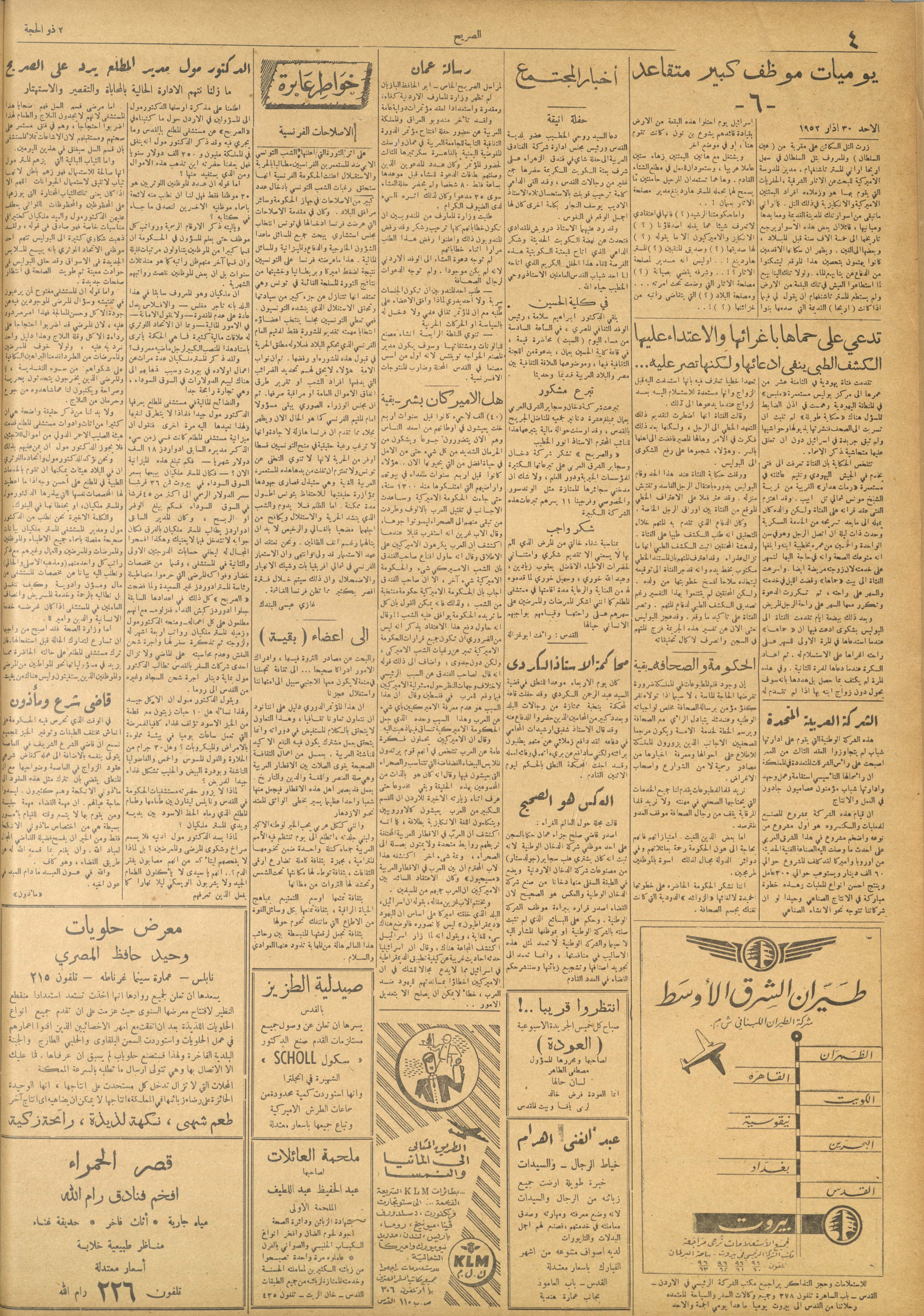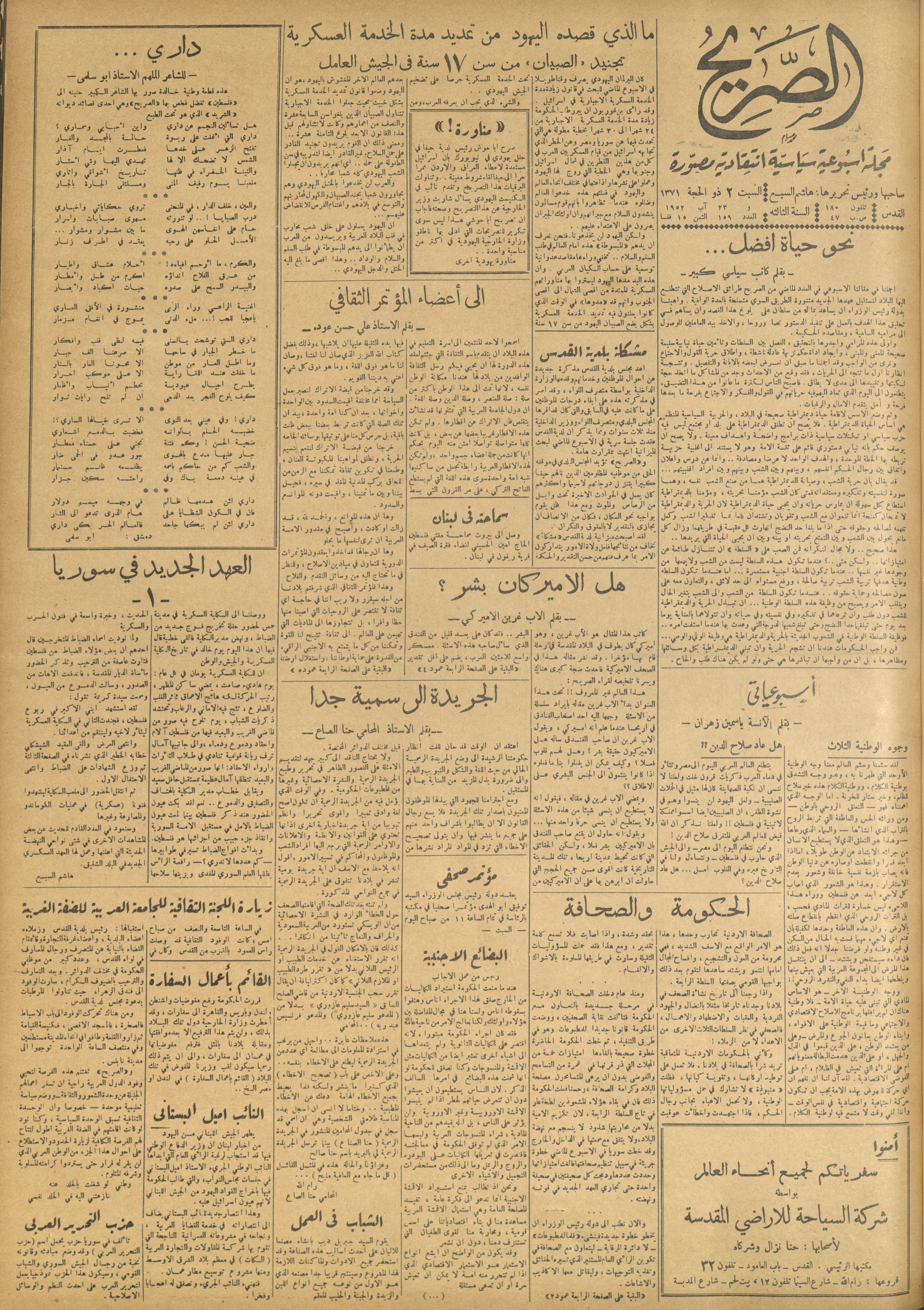 مجلة الصريح، العدد 159، 23 آب 1952