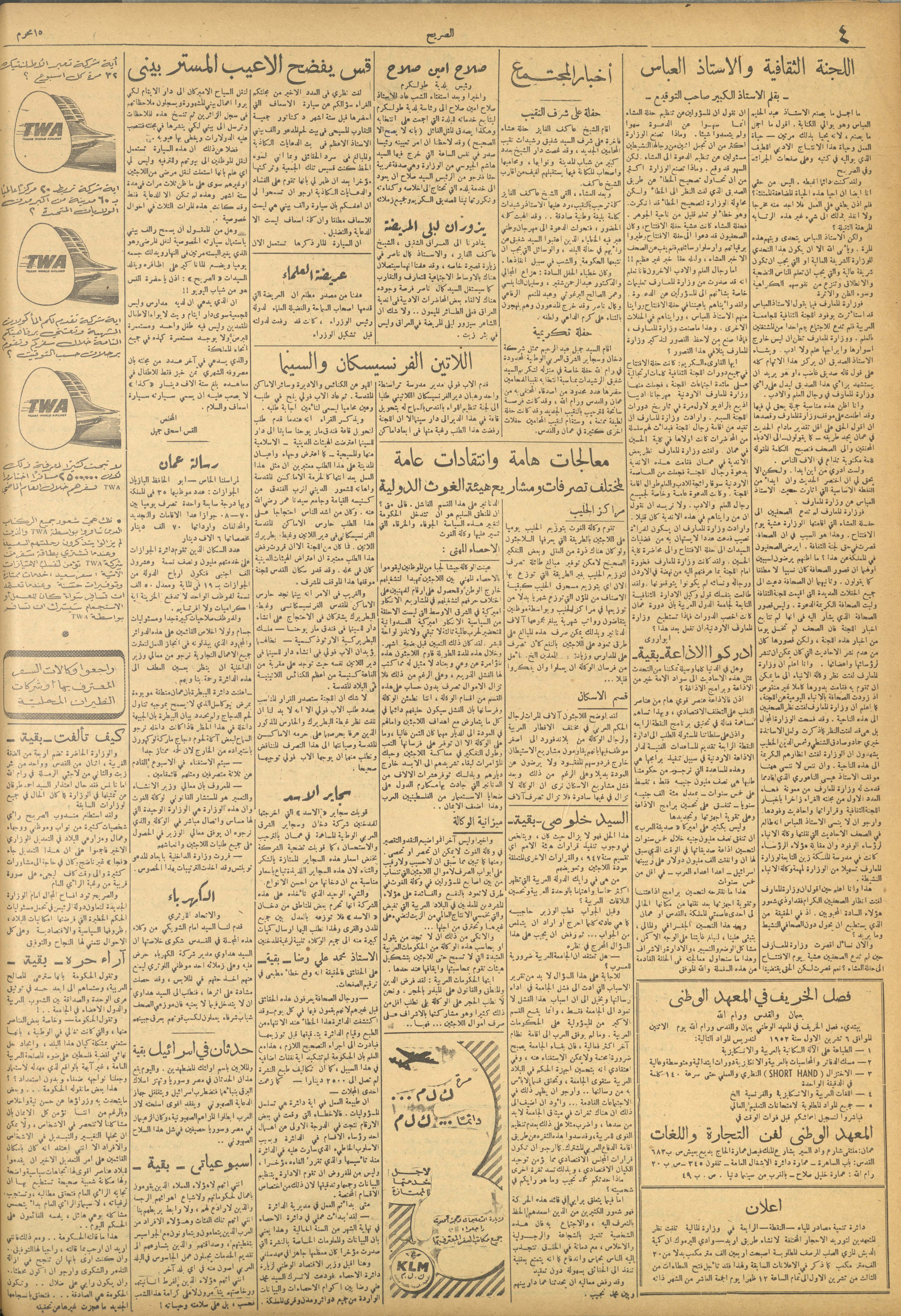 مجلة الصريح، العدد 165، 4 تشرين الأول 1952