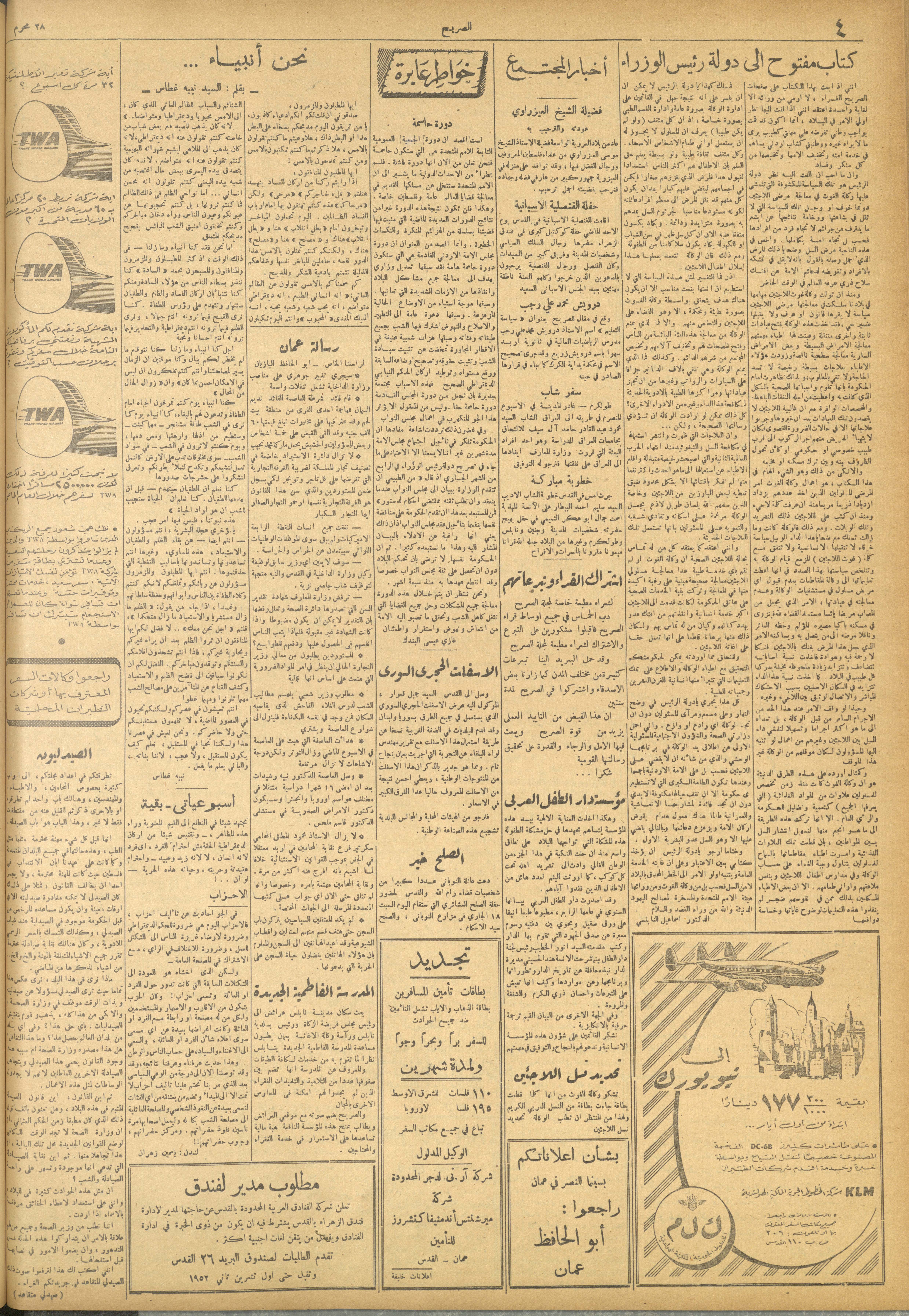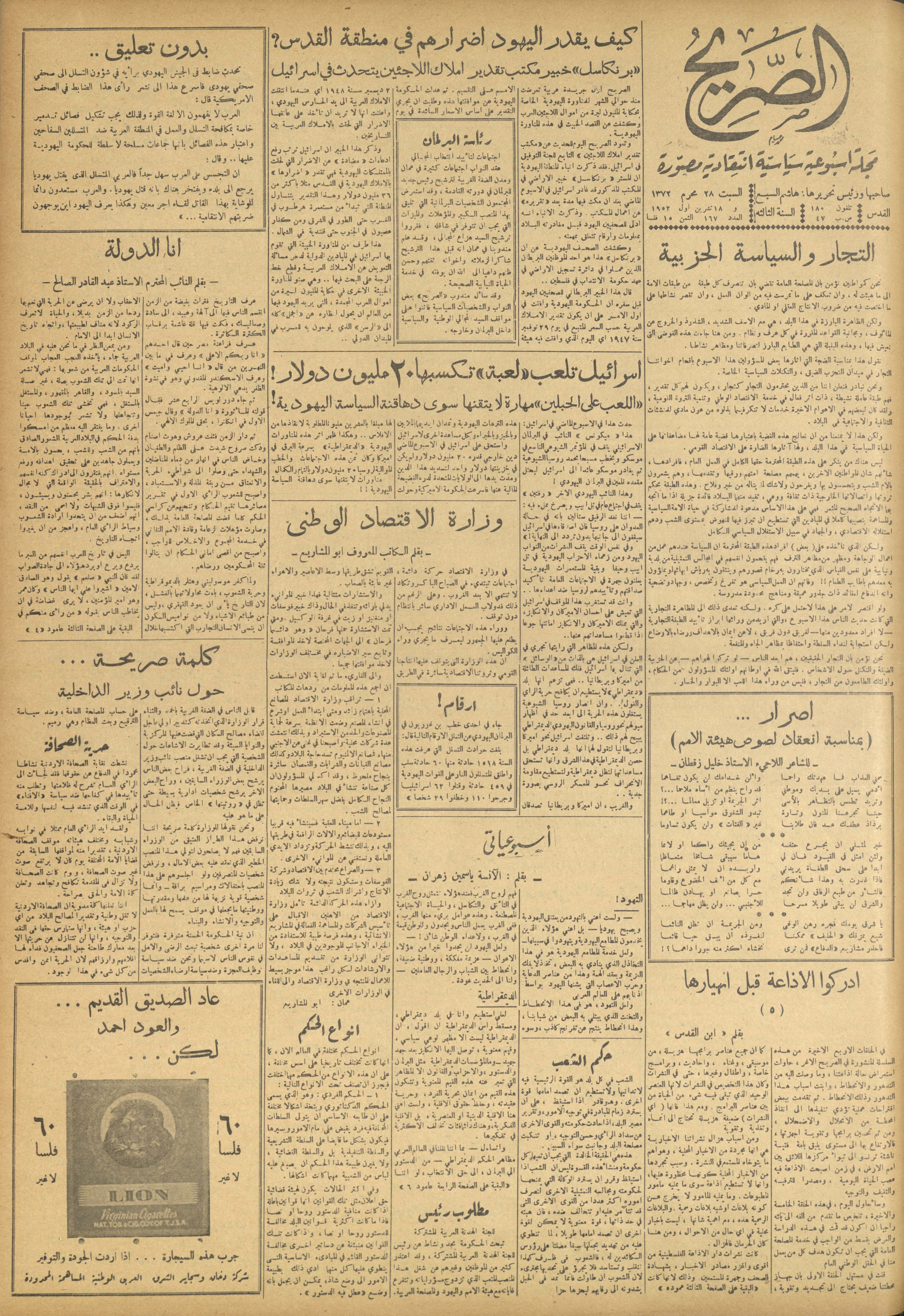 مجلة الصريح، العدد 167، 18 تشرين الأول 1952
