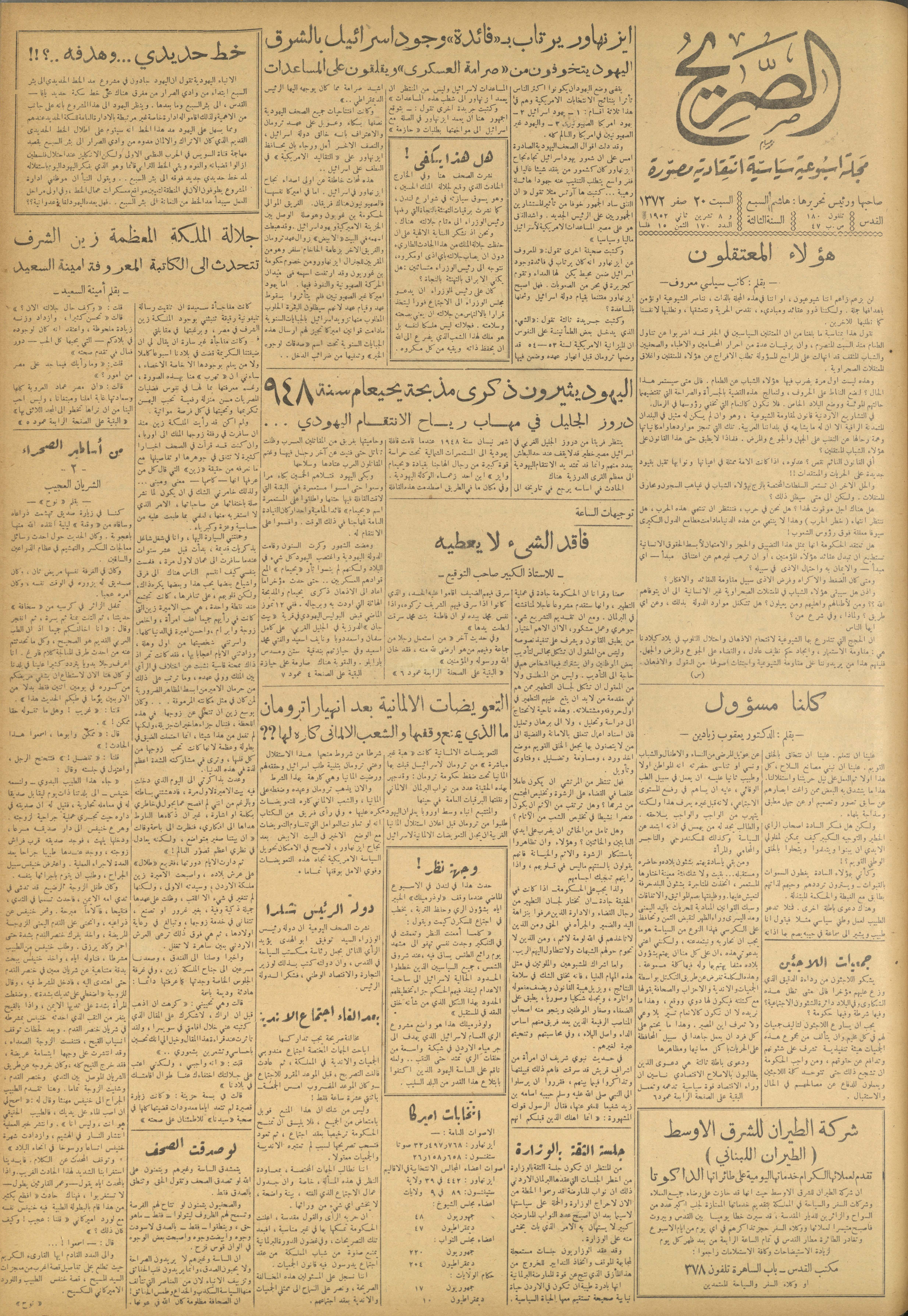 مجلة الصريح، العدد 170، 8 تشرين الثاني 1952