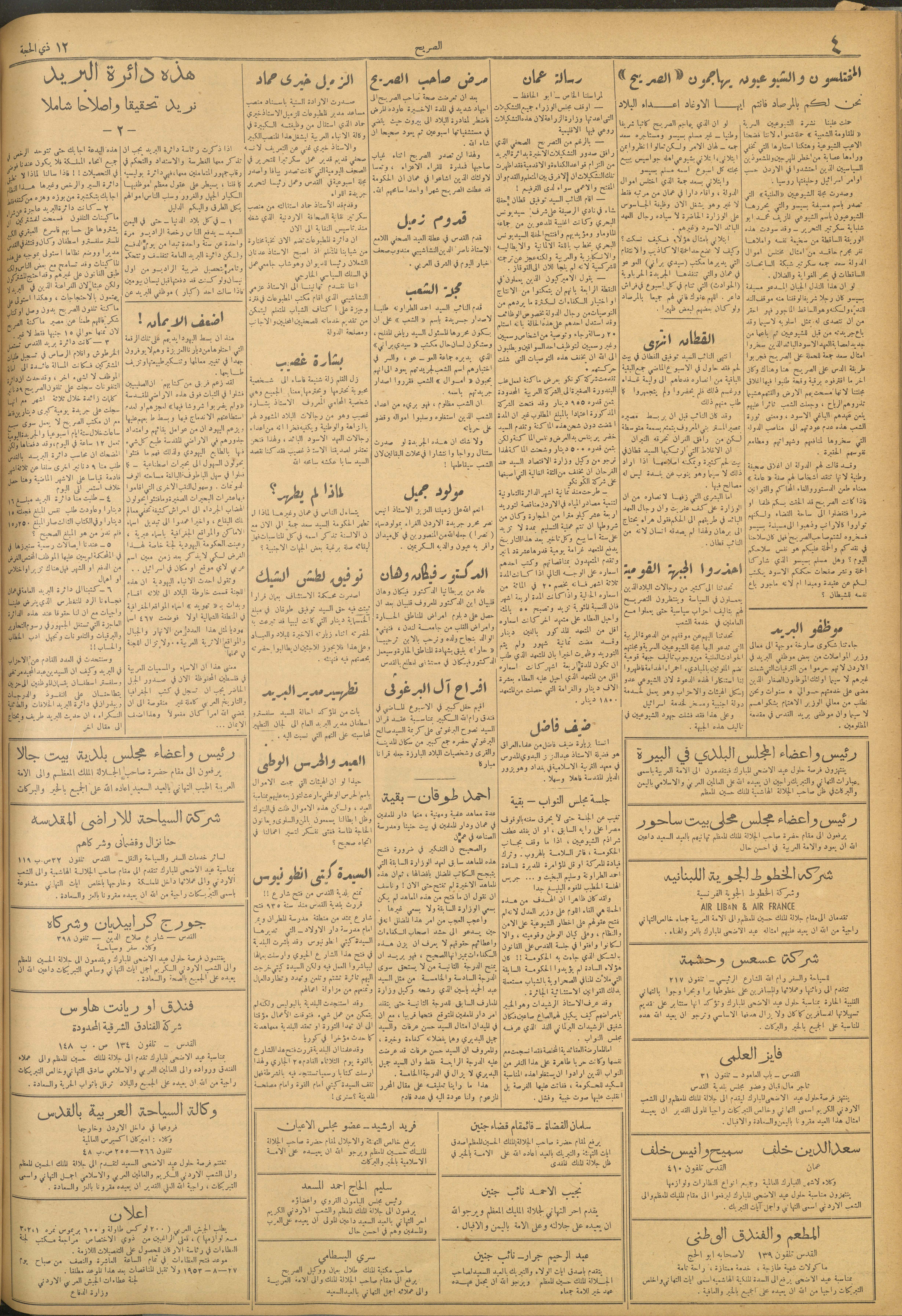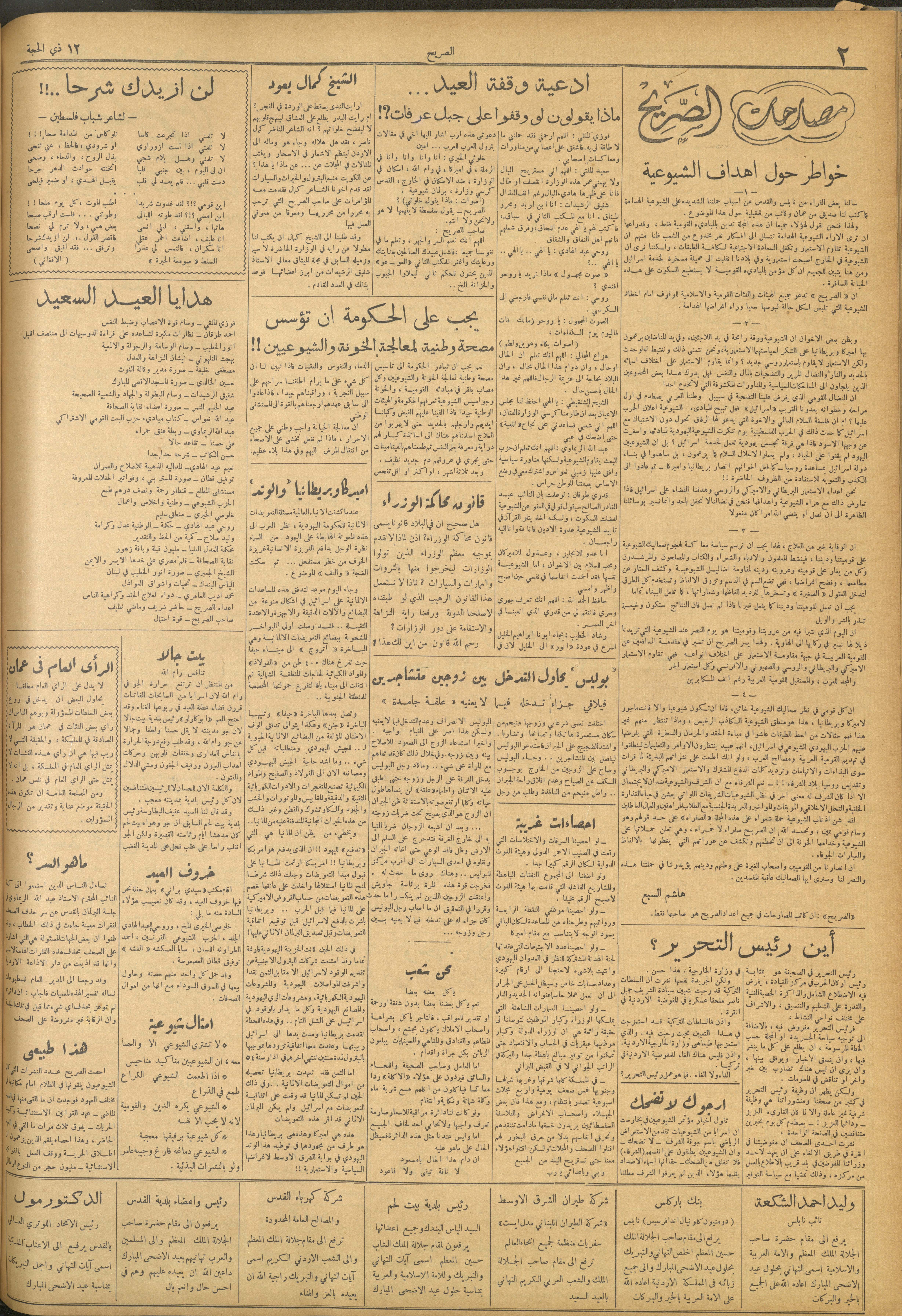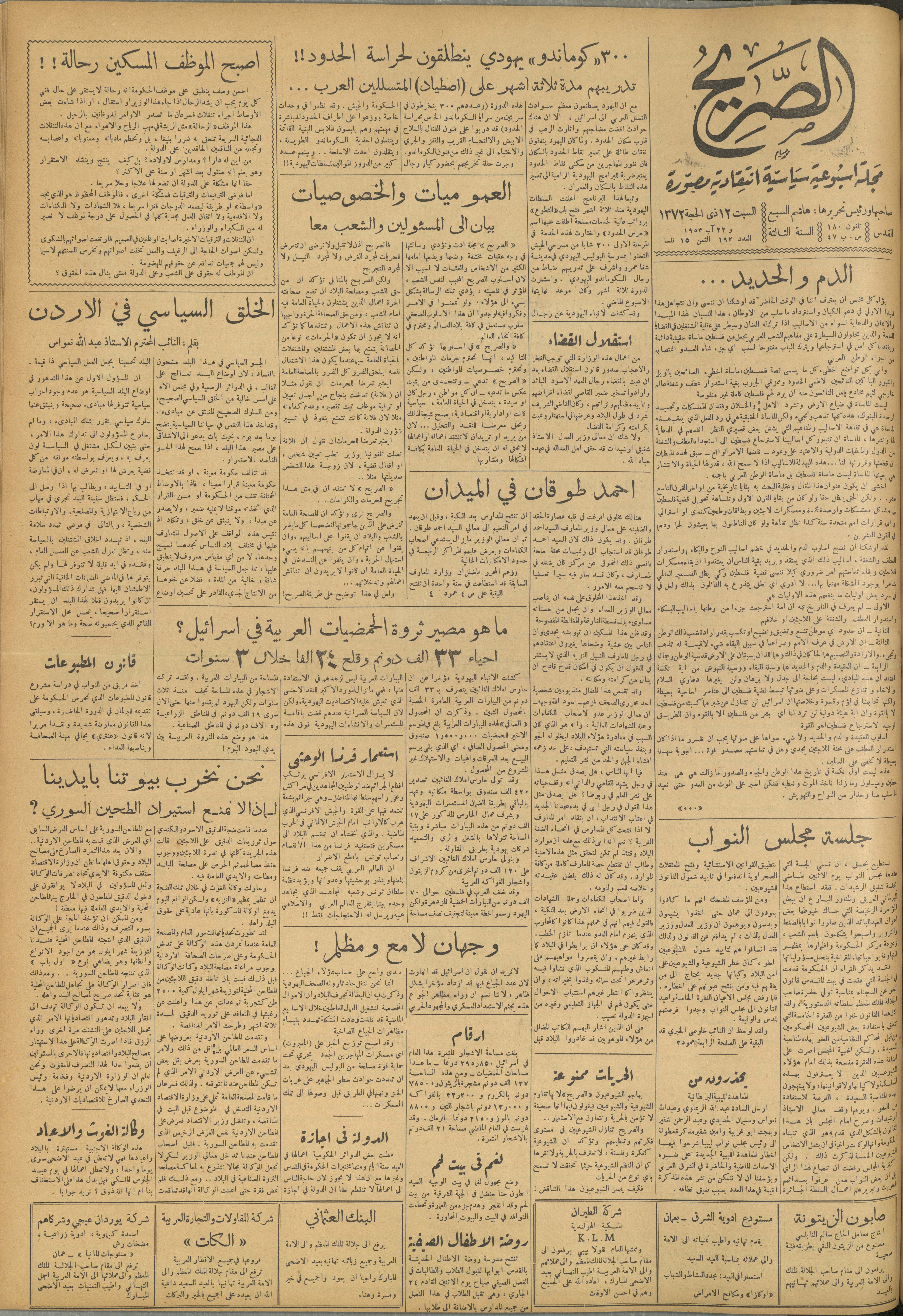مجلة الصريح، العدد 192، 22 آب 1953