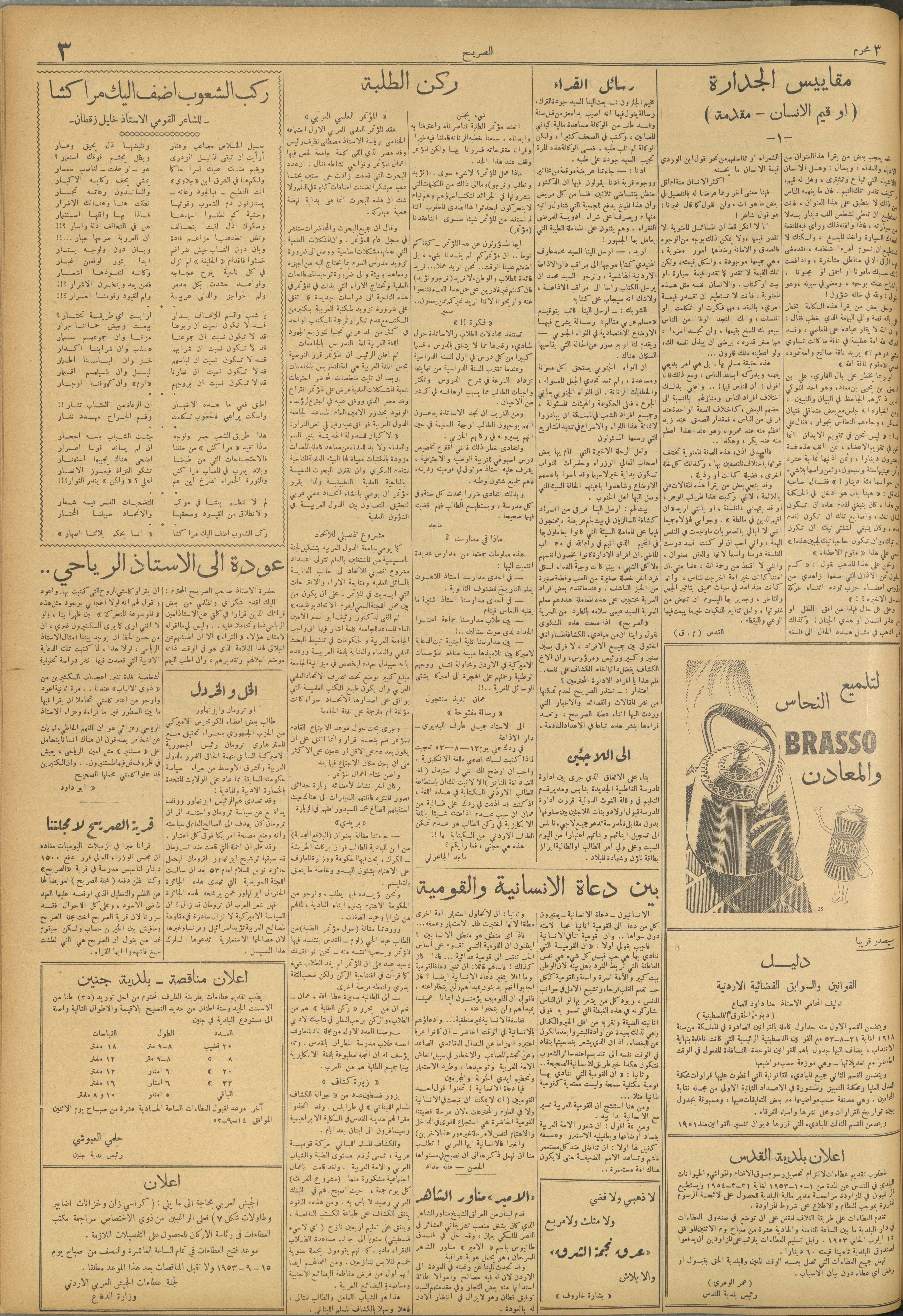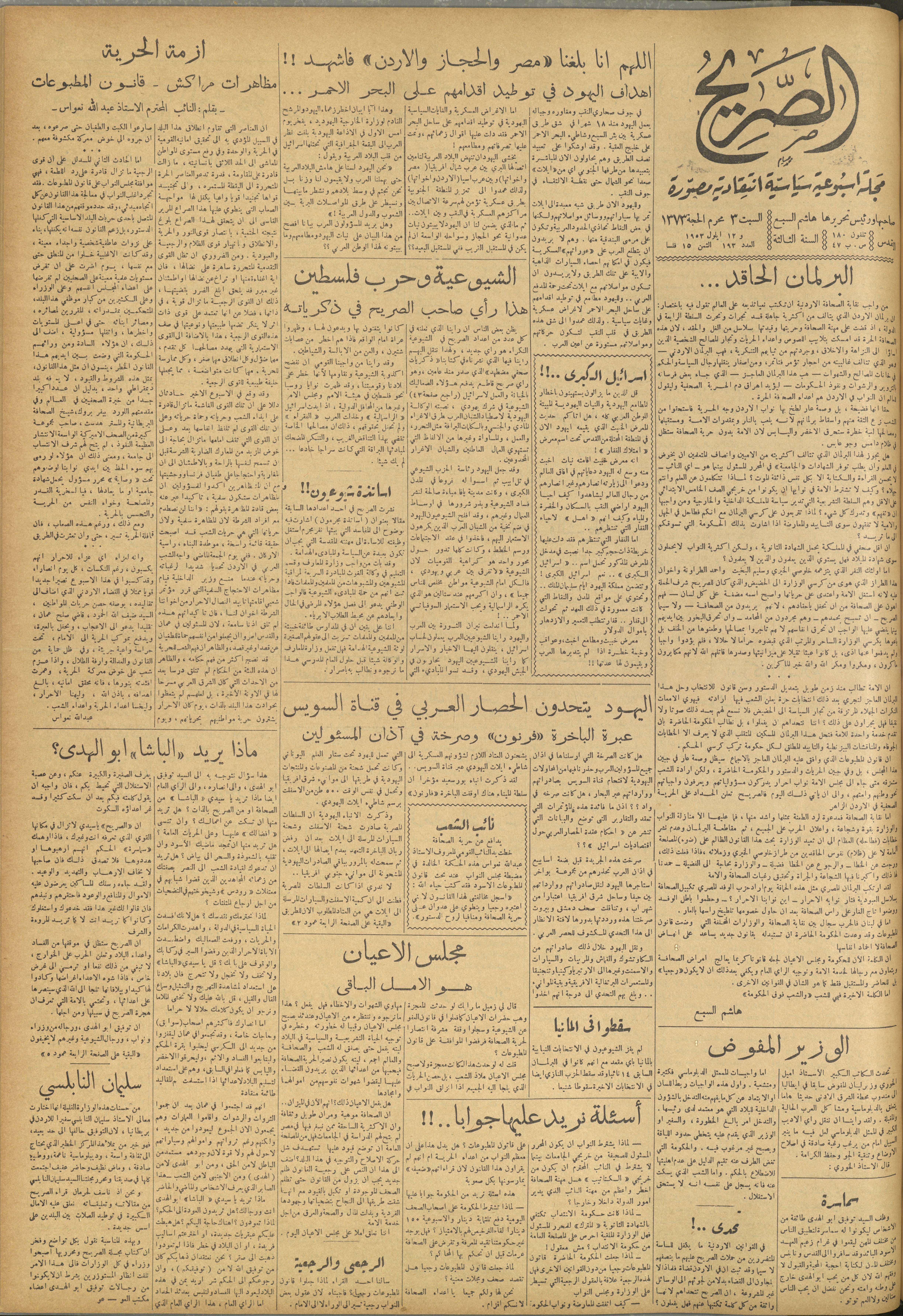 مجلة الصريح، العدد 193، 12 أيلول 1953