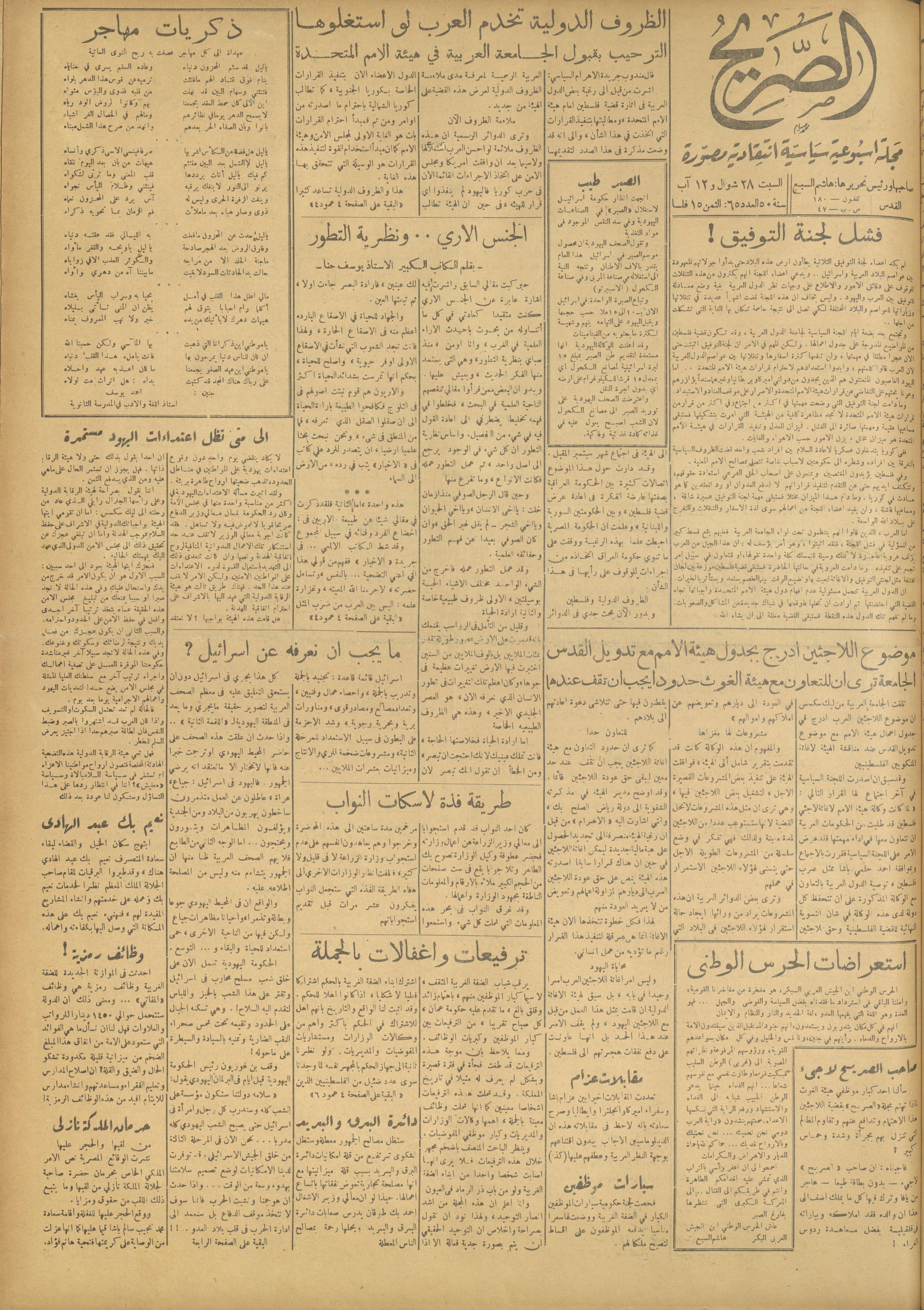 مجلة الصريح، العدد 65، 12 آب 1950
