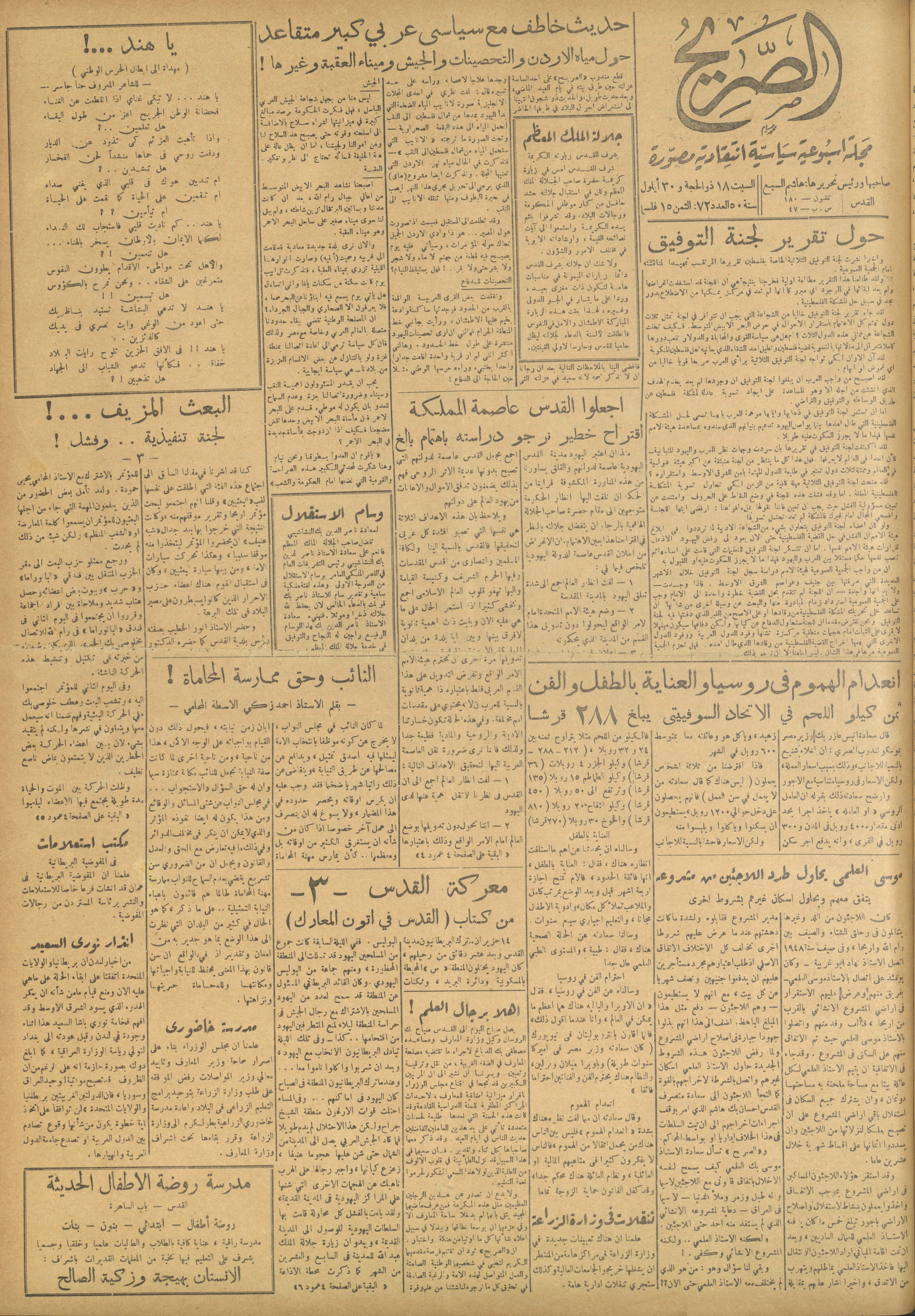 مجلة الصريح، العدد 72، 30 أيلول 1950