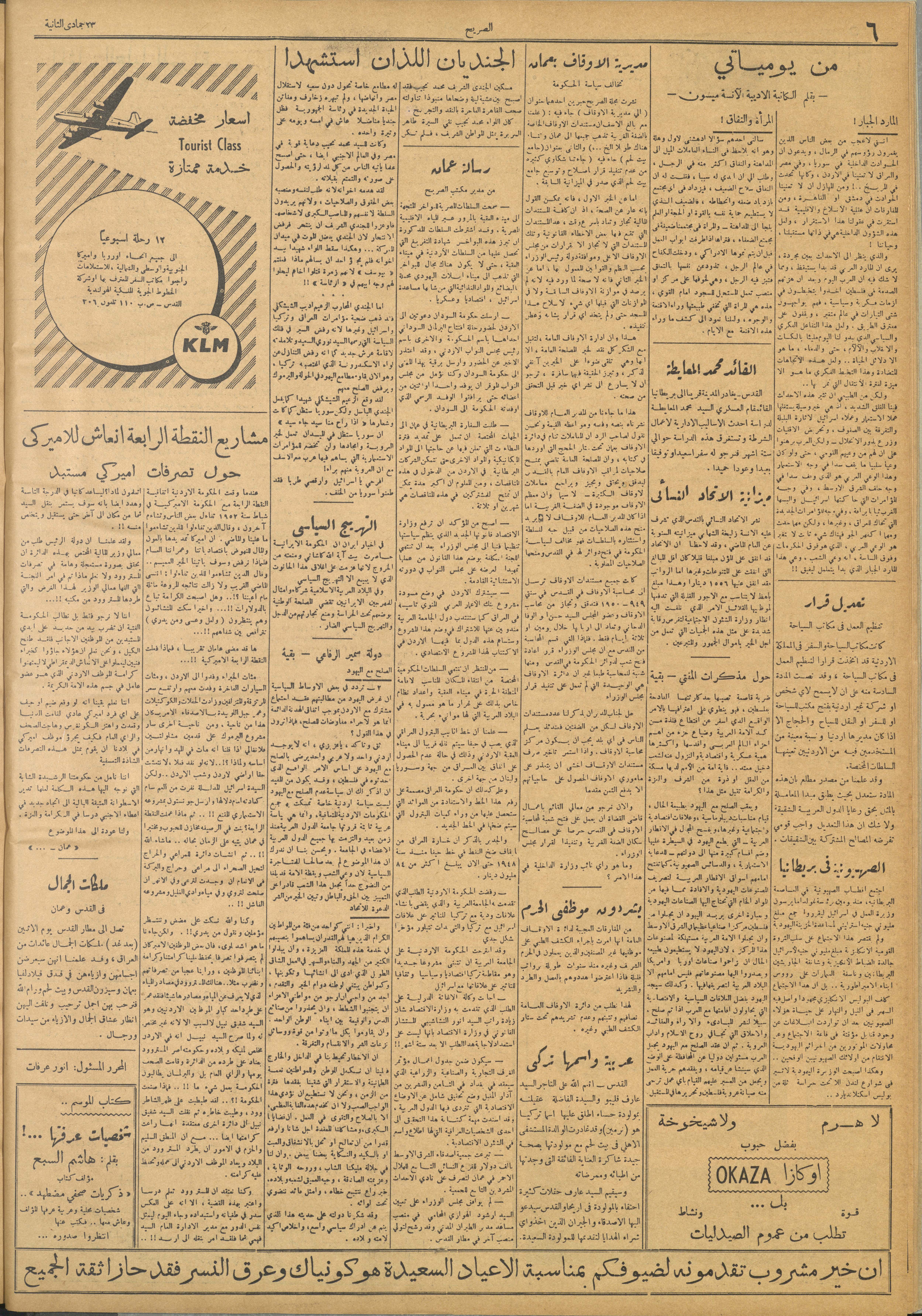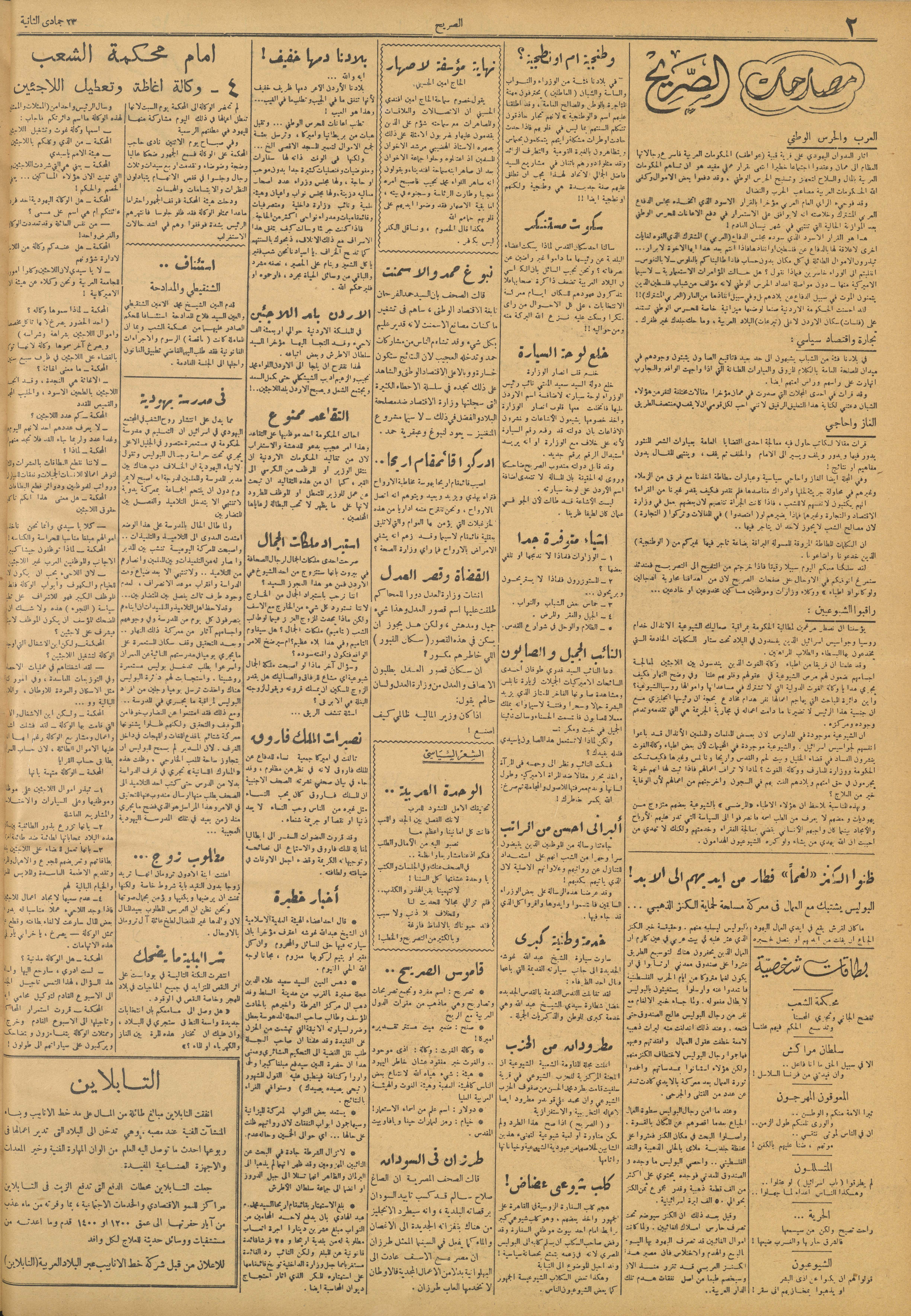 مجلة الصريح، العدد 216، 27 شباط 1954