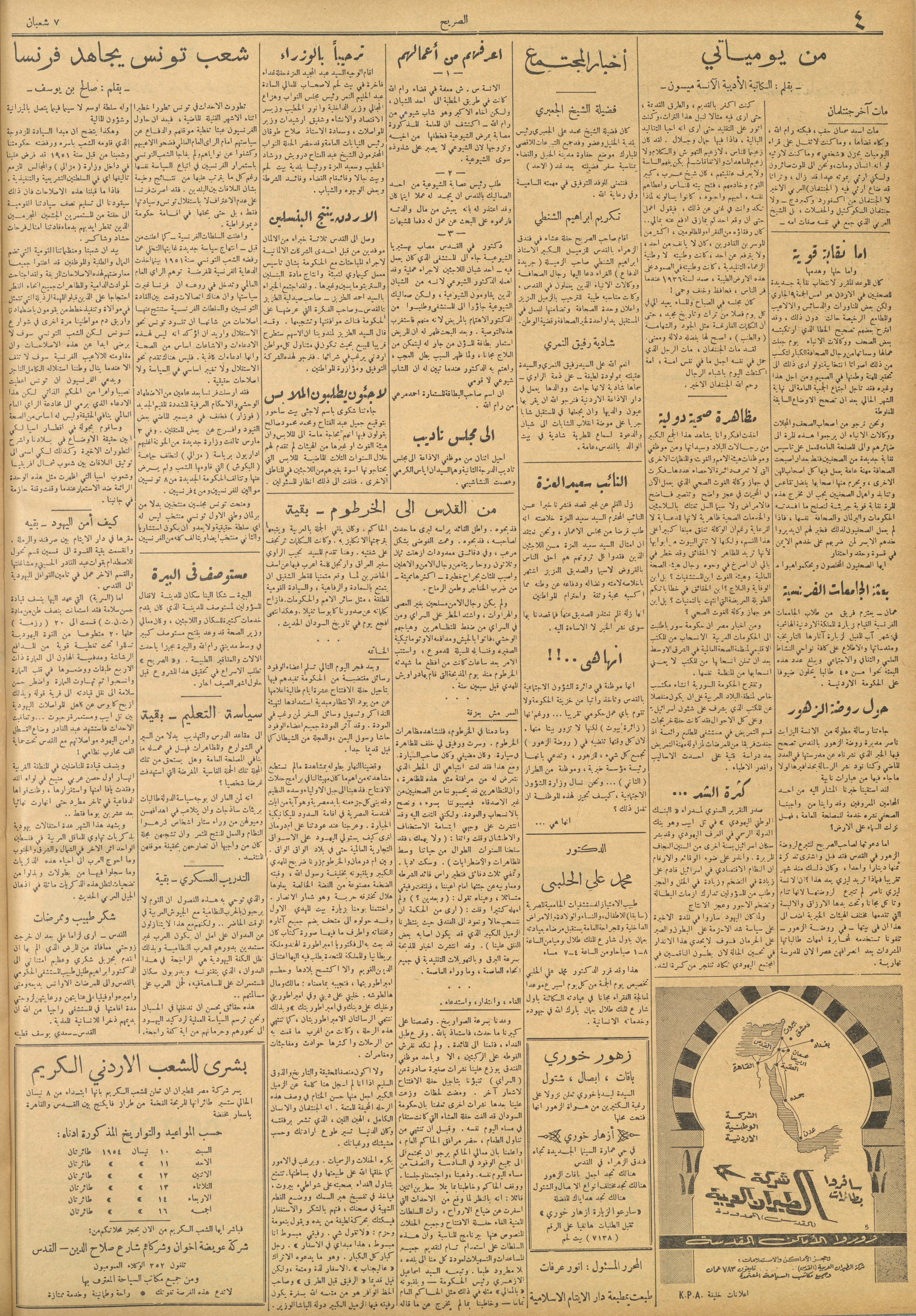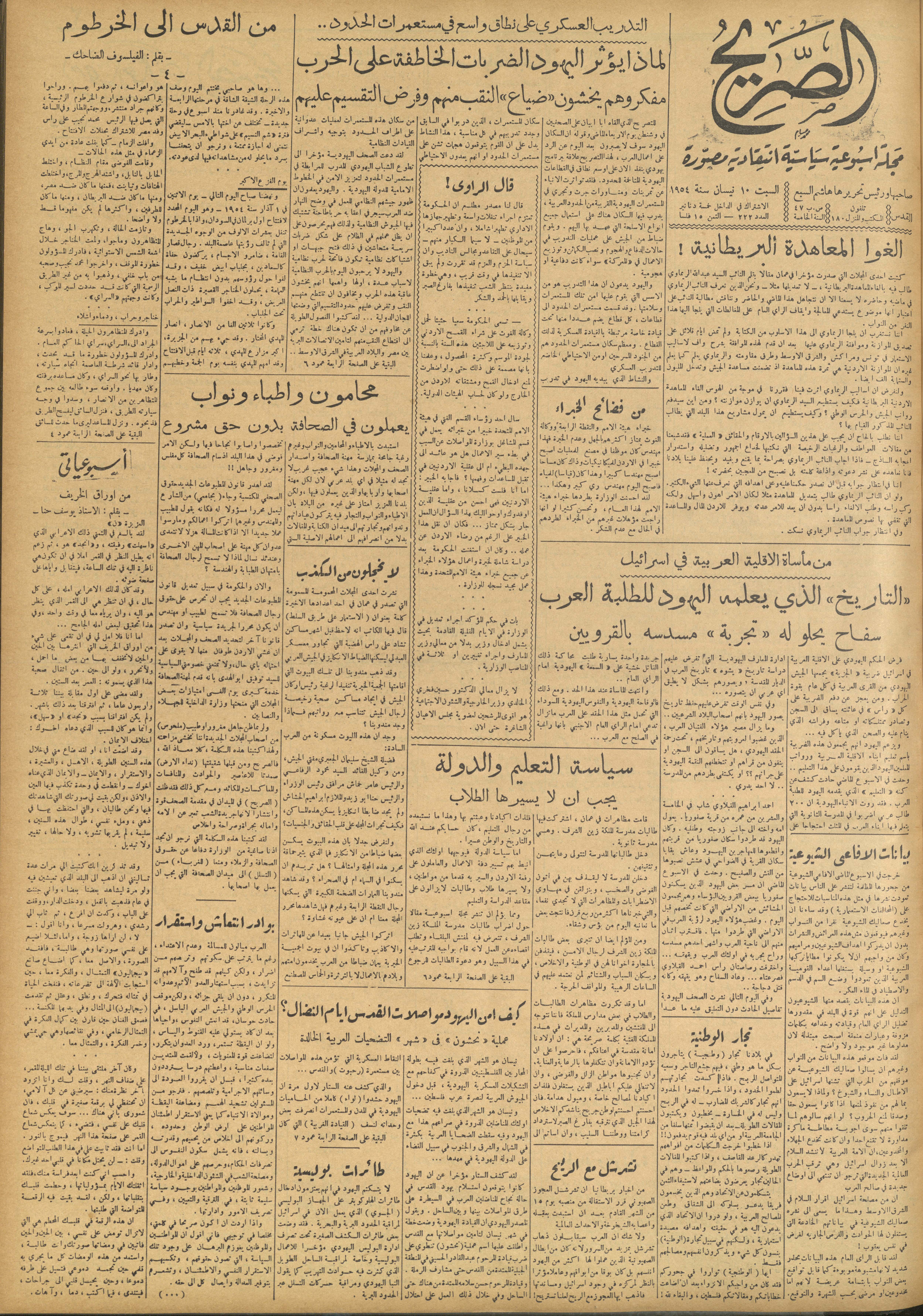 مجلة الصريح، العدد 222، 10 نيسان 1954