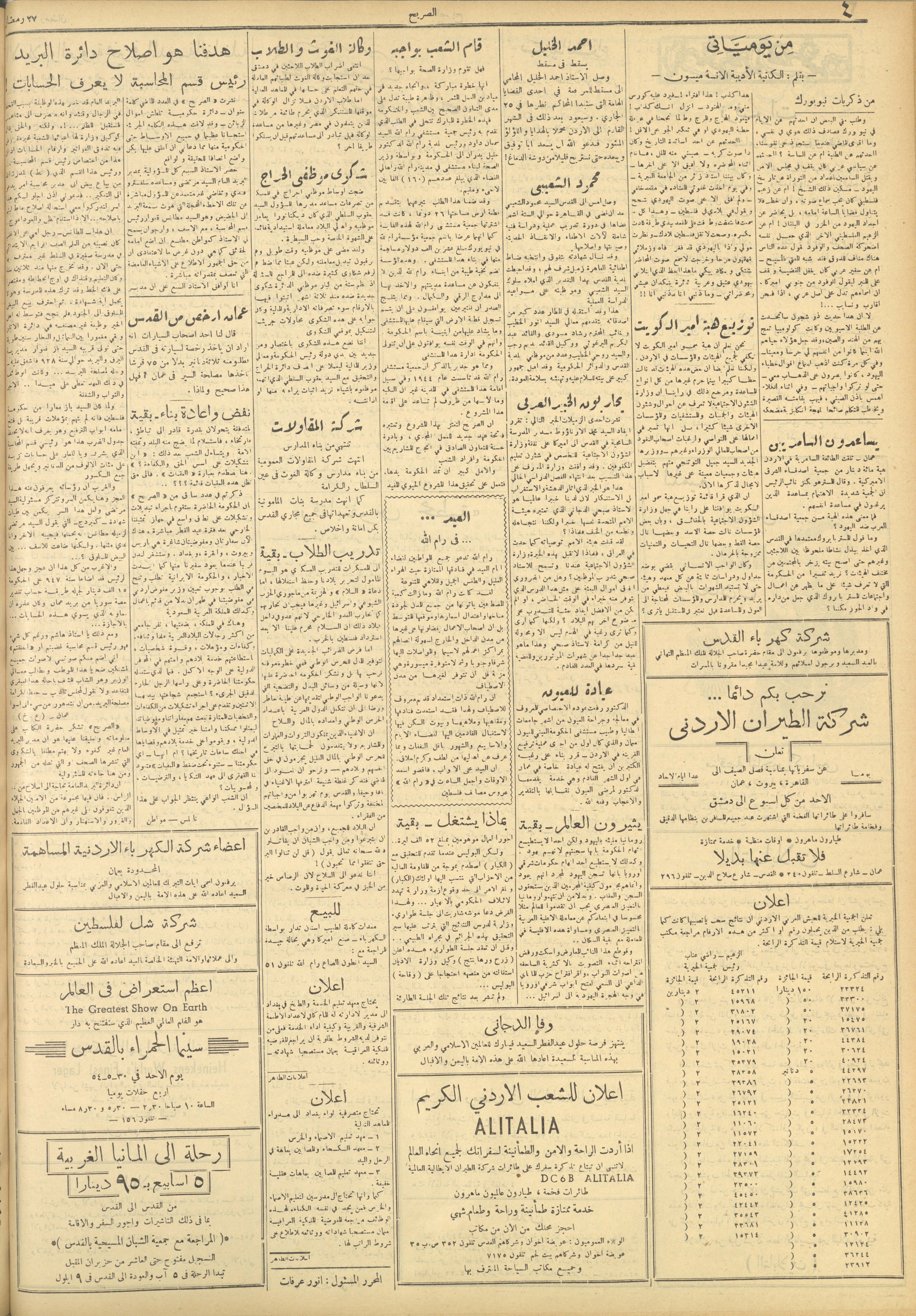 مجلة الصريح، العدد 229، 29 أيار 1954