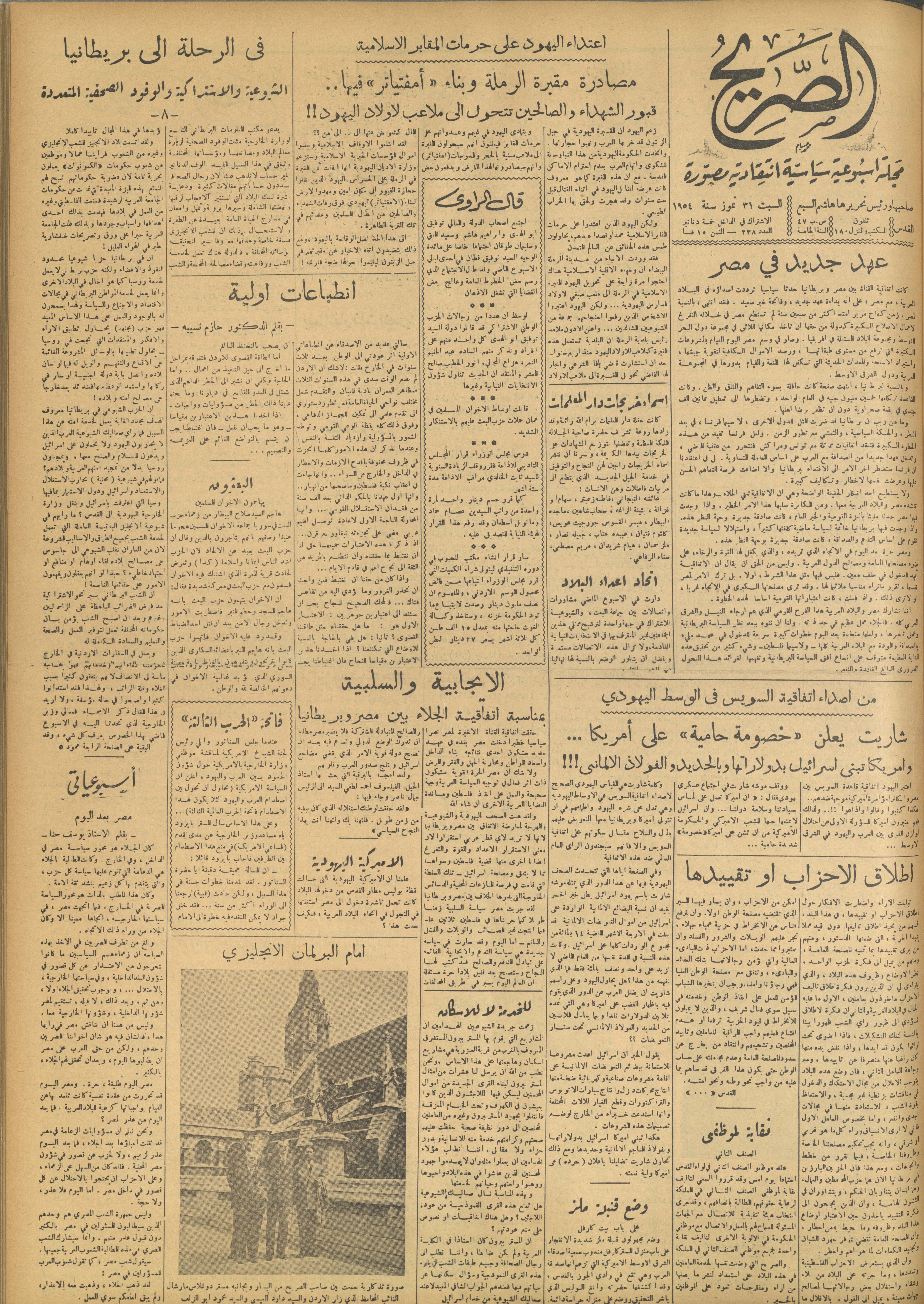 مجلة الصريح، العدد 238، 31 تموز 1954